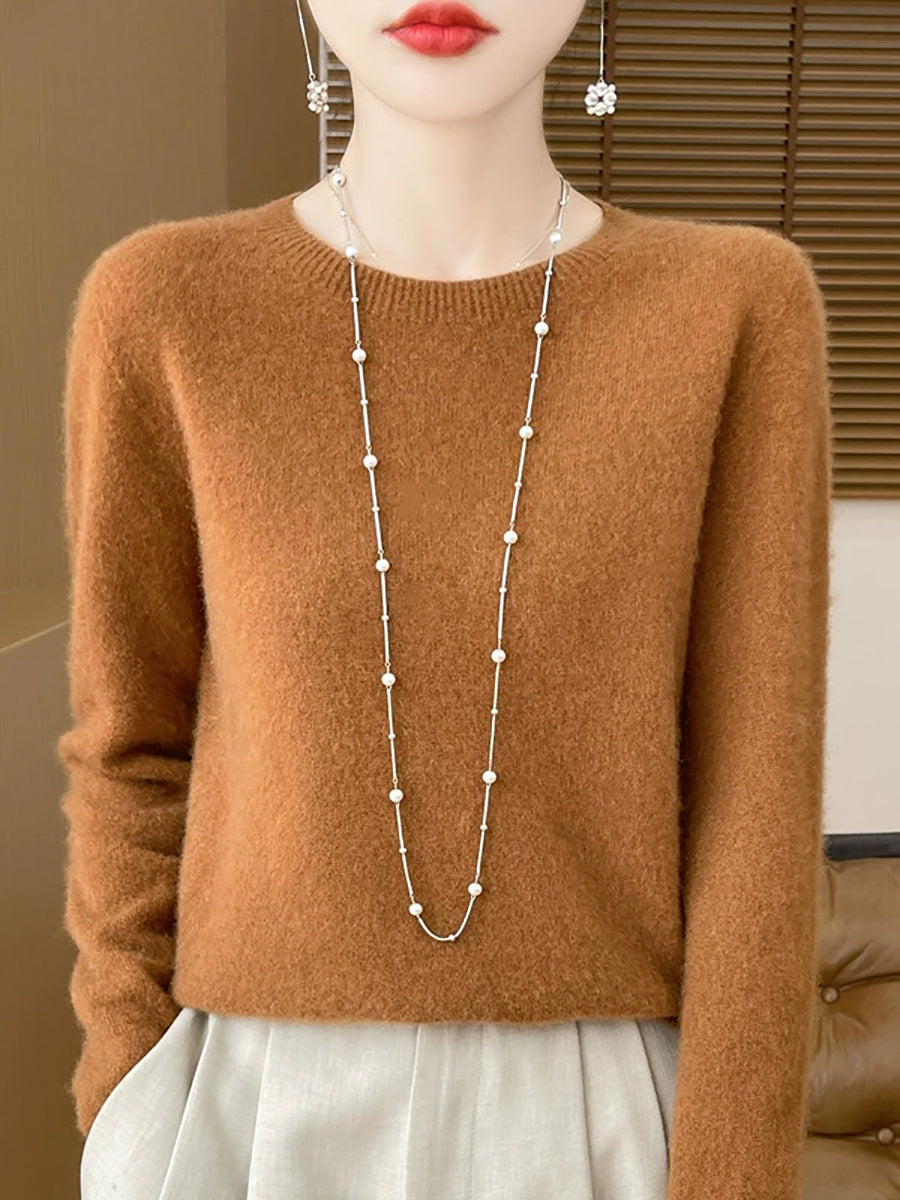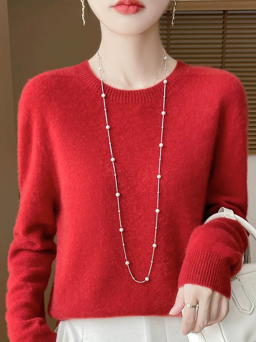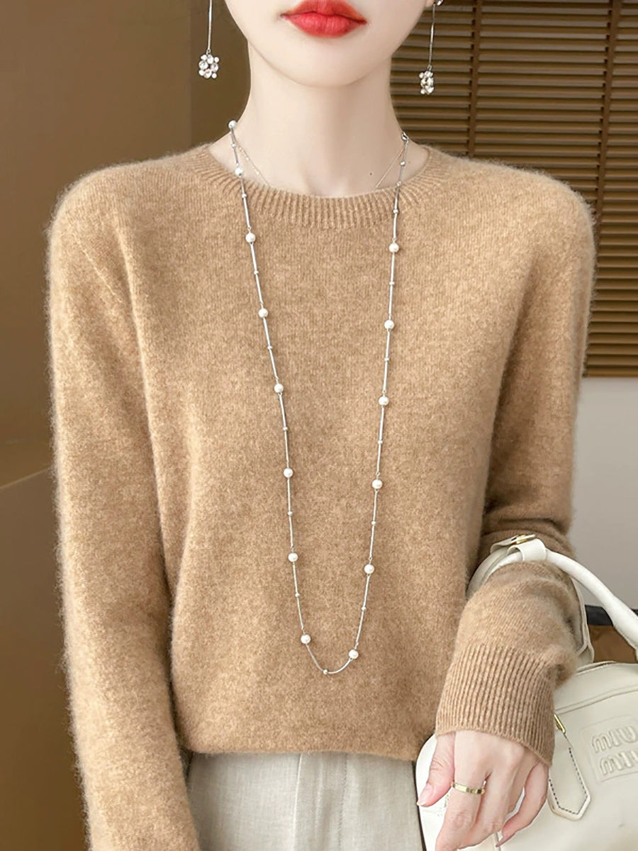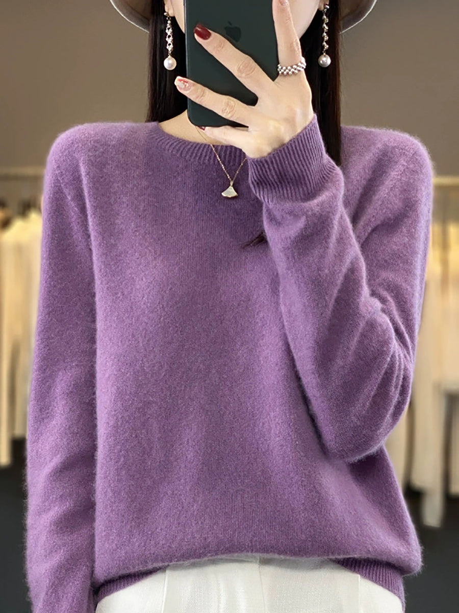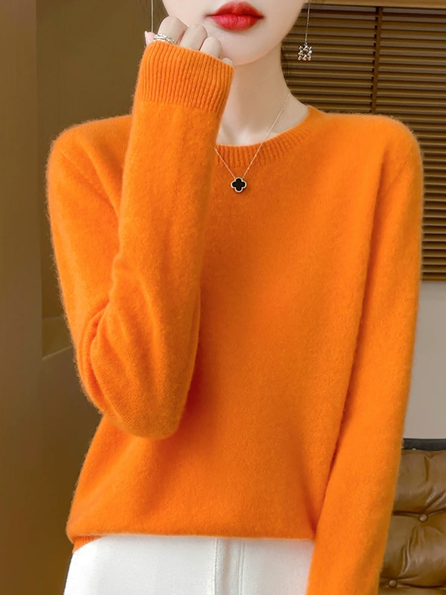 レディース 春 カジュアル ピュアカラー Oネック セーター