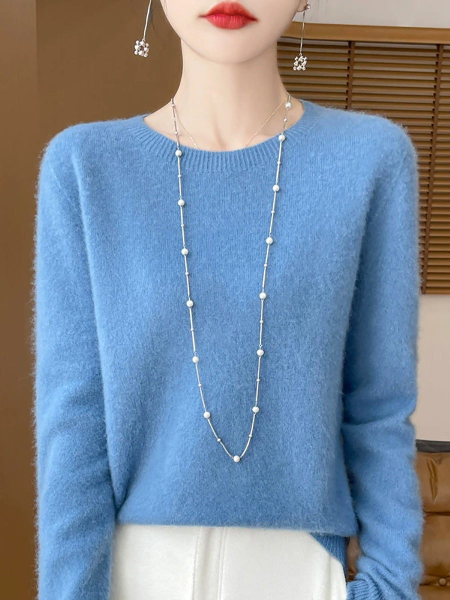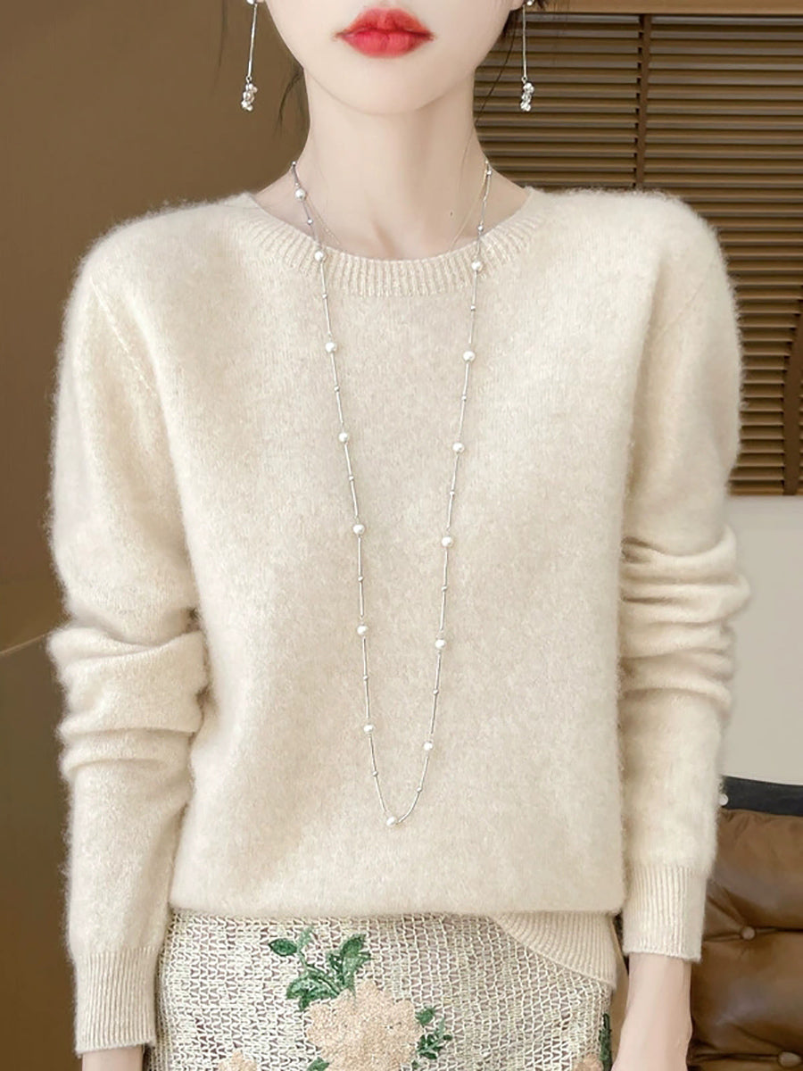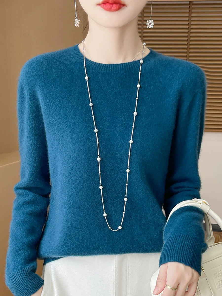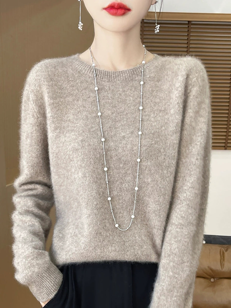 レディース 春 カジュアル ピュアカラー Oネック セーター