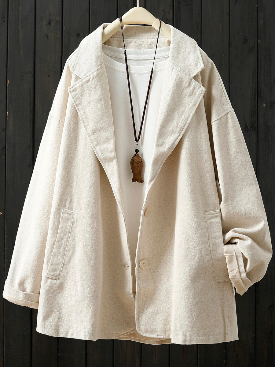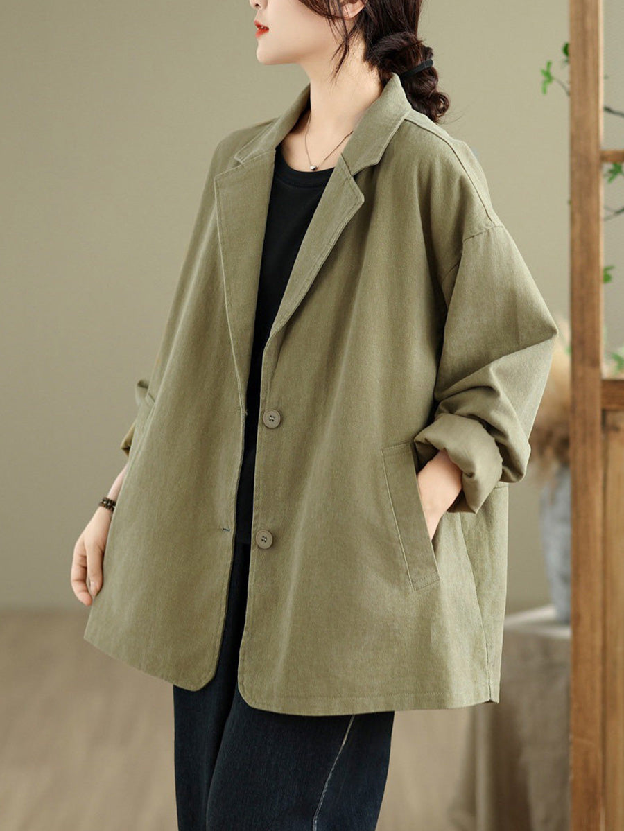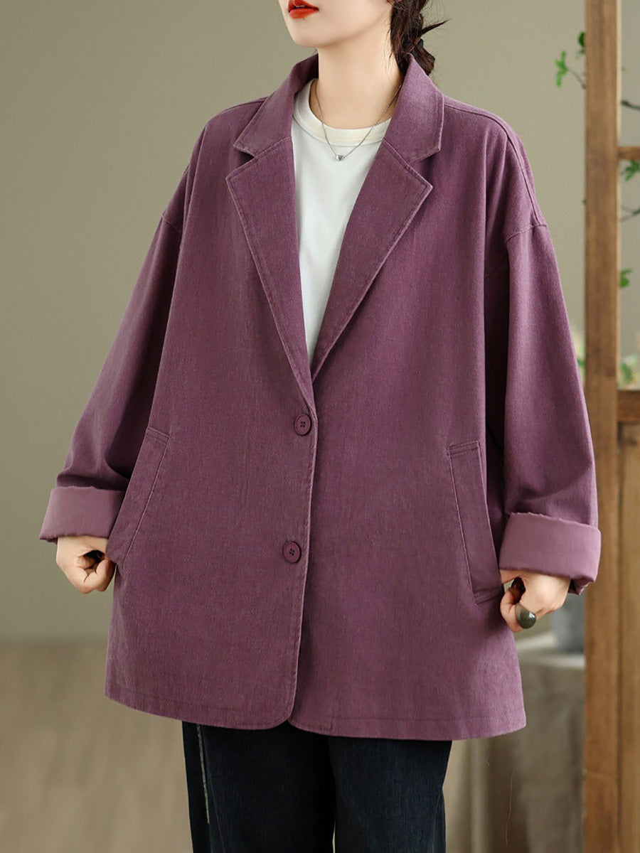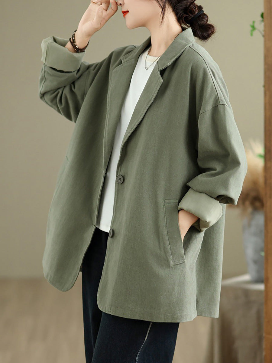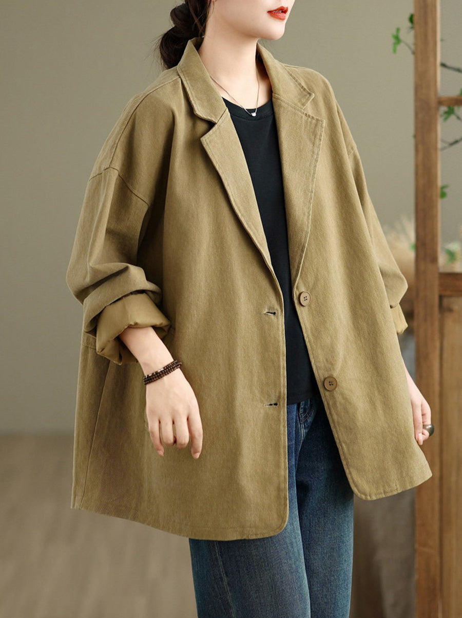 レディース春カジュアルピュアカラーターンダウンカラージャケット