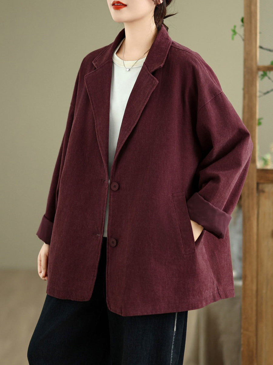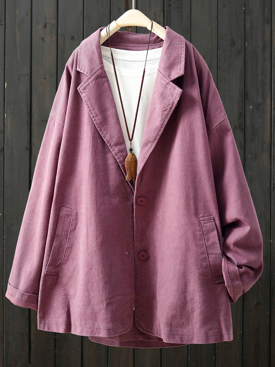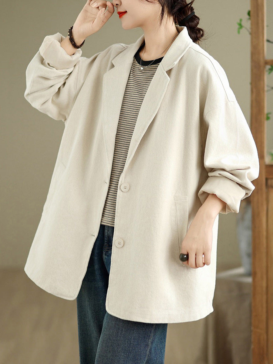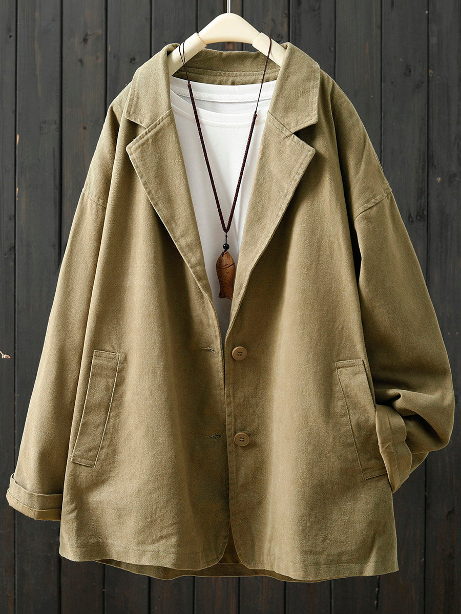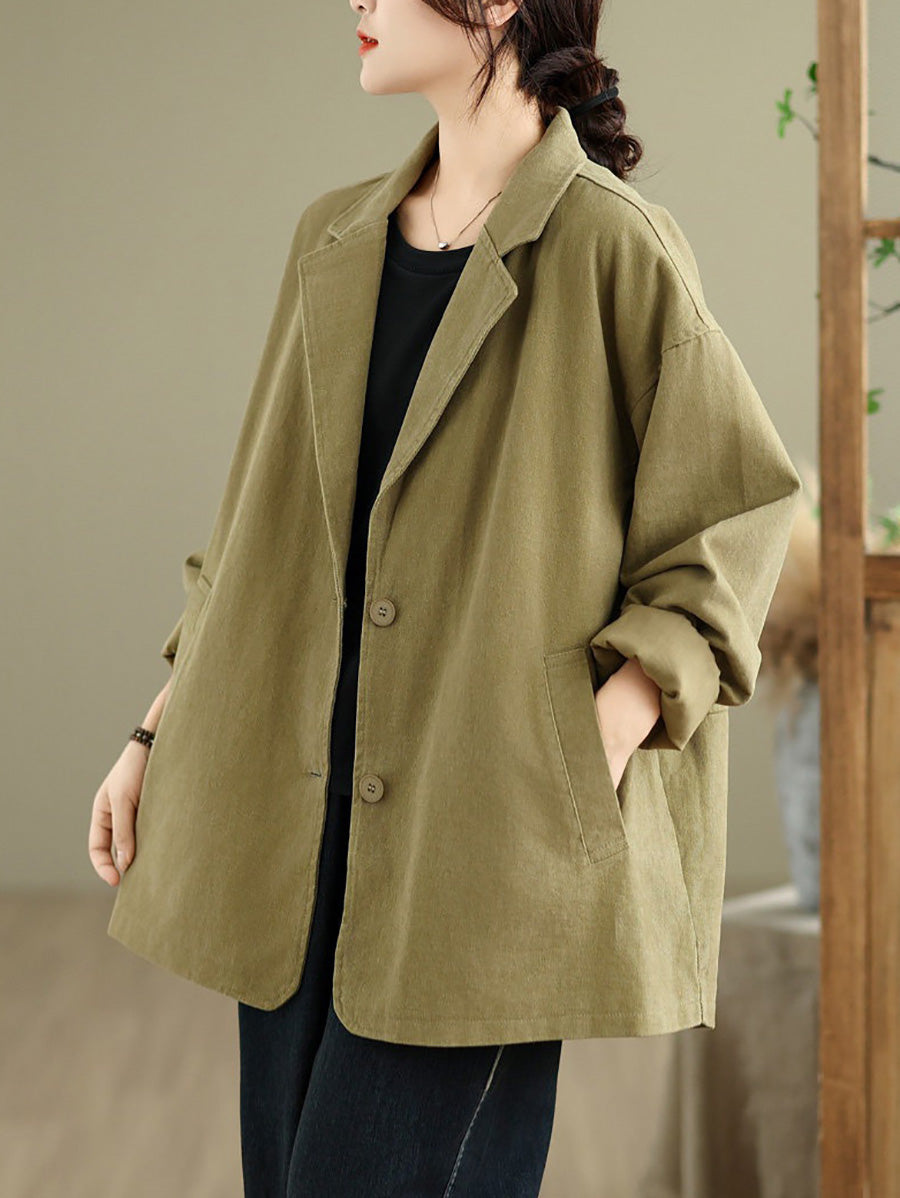 レディース春カジュアルピュアカラーターンダウンカラージャケット
