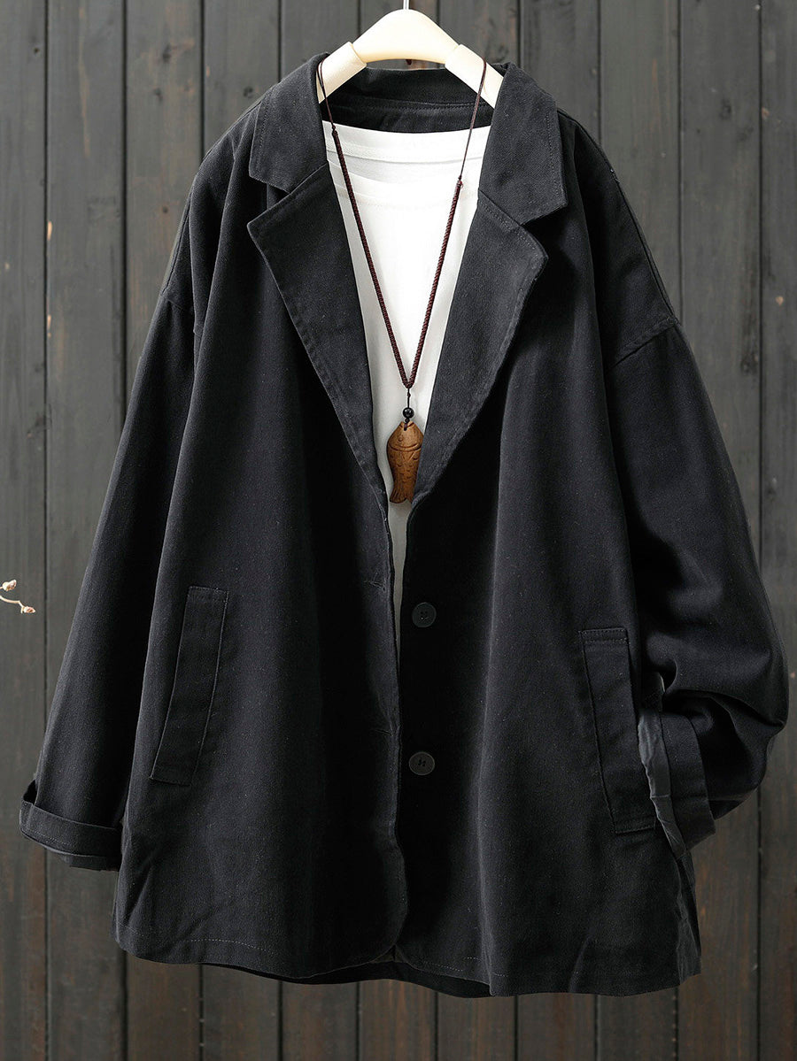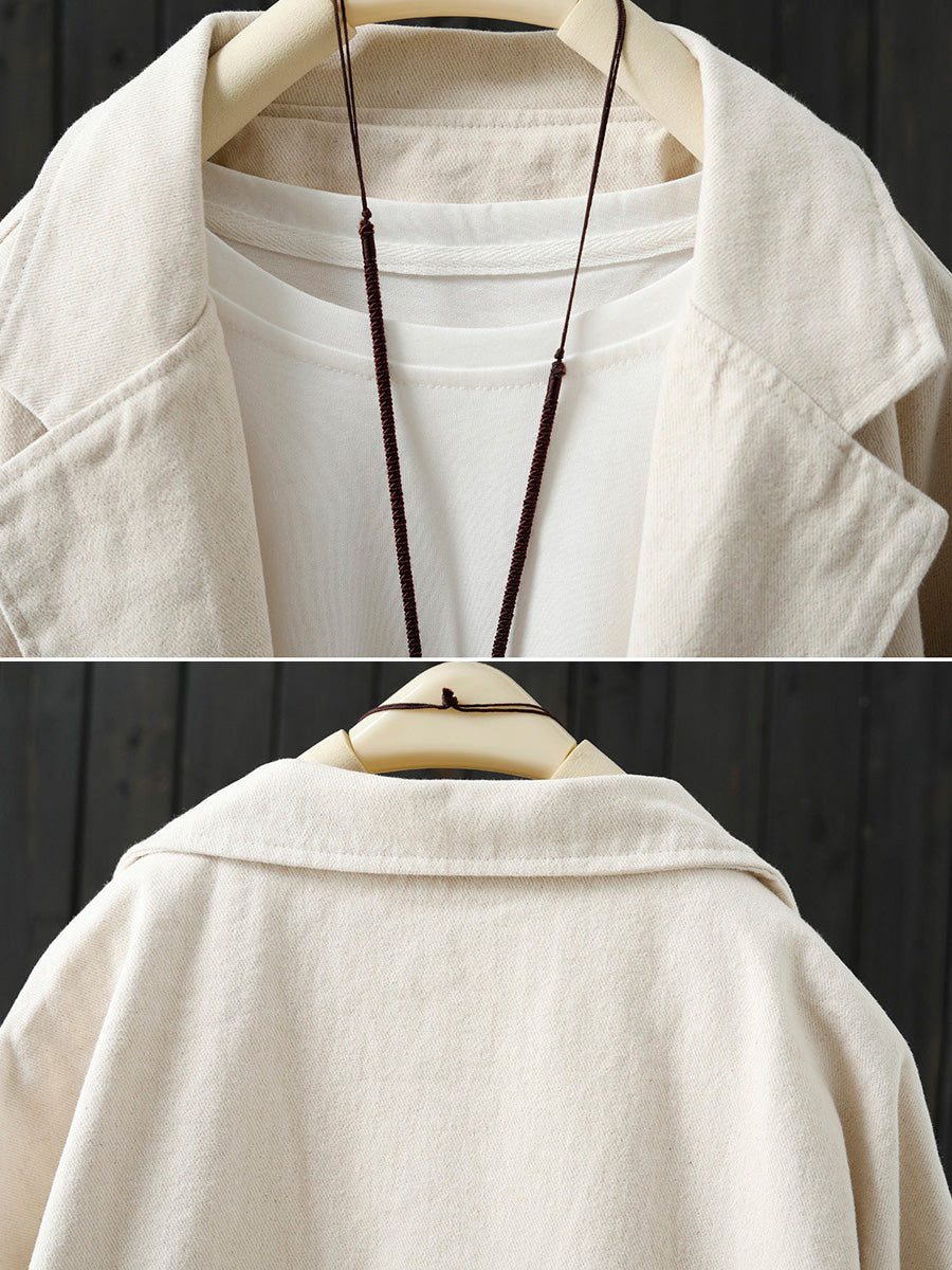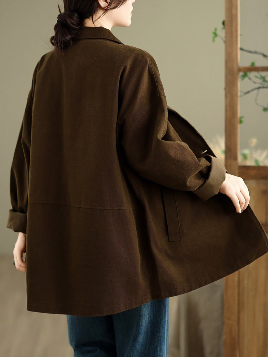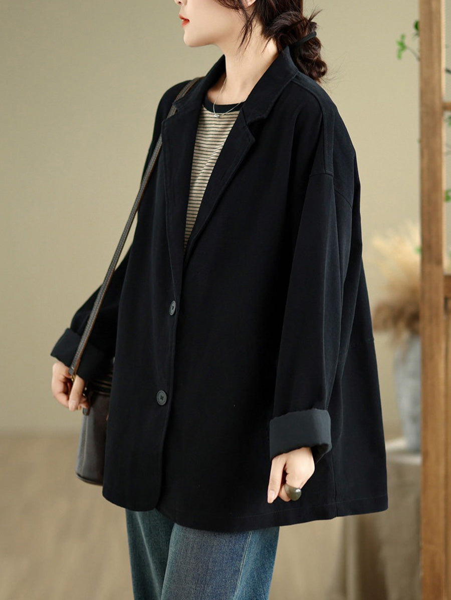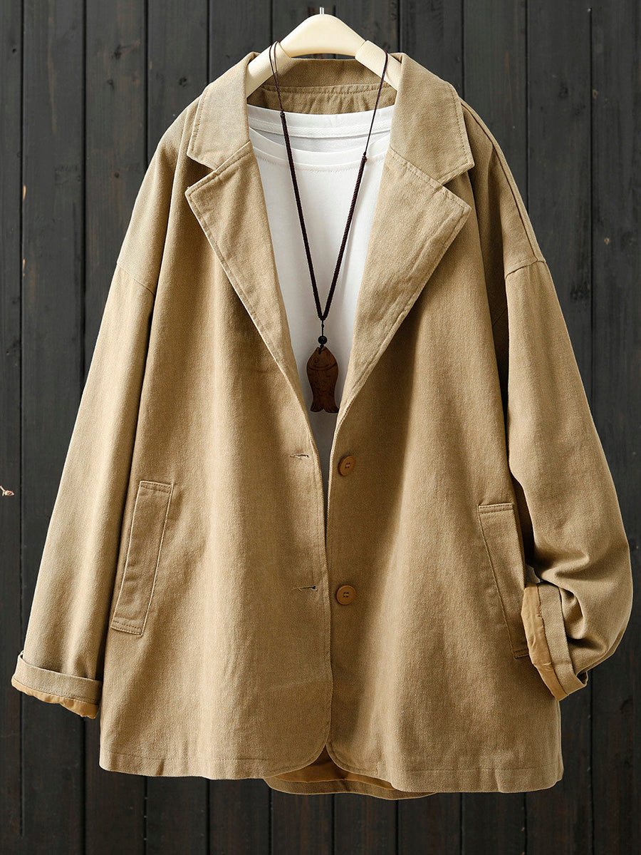 レディース春カジュアルピュアカラーターンダウンカラージャケット