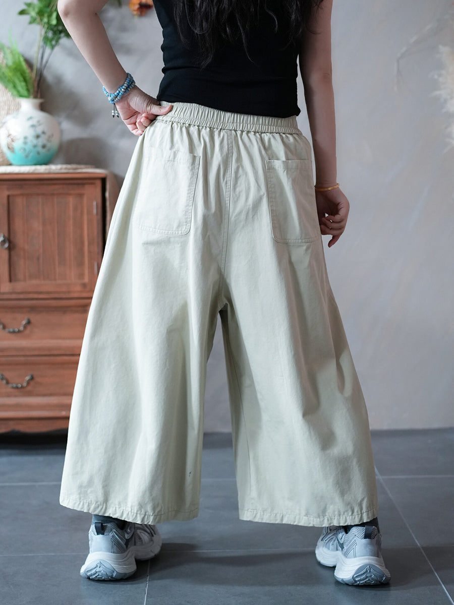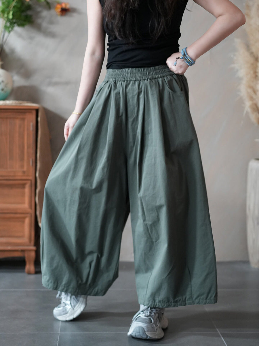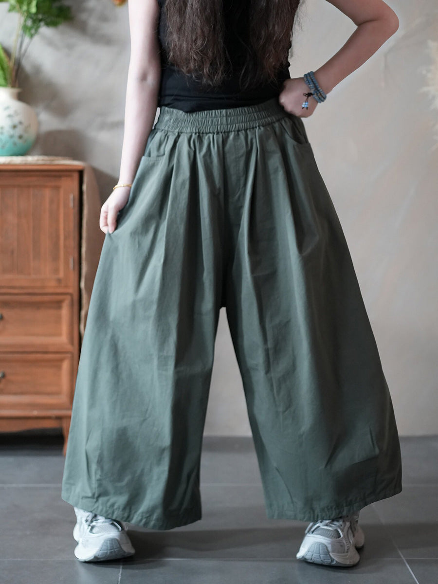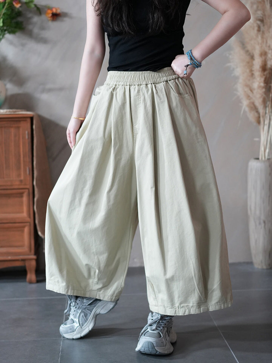レディース春カジュアルピュアカラーワイドレッグパンツ