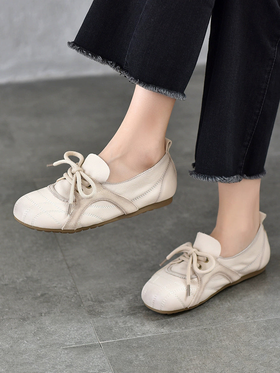 レディース 春 本革 ソフトフラットシューズ