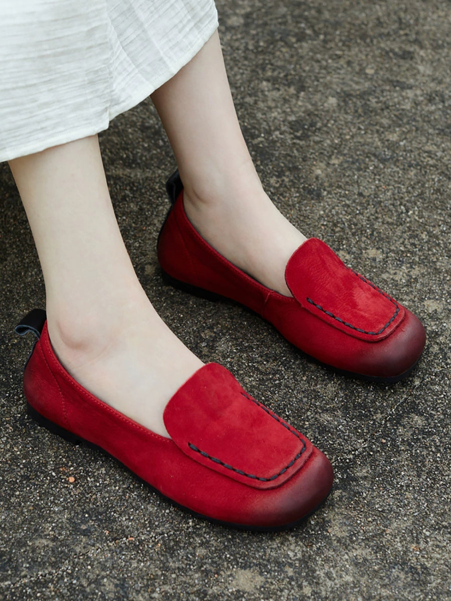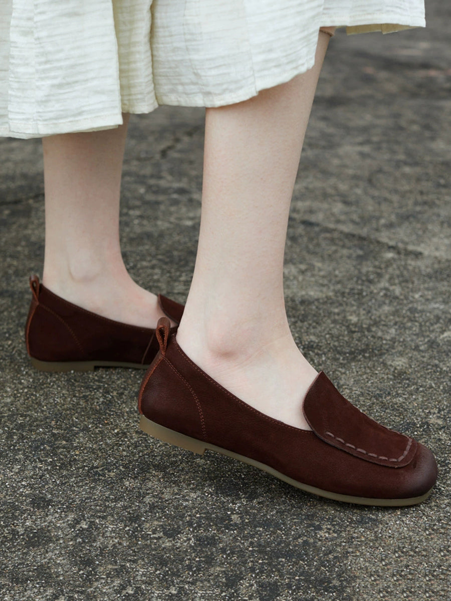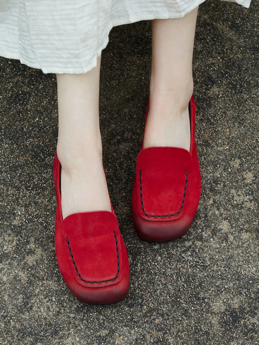 レディース 春 本革 スクエアトゥ シューズ