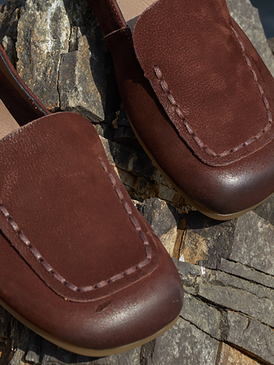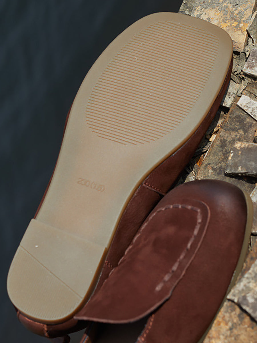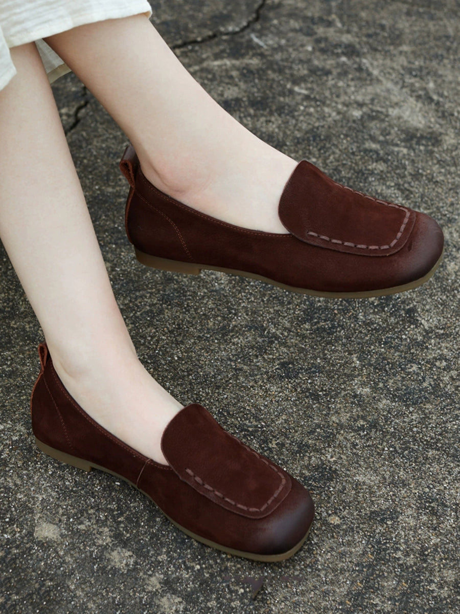 レディース 春 本革 スクエアトゥ シューズ