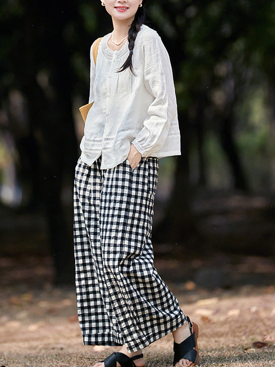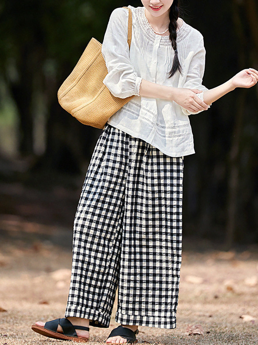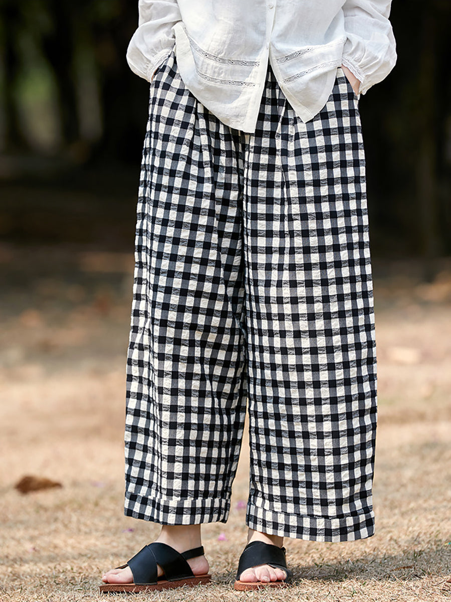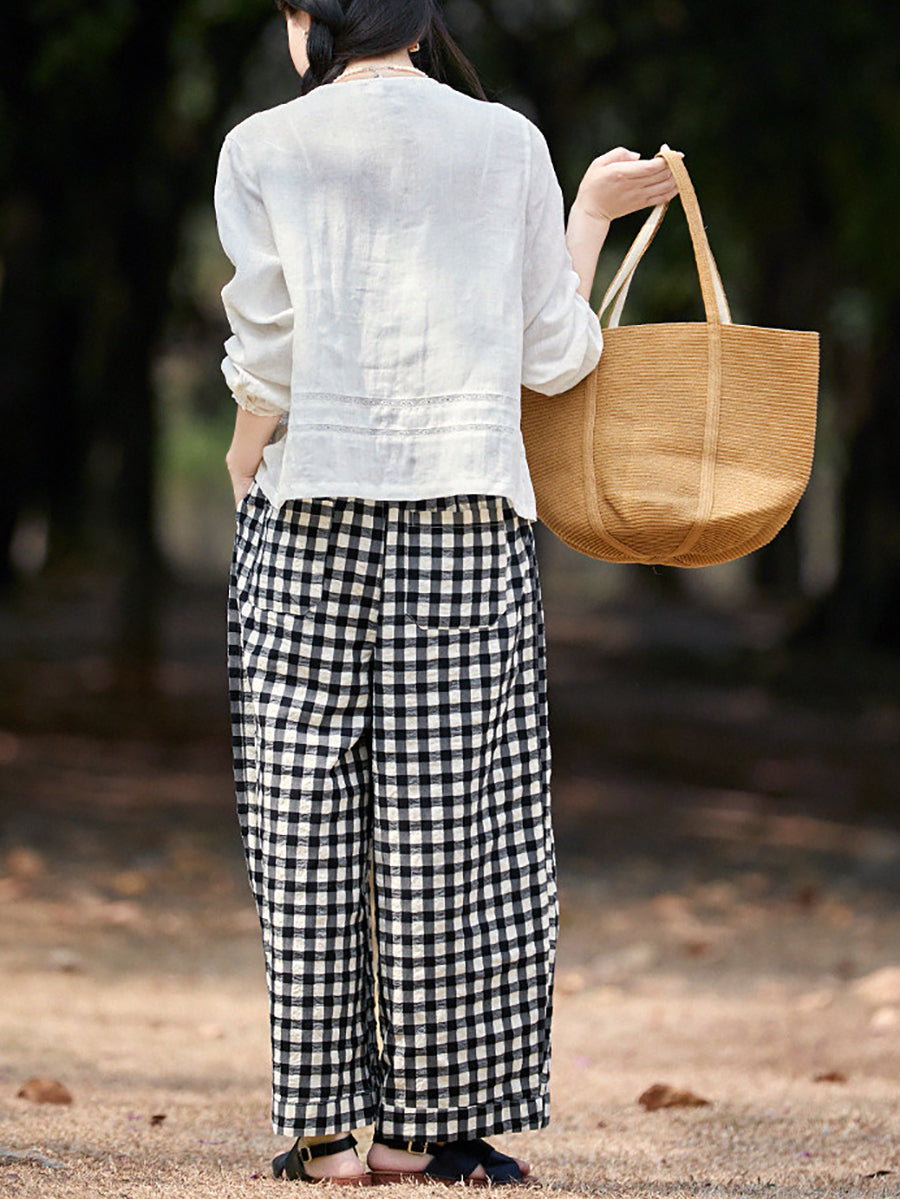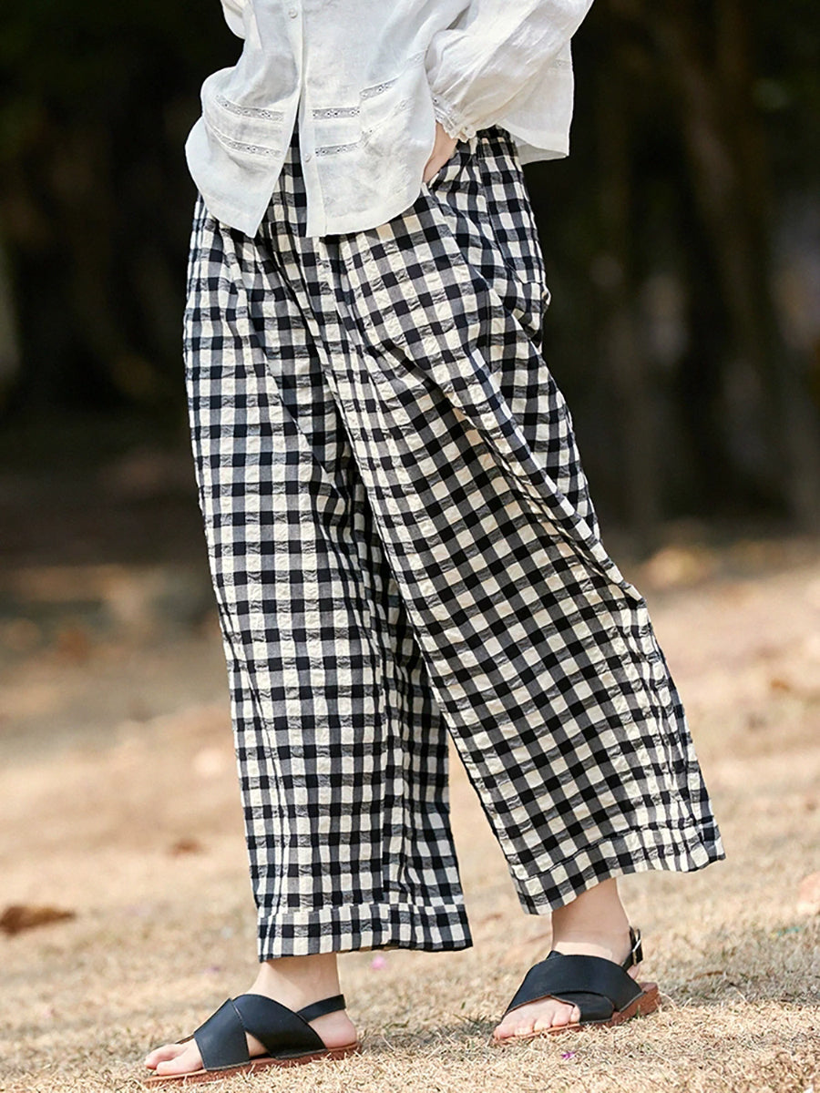 レディース 春 チェック柄 100%コットン チェックパンツ