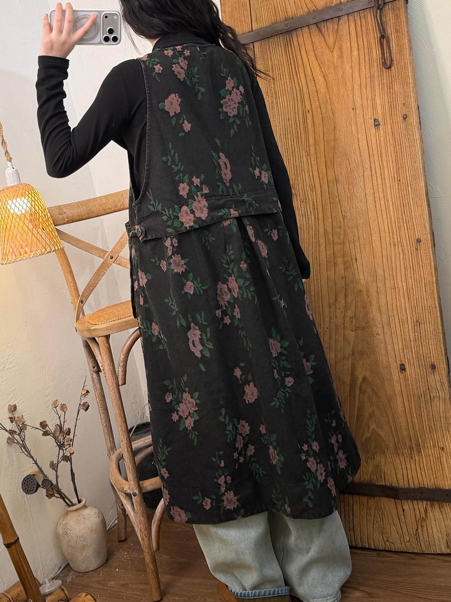 レディース 春 レトロ フラワー Vネック ベスト ドレス