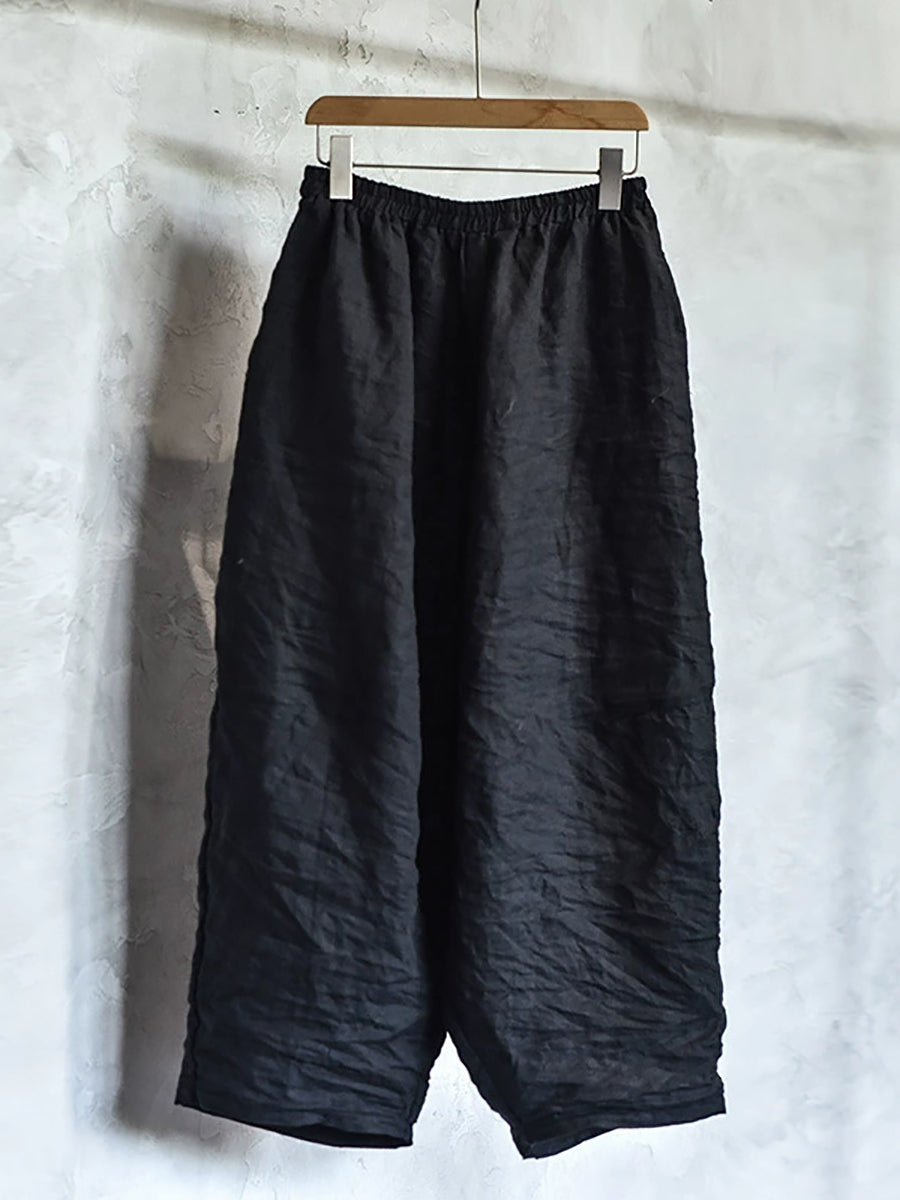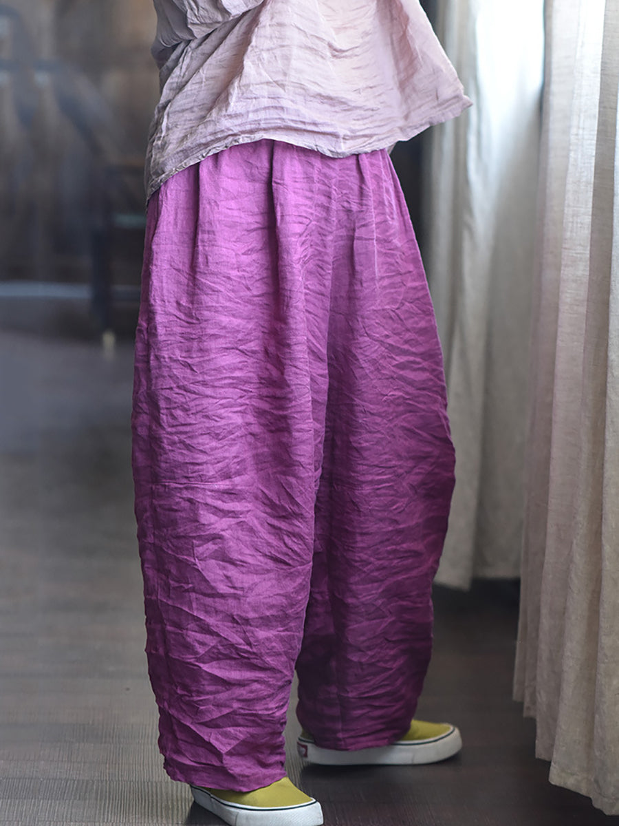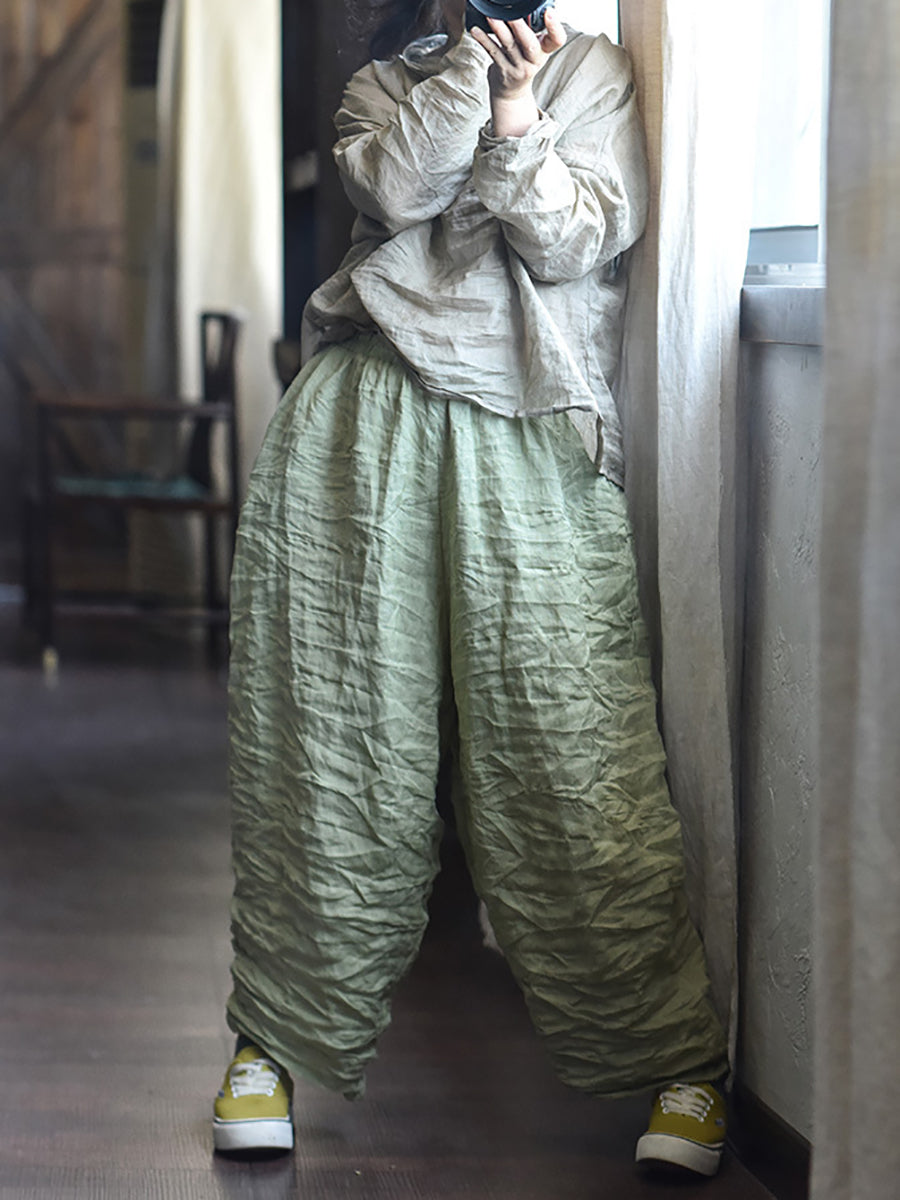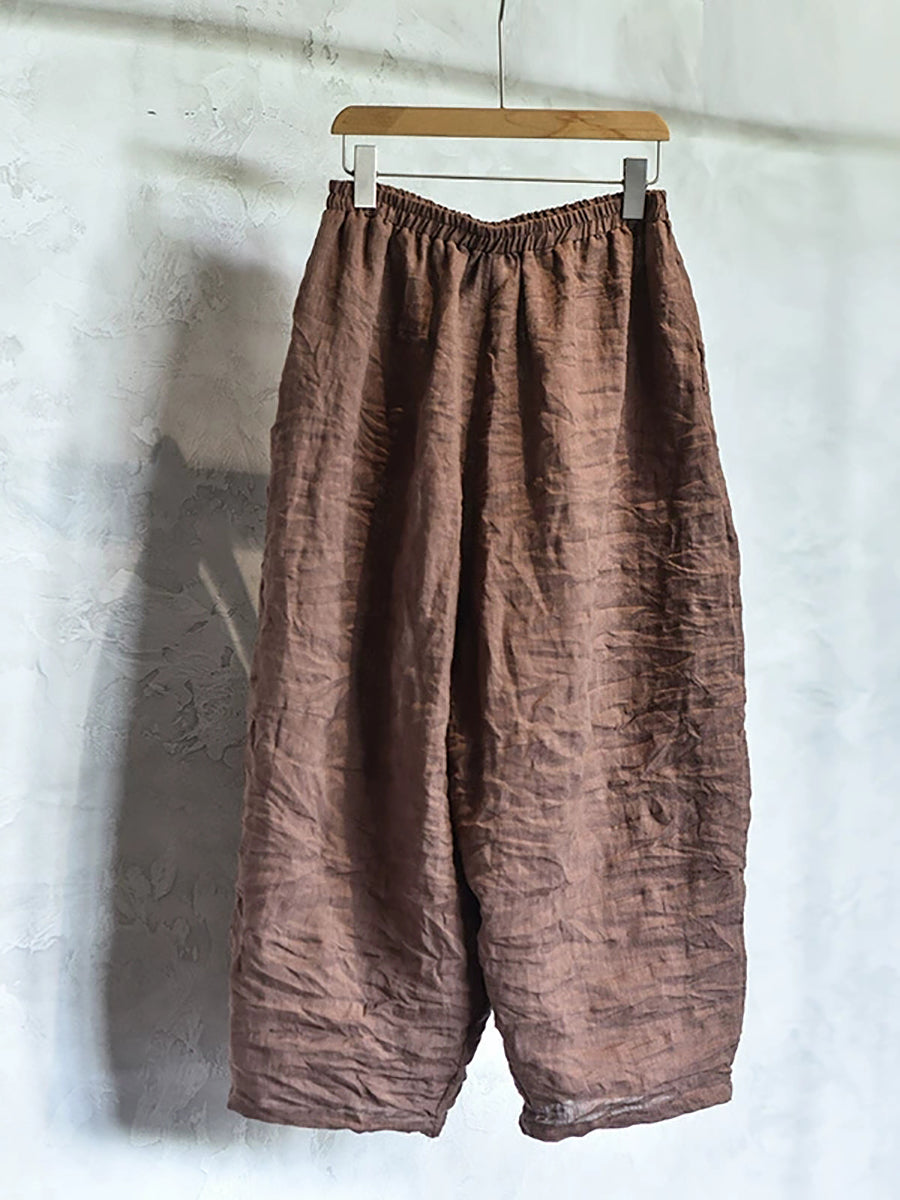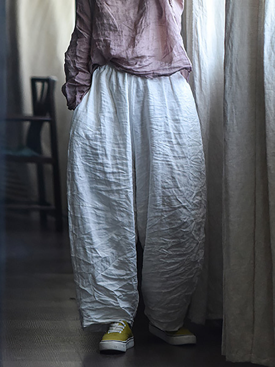 レディース 春 レトロ ピュアカラー リネン ワイドレッグパンツ