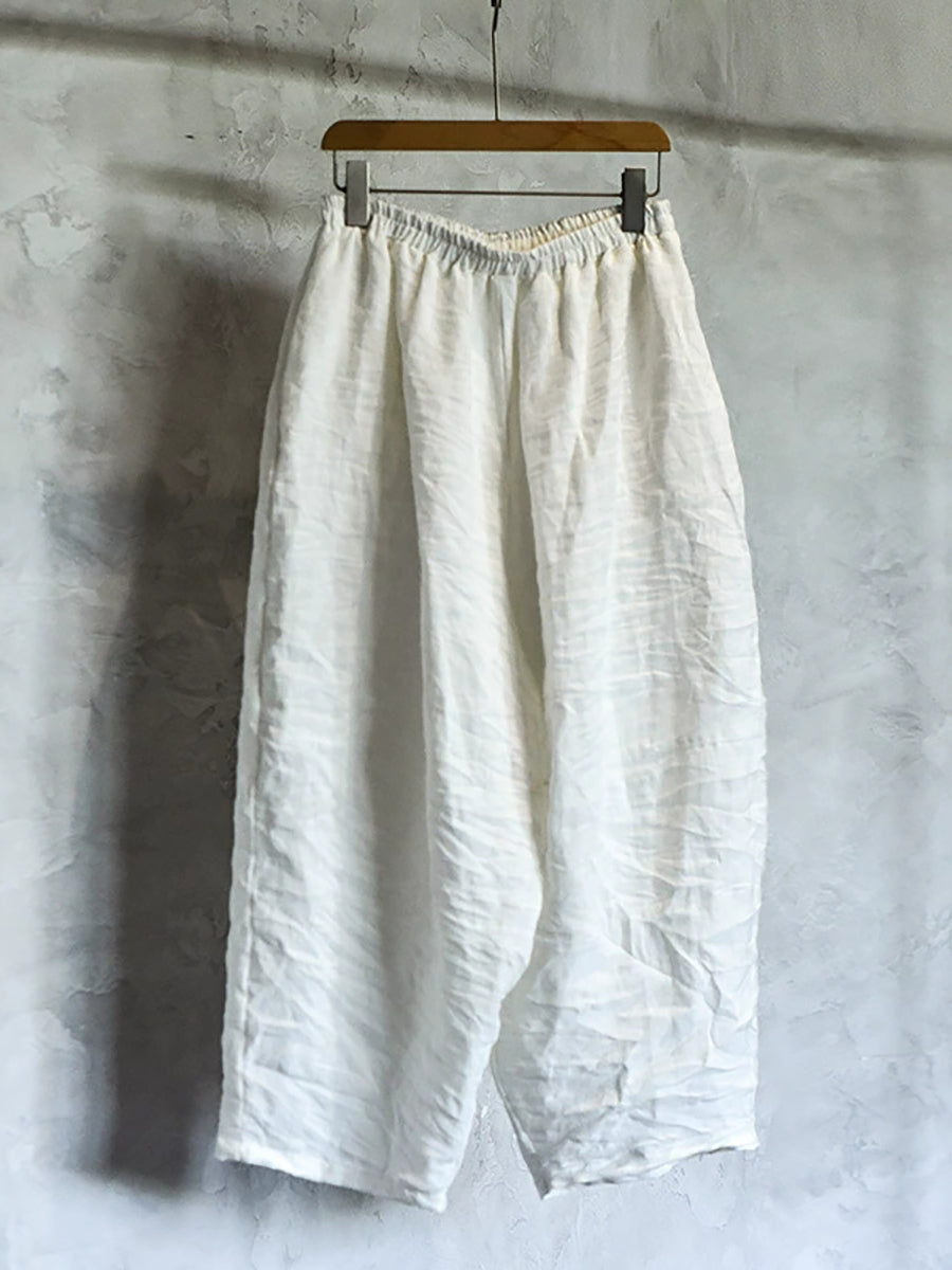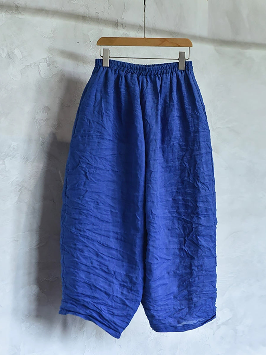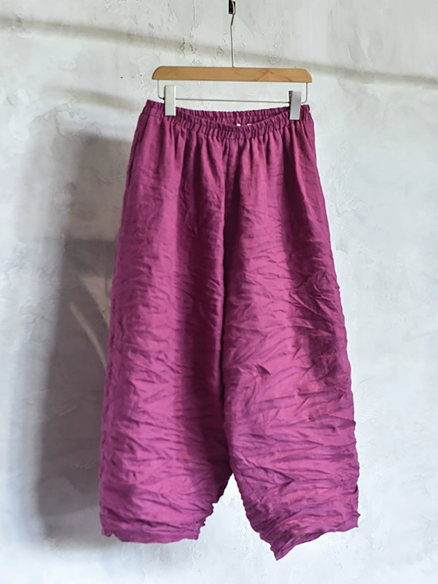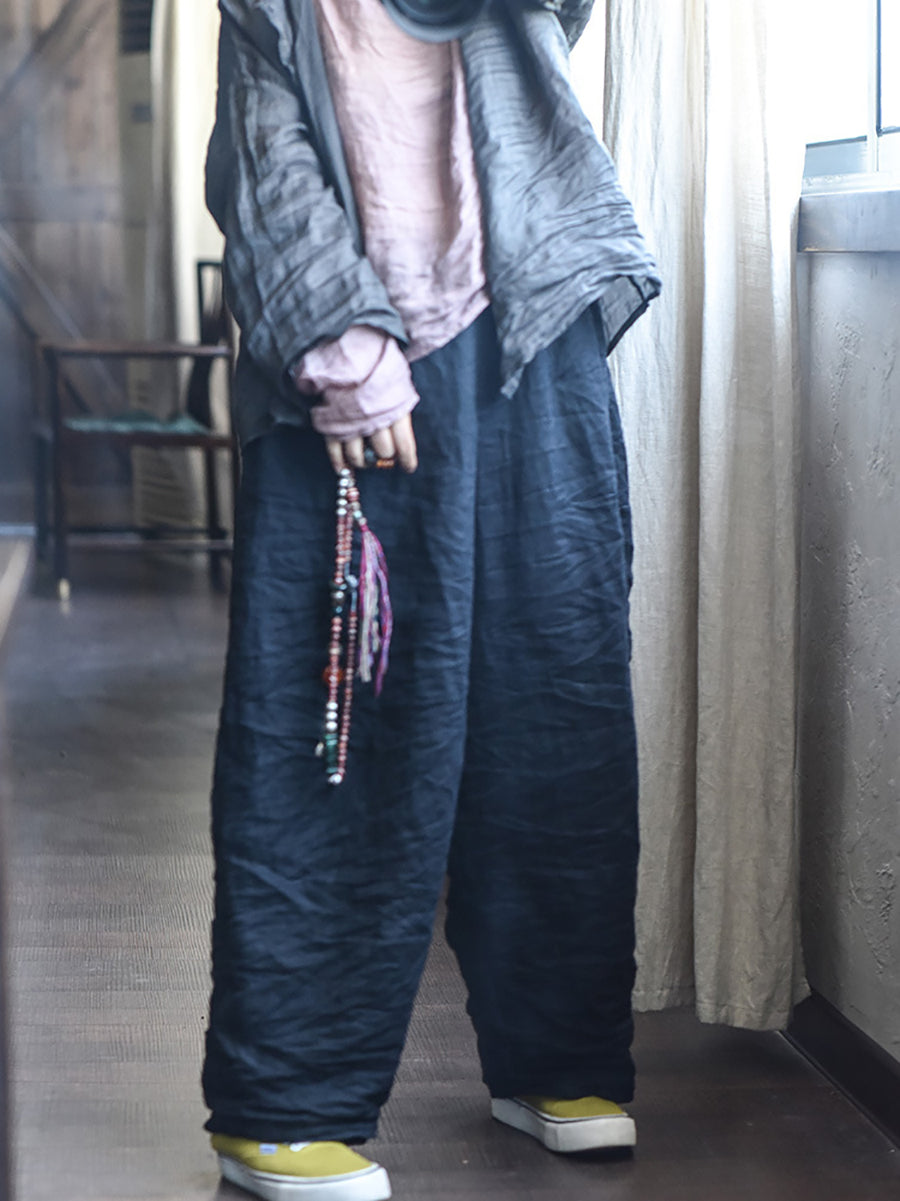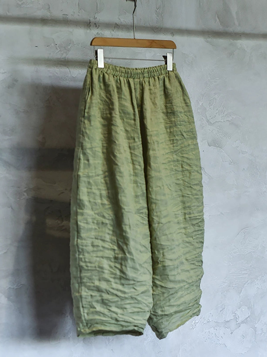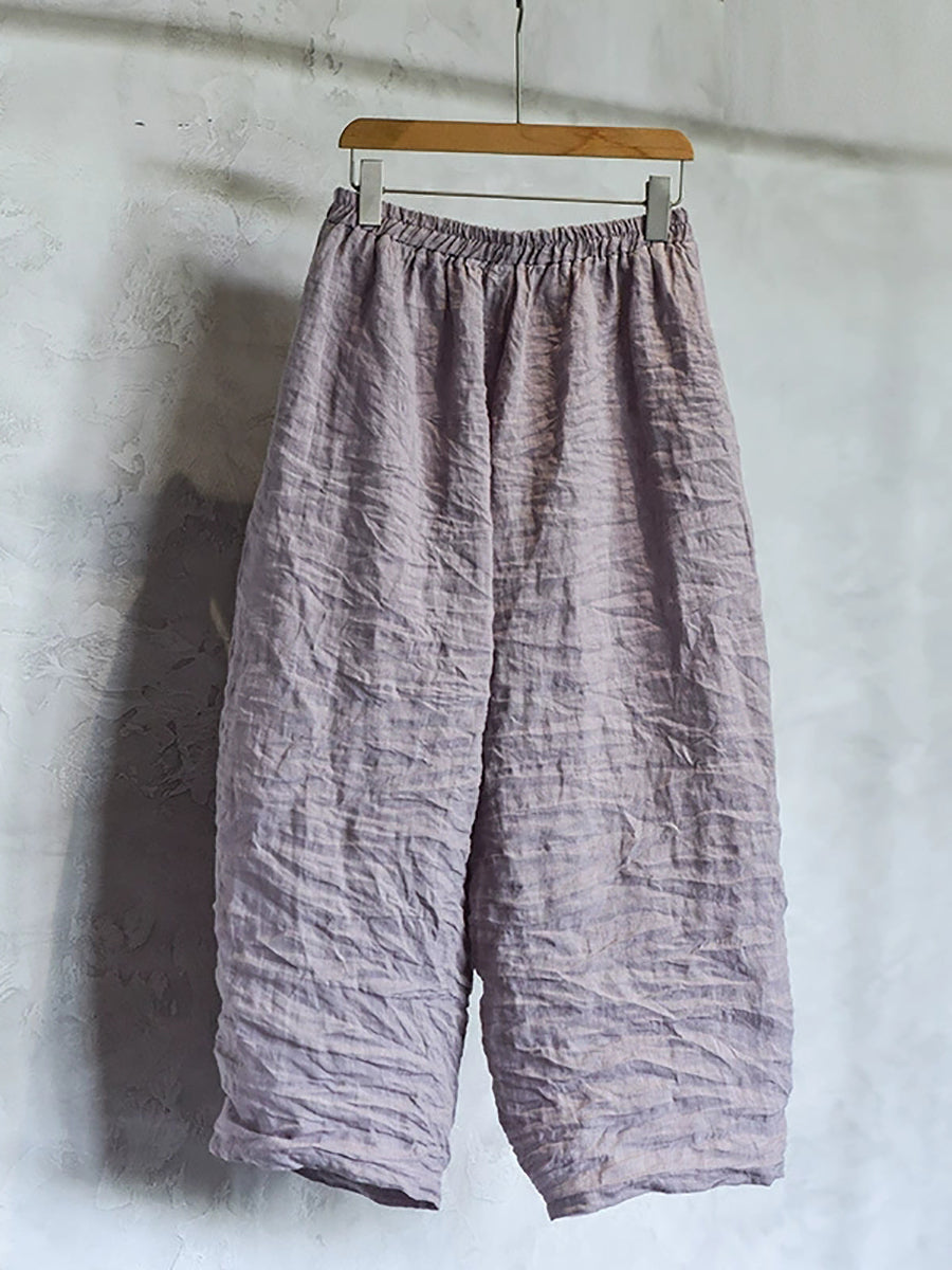 レディース 春 レトロ ピュアカラー リネン ワイドレッグパンツ