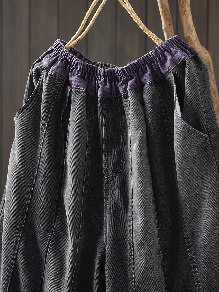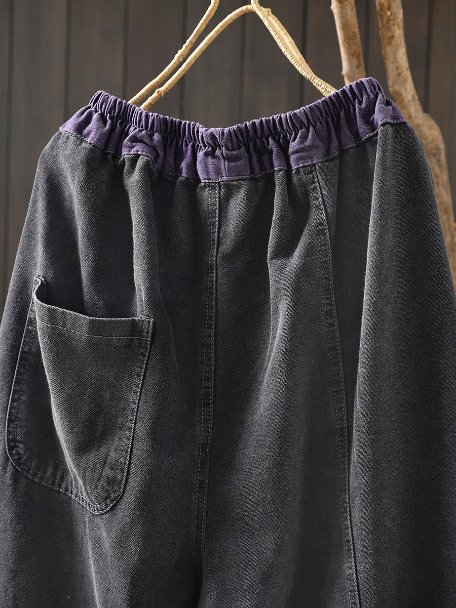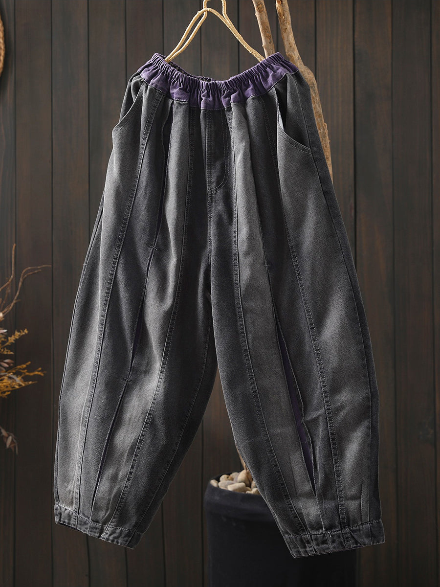 レディース 春 ヴィンテージ デニム スプライス ハーレムパンツ