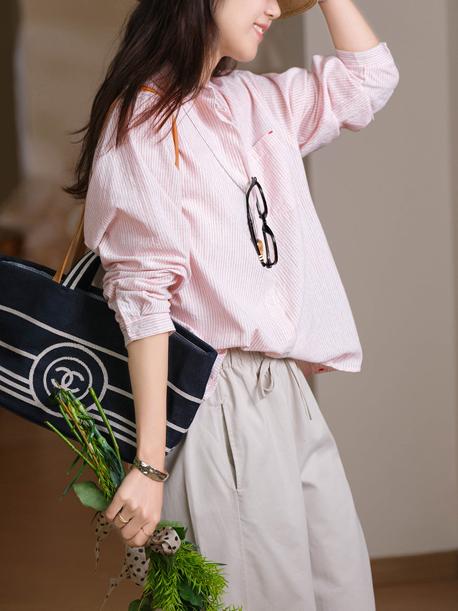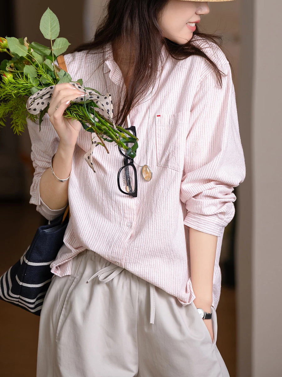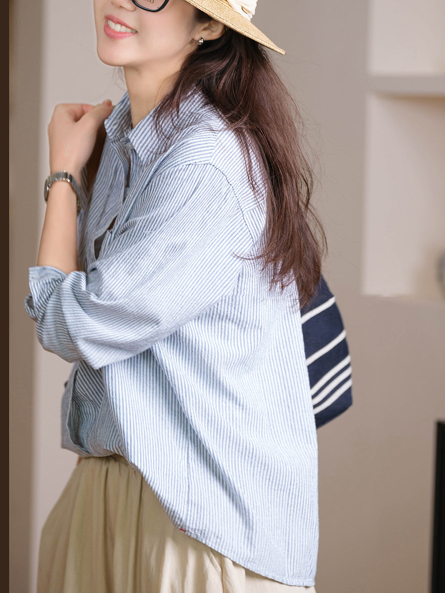 レディース 春 ヴィンテージ ストライプ 100%コットンスーツ