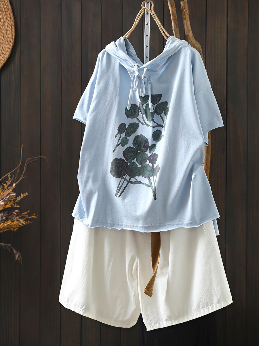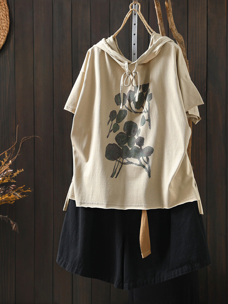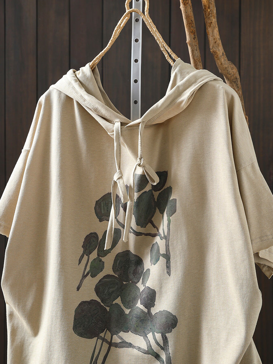 レディース 夏用 アーティスティックな花柄 100%コットンパーカー