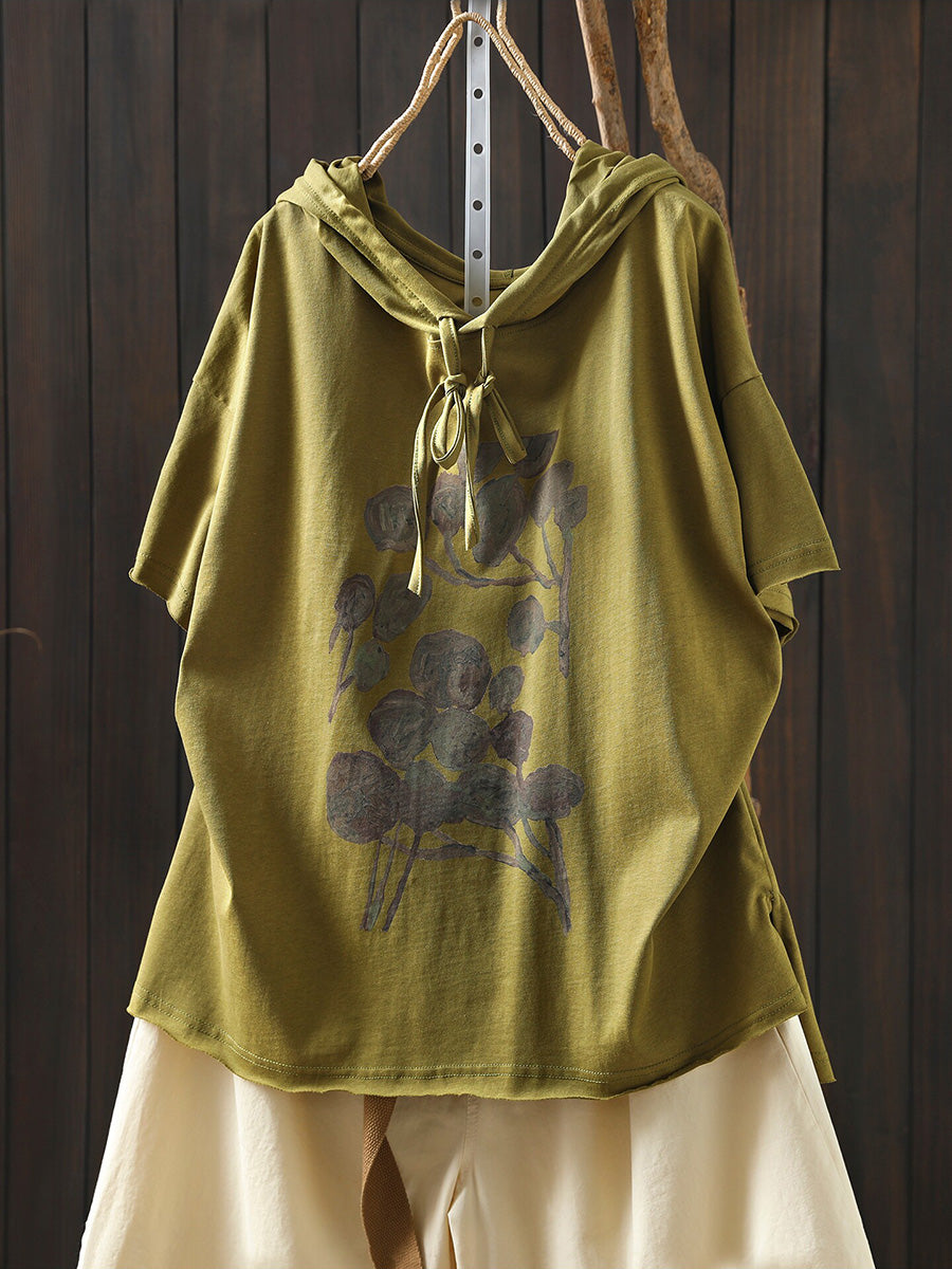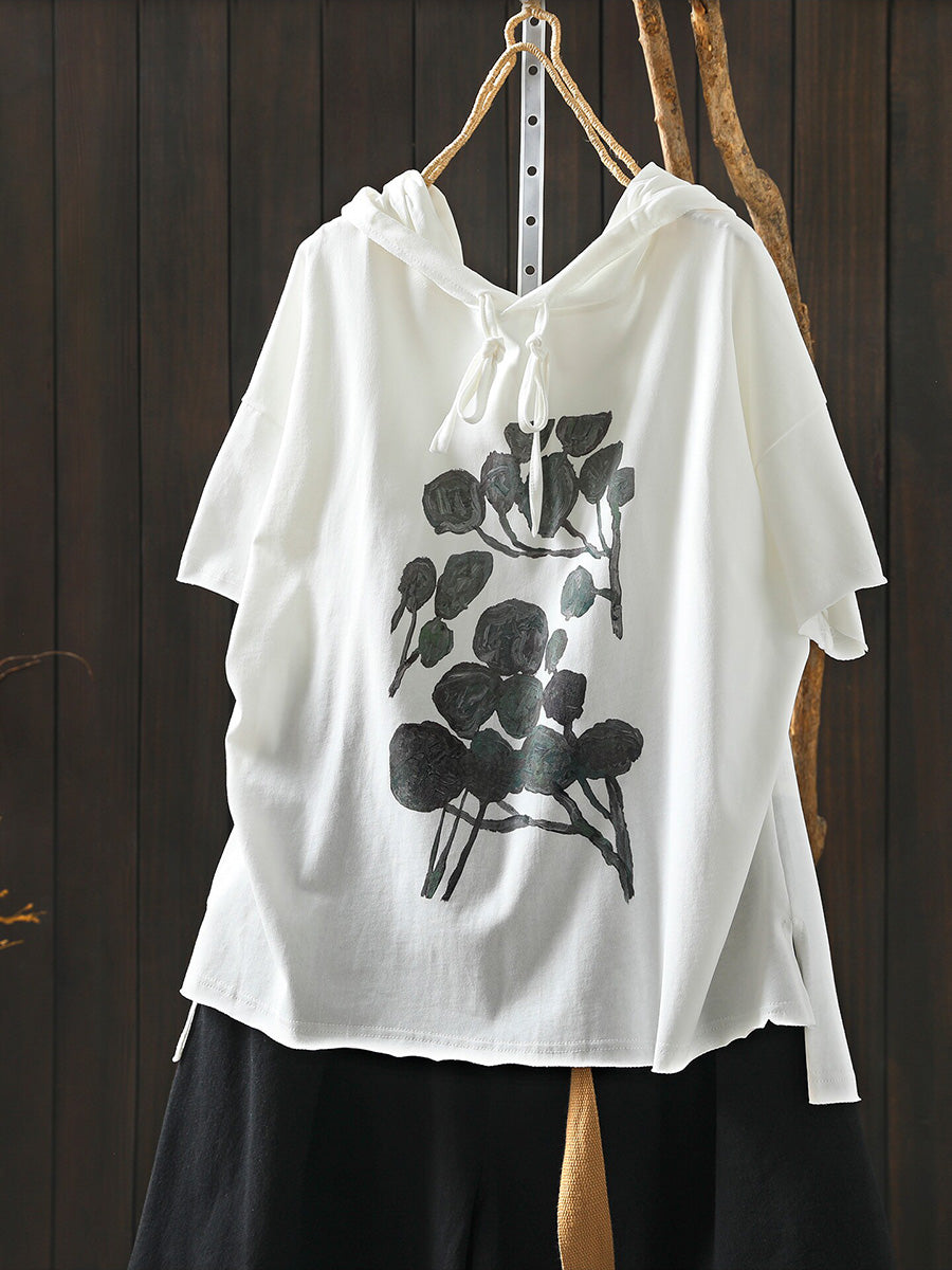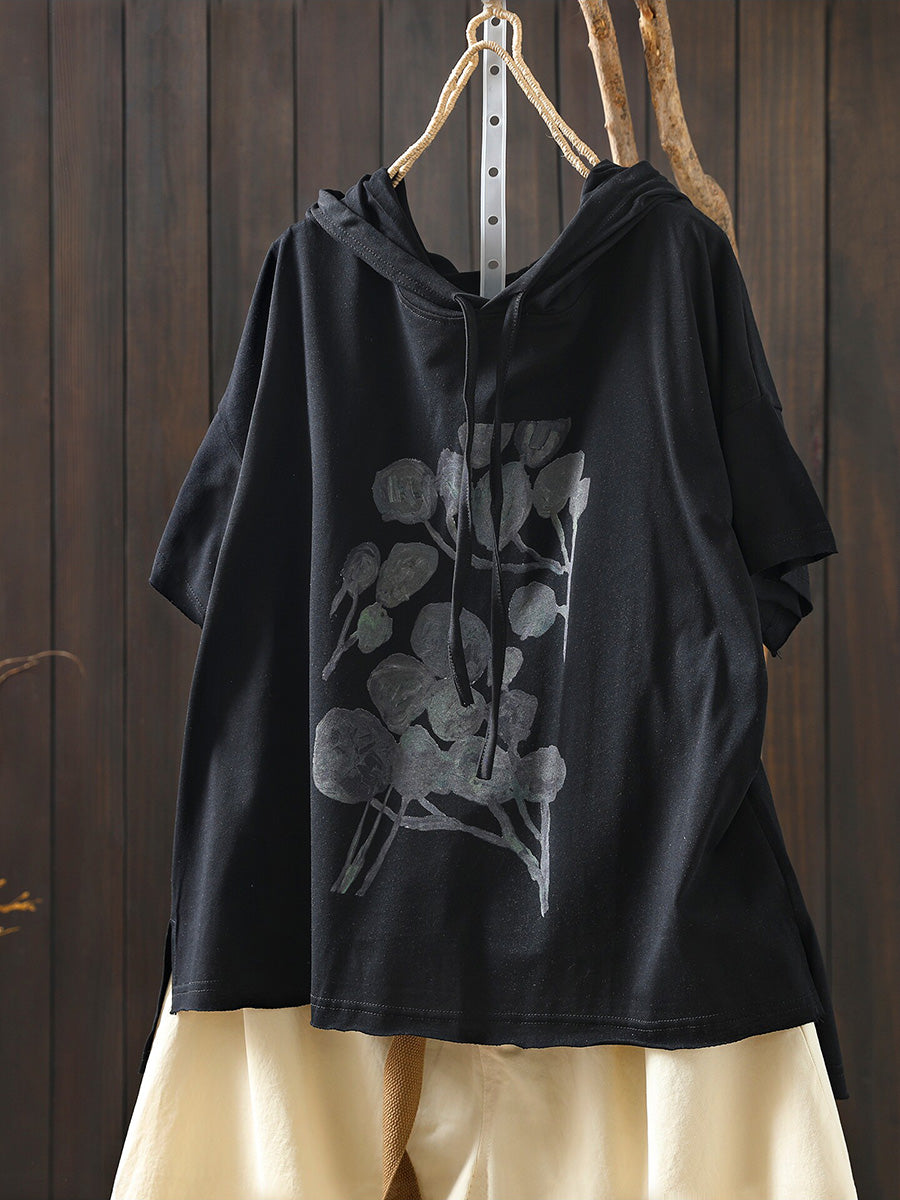 レディース 夏用 アーティスティックな花柄 100%コットンパーカー