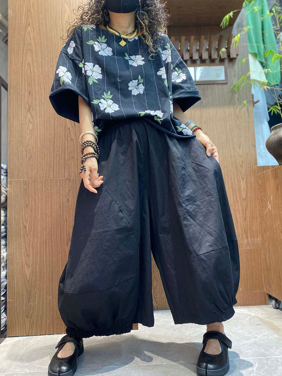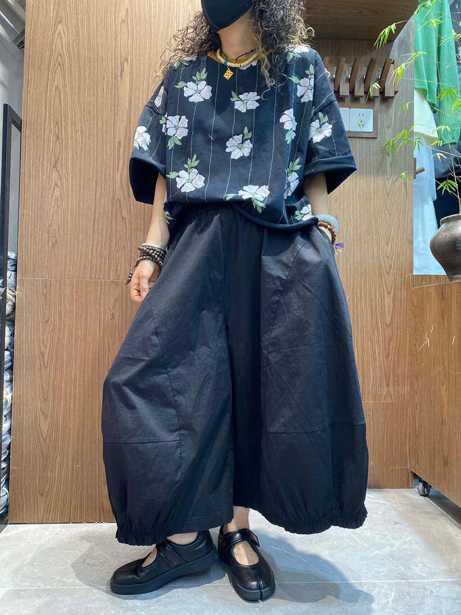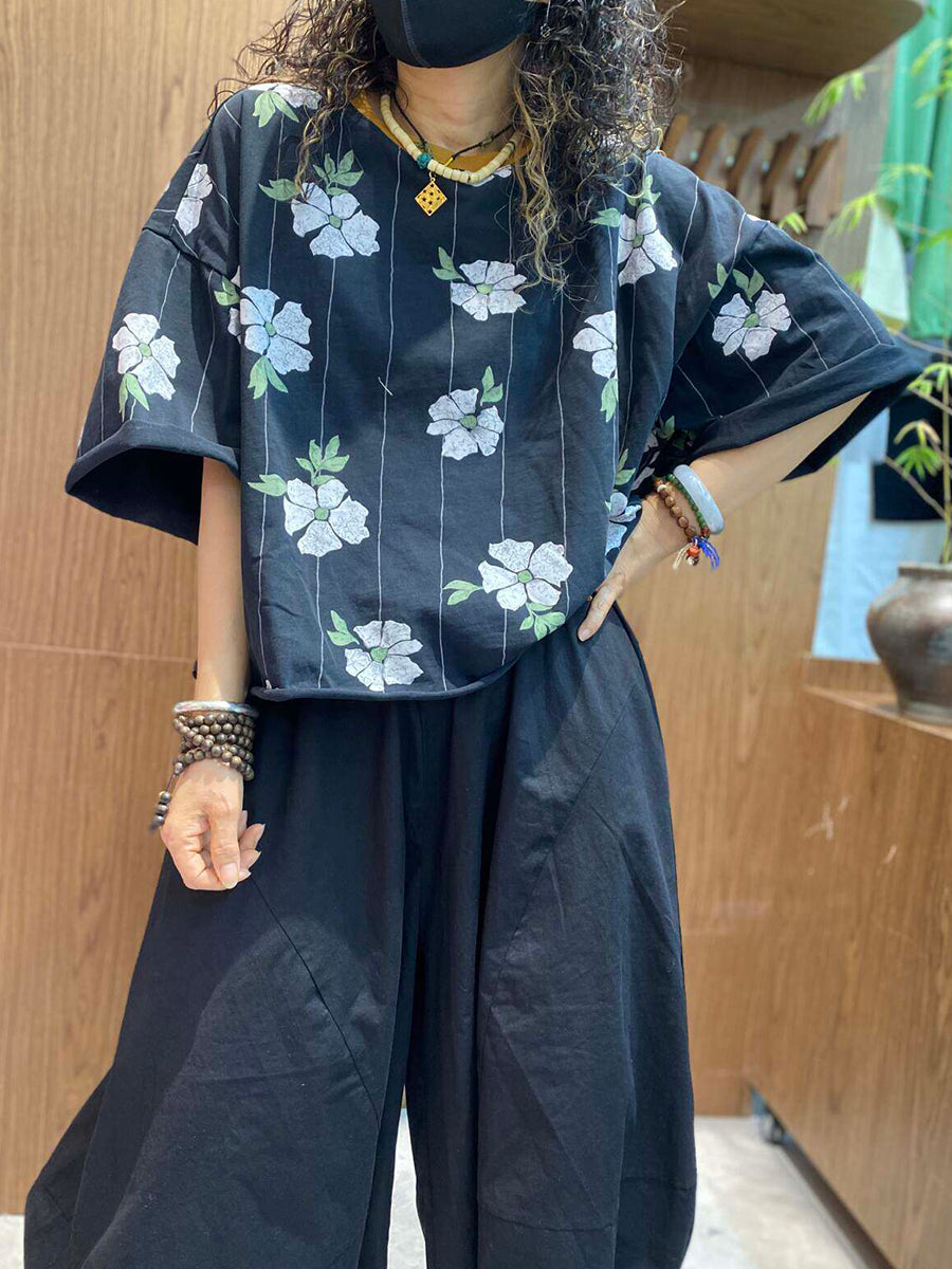 レディース 夏用 アーティスティックな花柄 ルーズブラウス