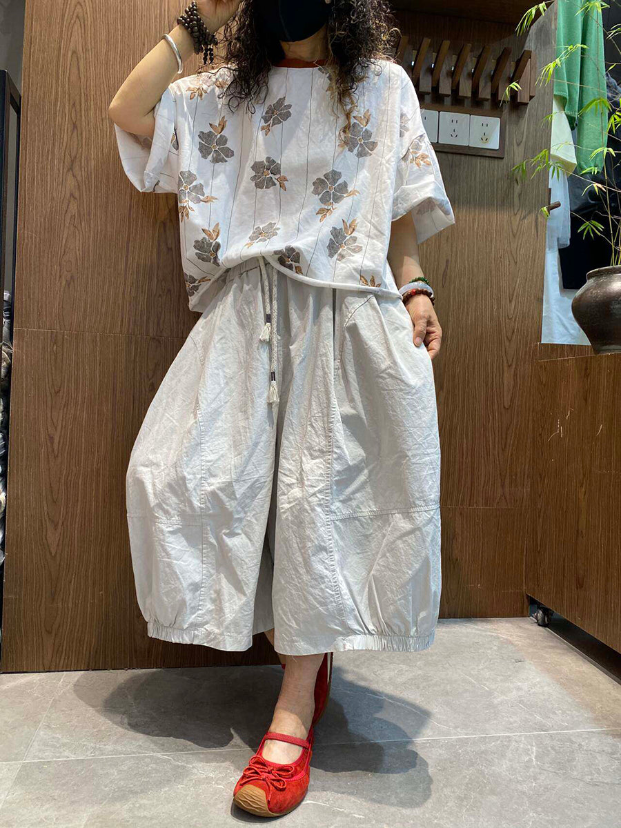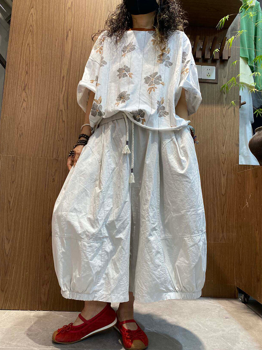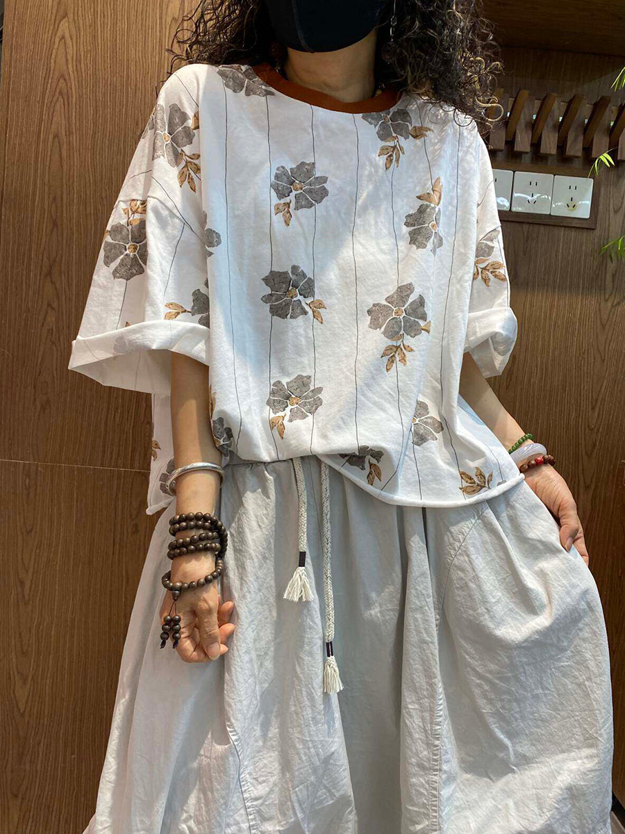 レディース 夏用 アーティスティックな花柄 ルーズブラウス