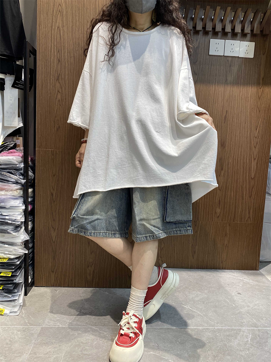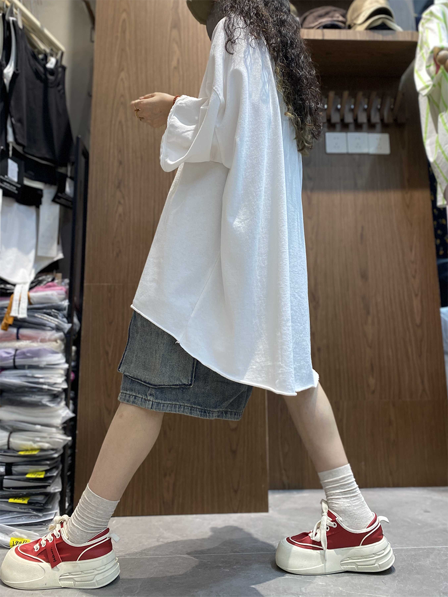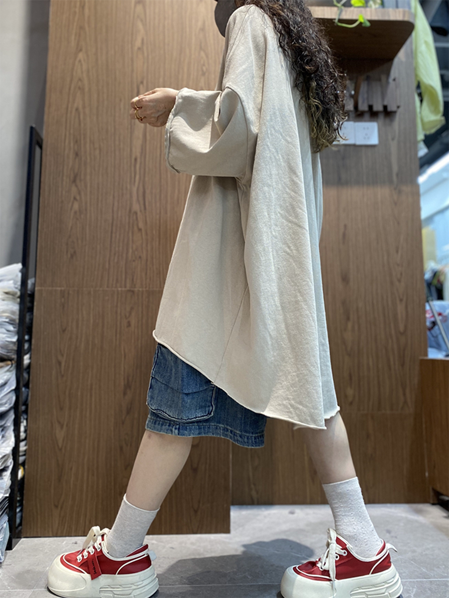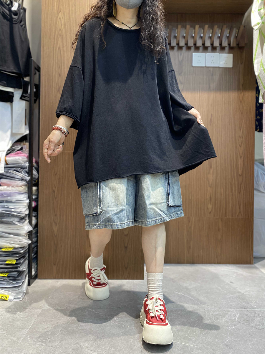 レディース サマー アーティスティック ピュアカラー コットン Oネック ブラウス