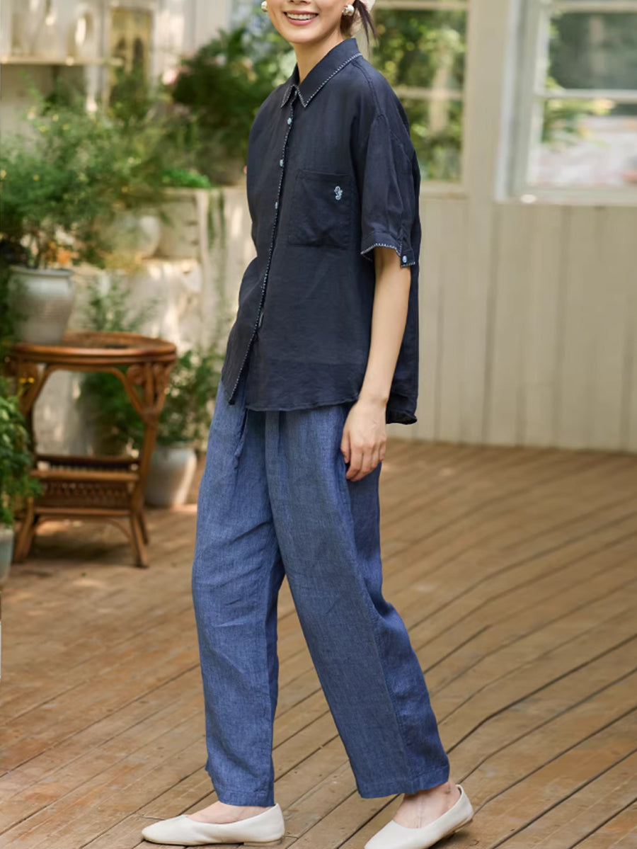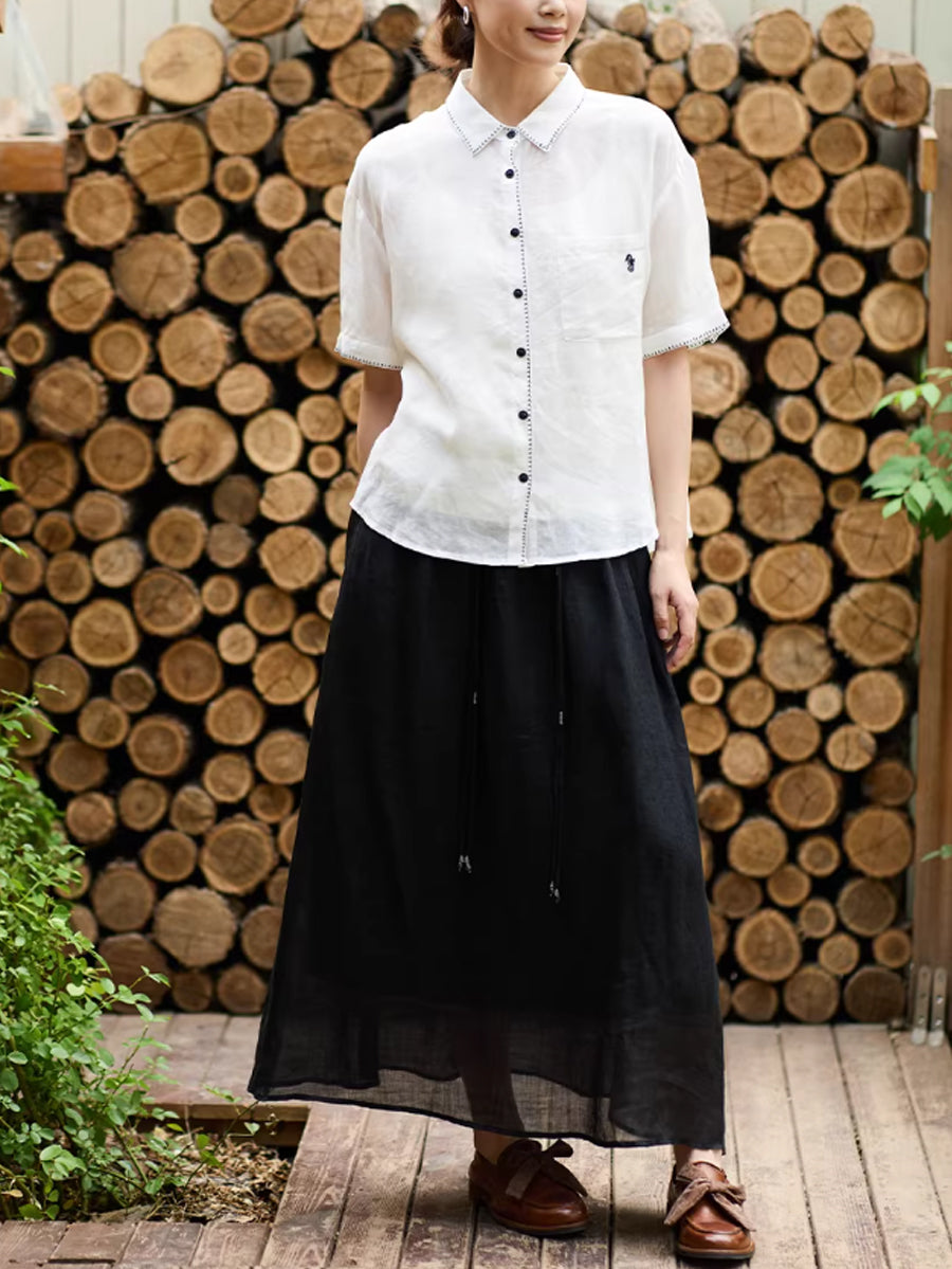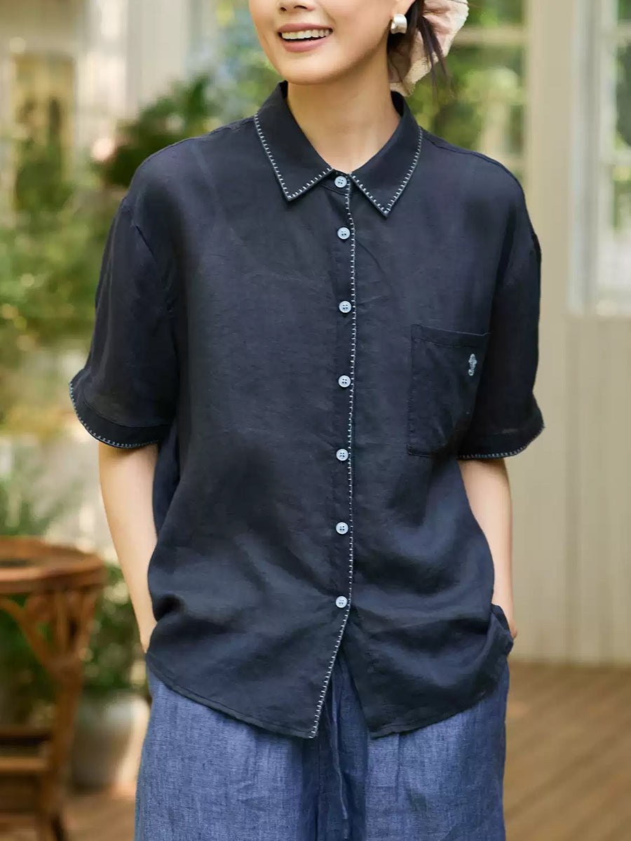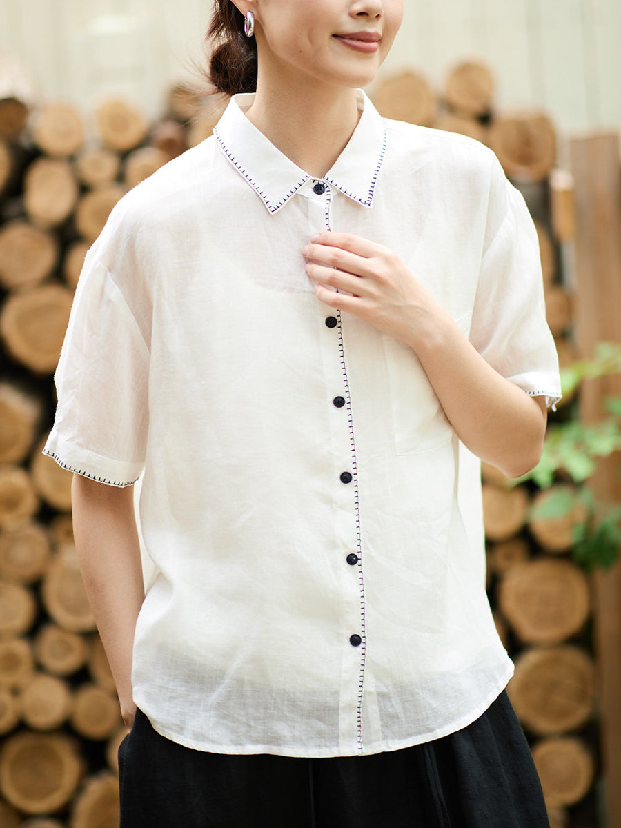 レディース サマー アーティスティック ラミー ターンダウンカラー シャツ