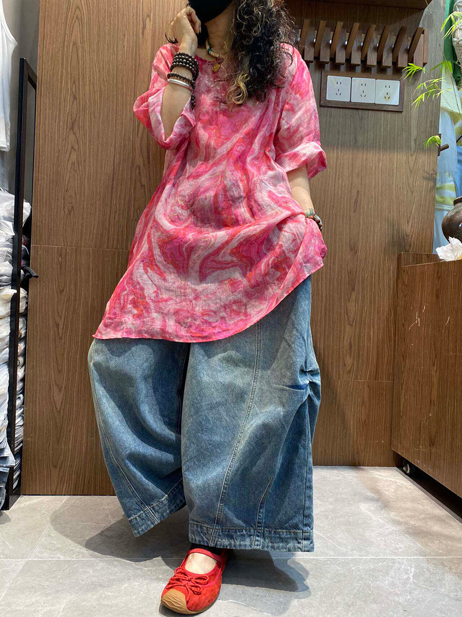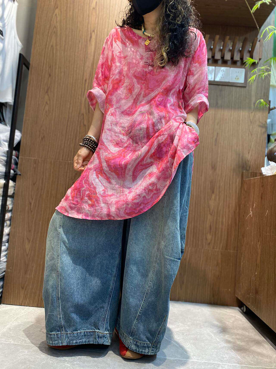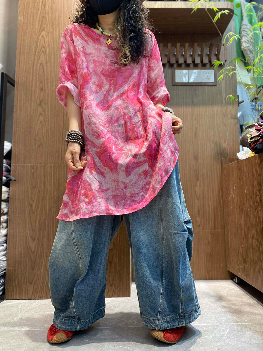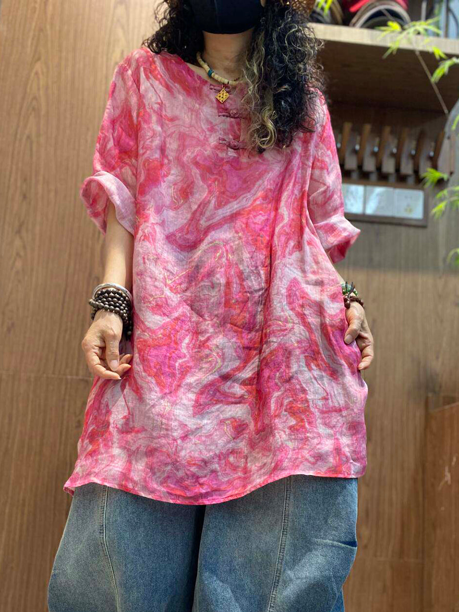 レディース 夏物 アーティスティック タイダイ ラミー ブラウス