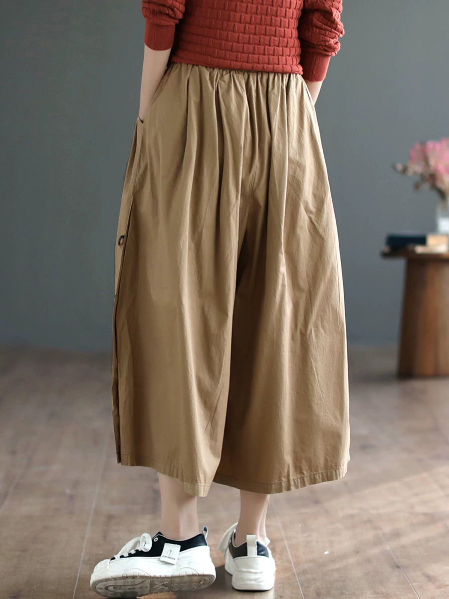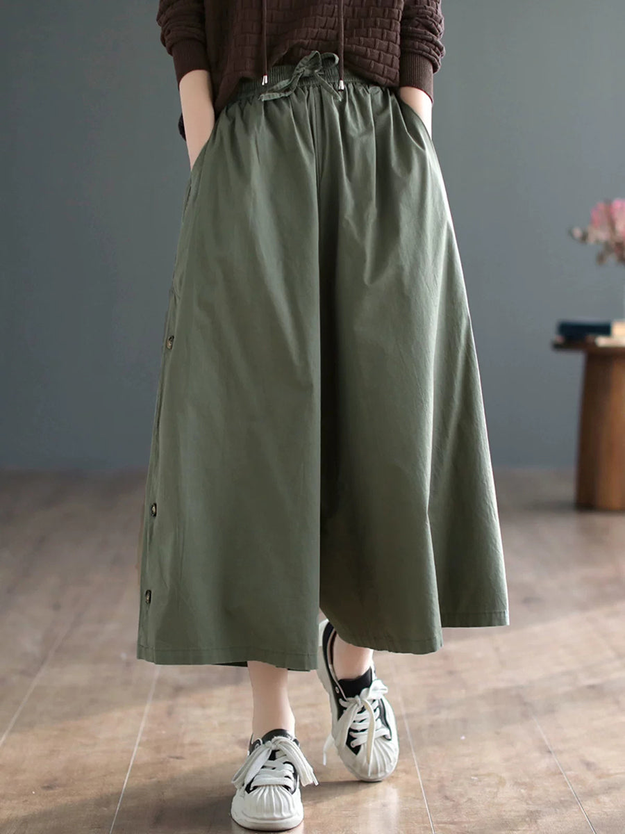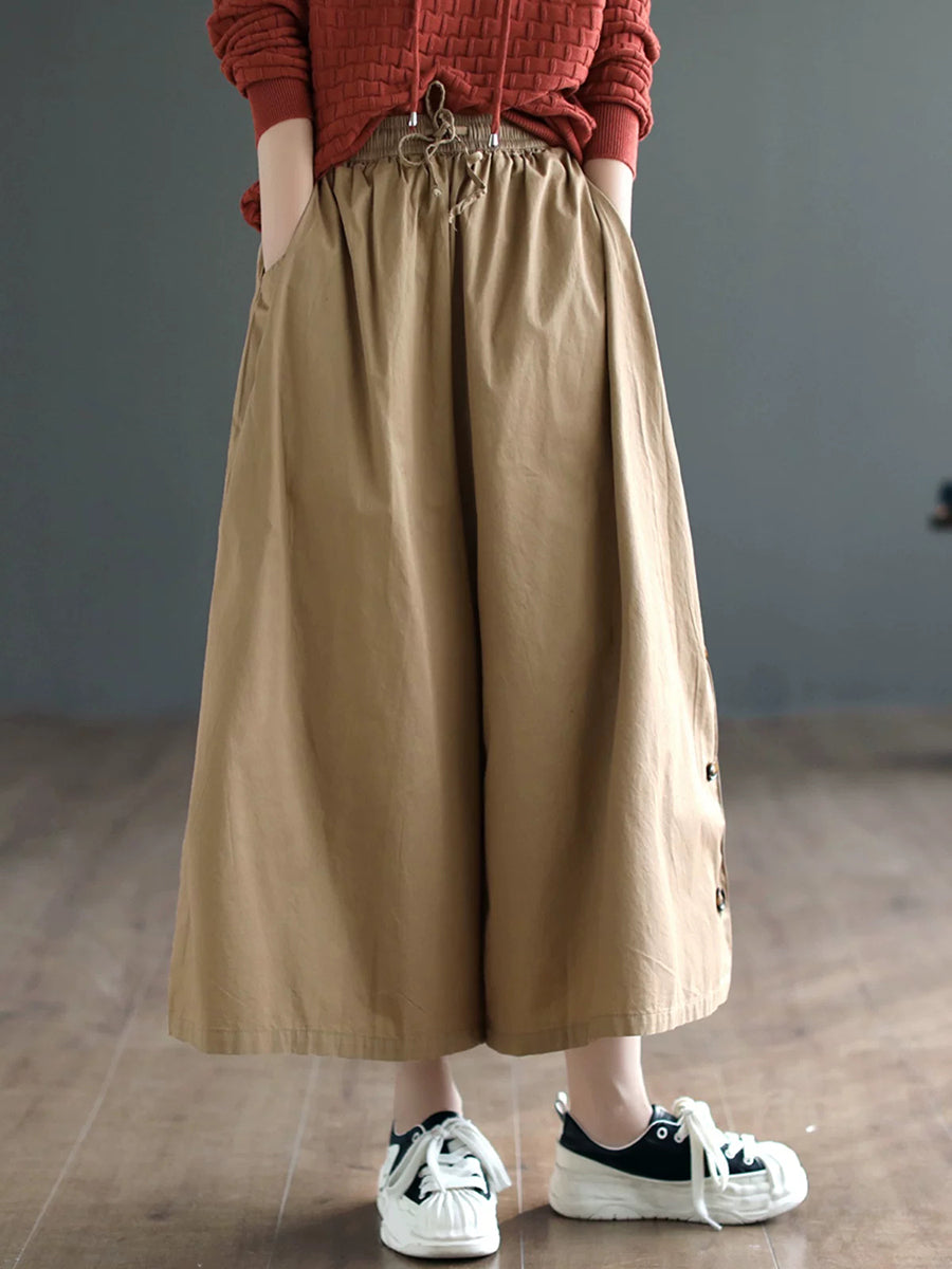 レディース サマー カジュアル ピュアカラー ワイドレッグパンツ