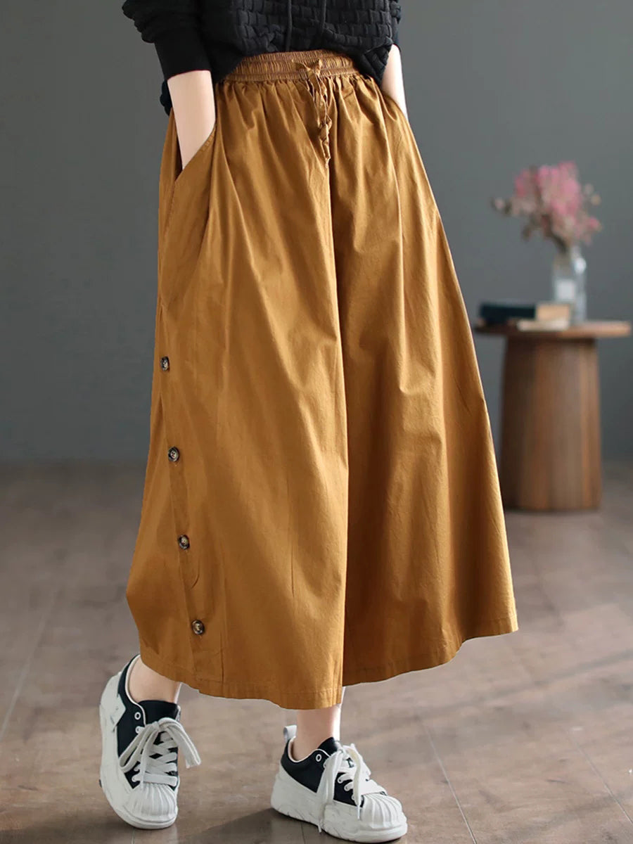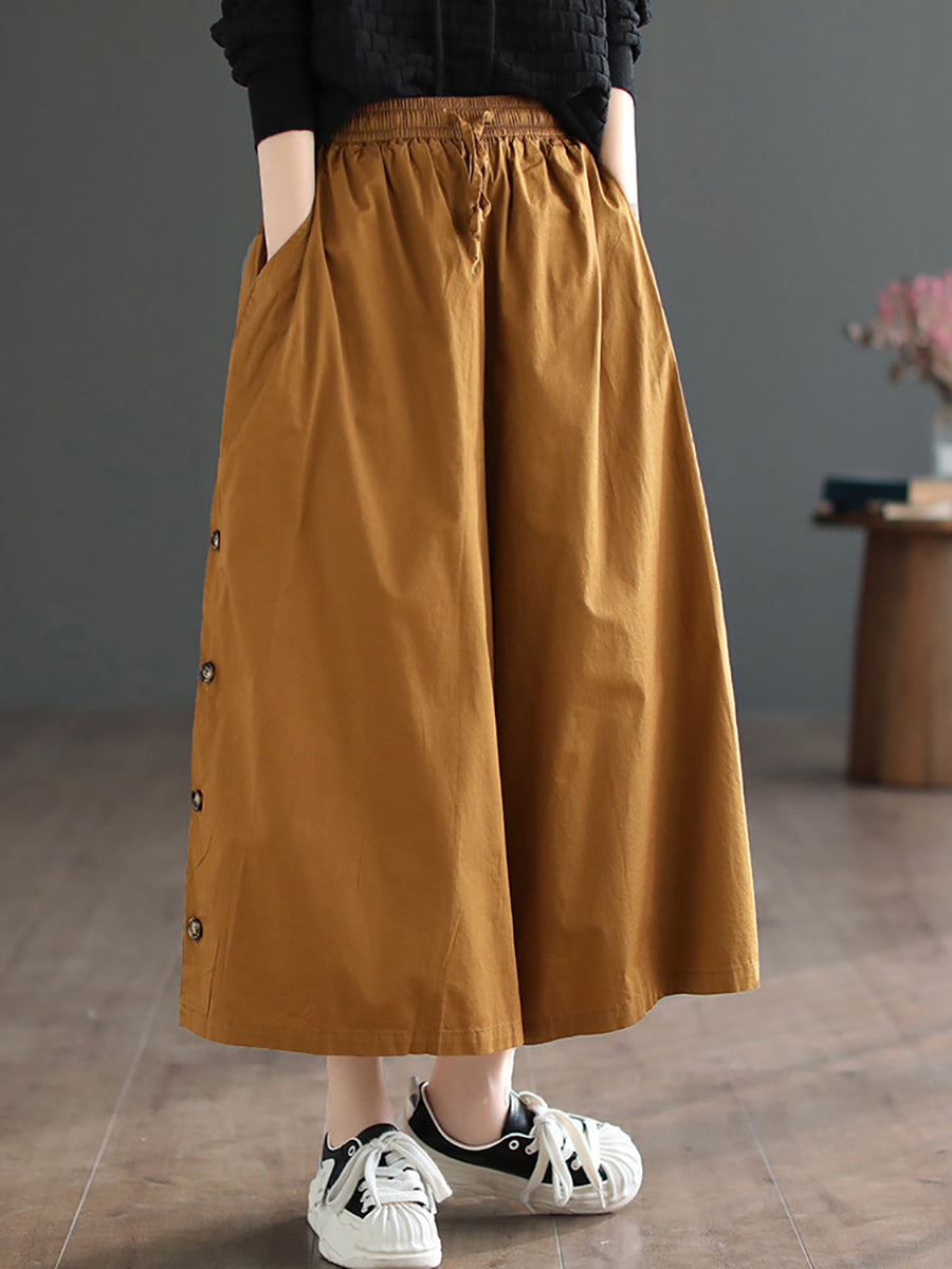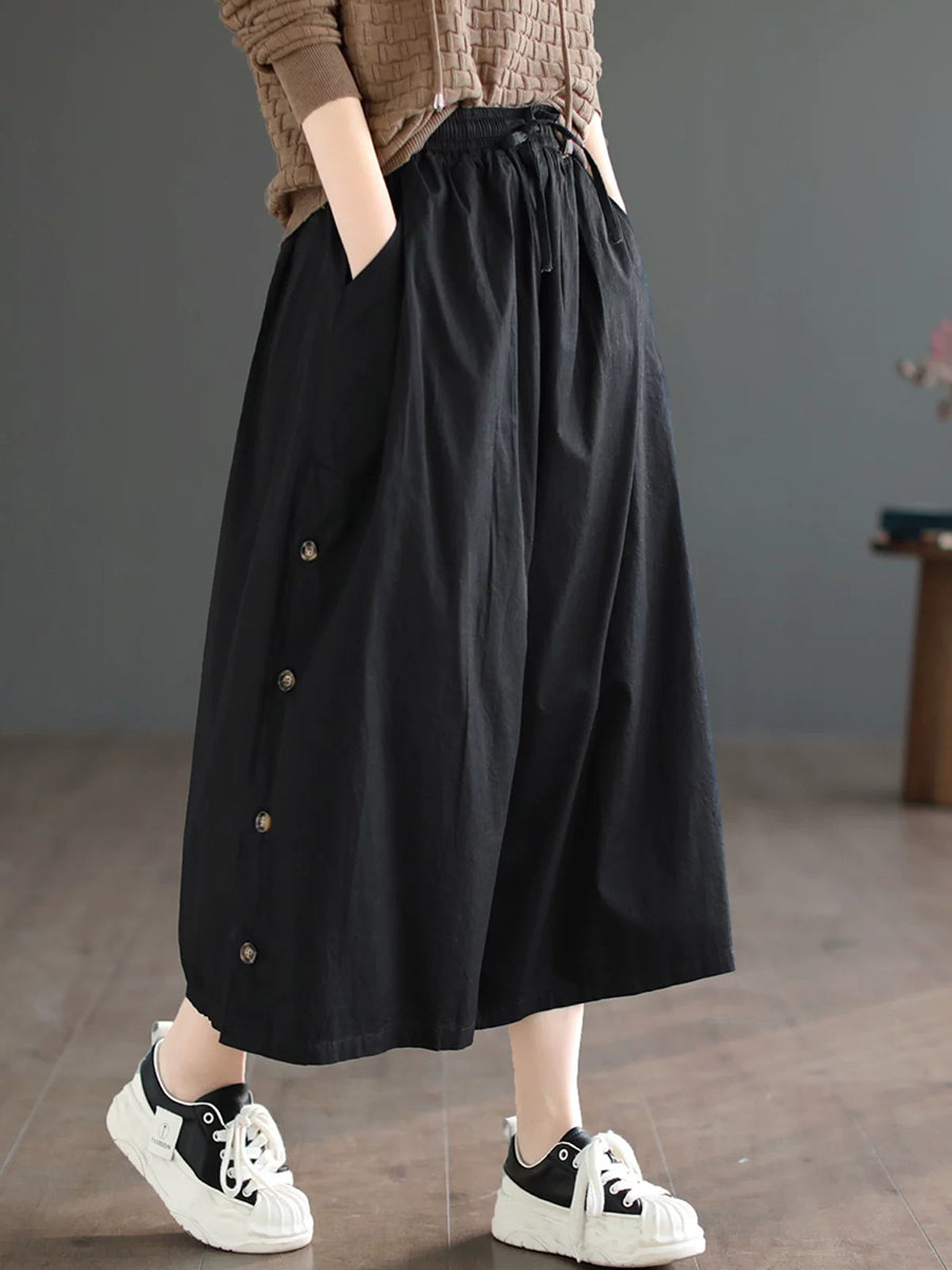 レディース サマー カジュアル ピュアカラー ワイドレッグパンツ