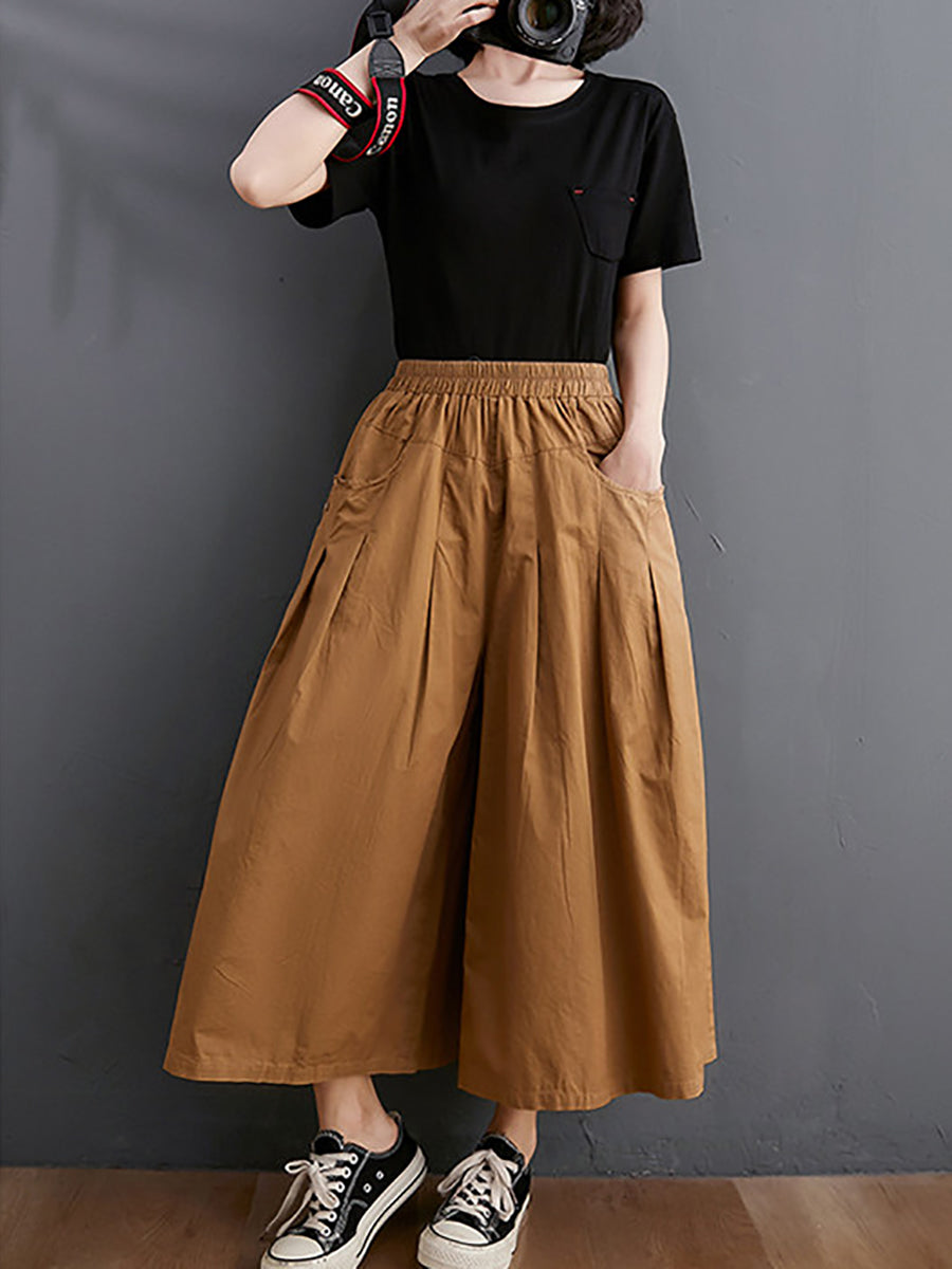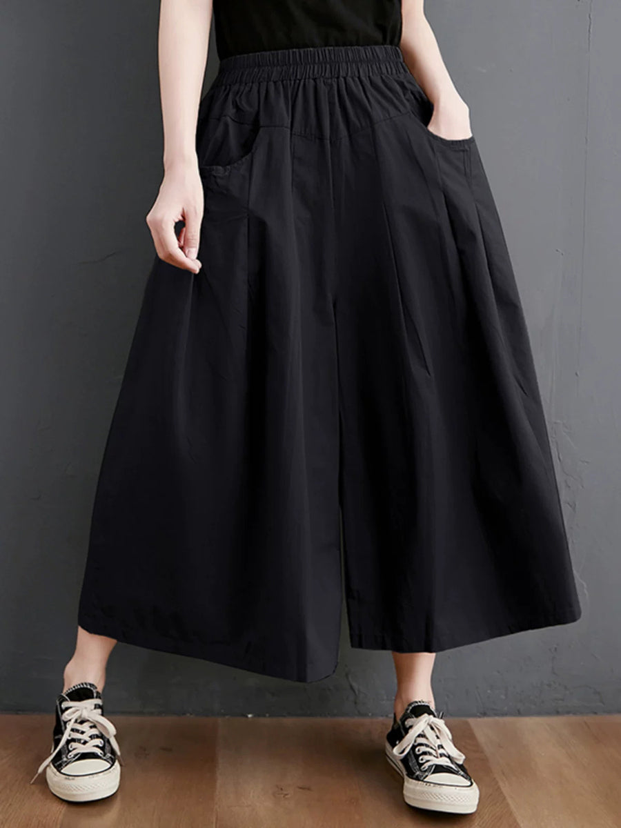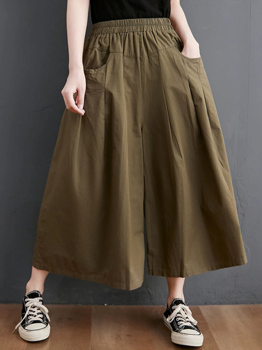 レディース サマー カジュアル ピュアカラー ワイドレッグパンツ