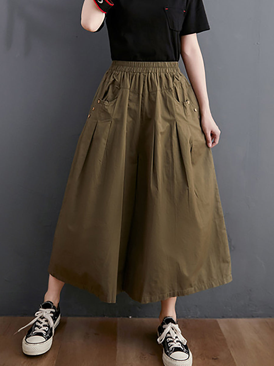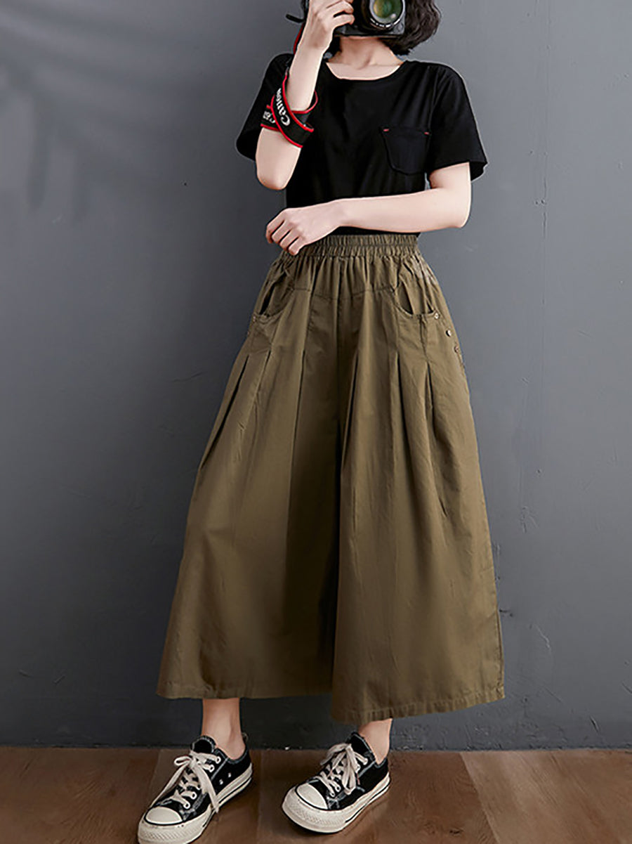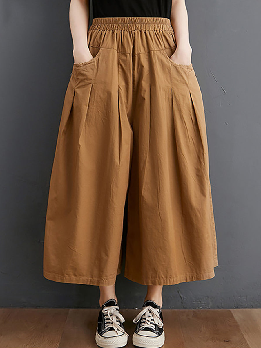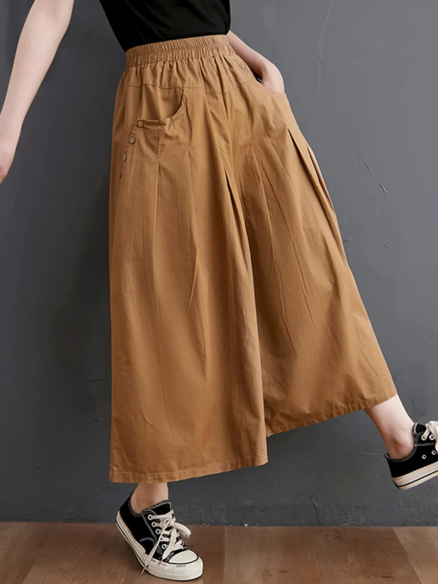 レディース サマー カジュアル ピュアカラー ワイドレッグパンツ