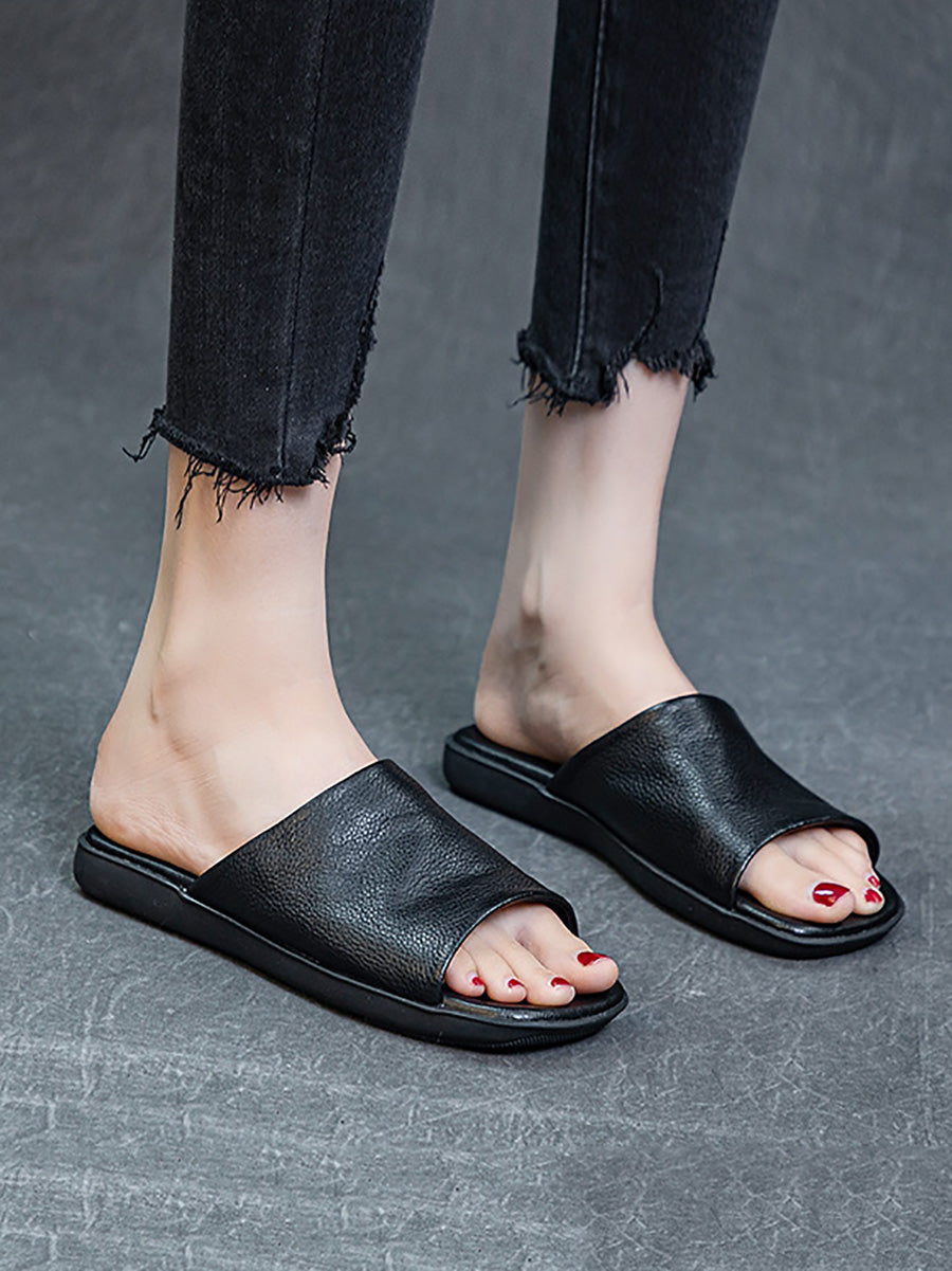 Women Summer Casual Solid Leather Flat Slippers