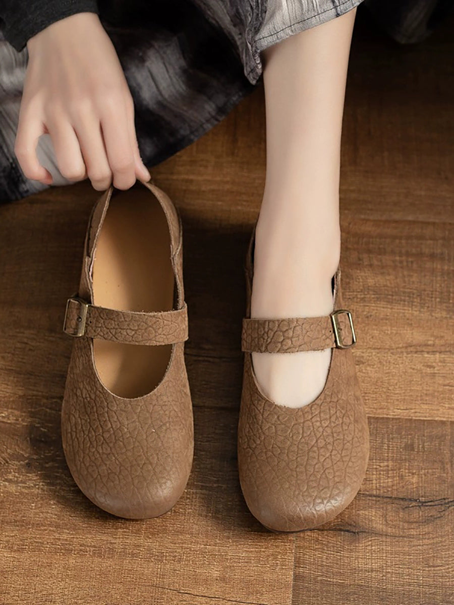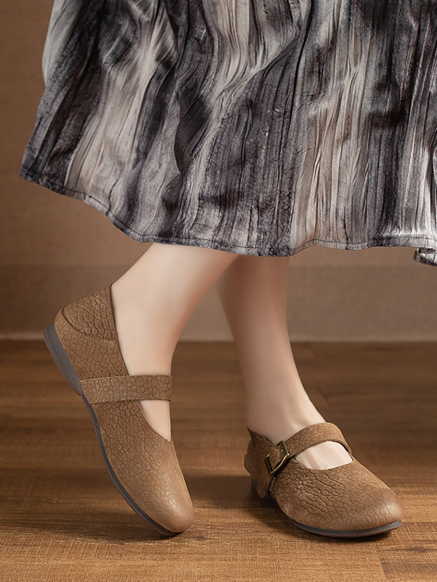 レディース 夏用 本革 ローヒール シューズ