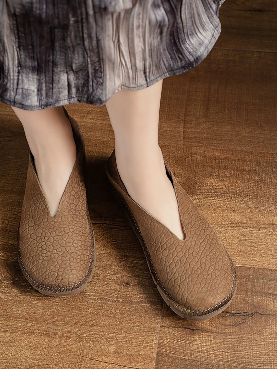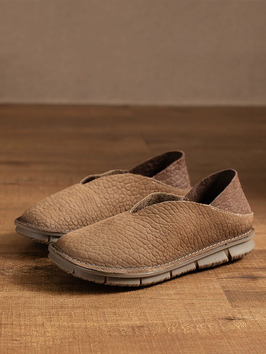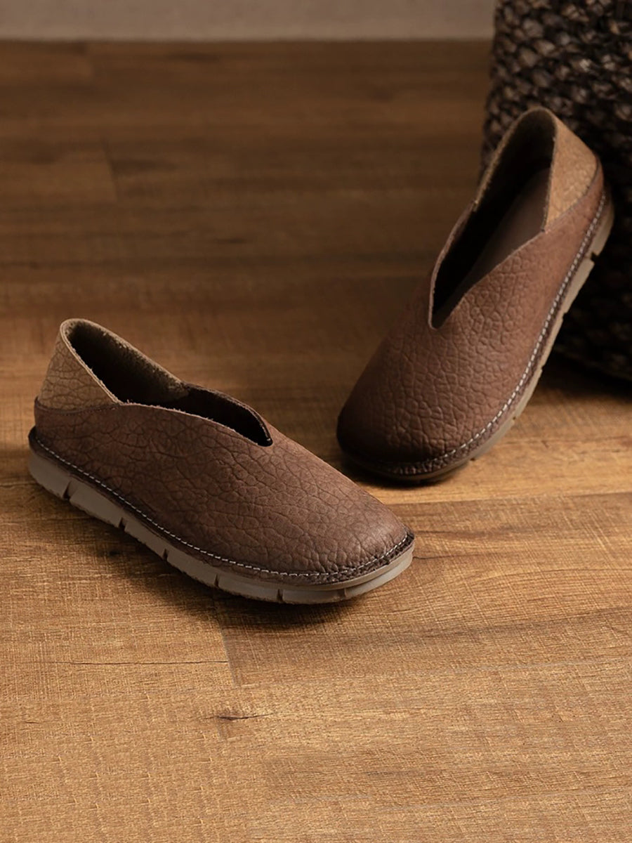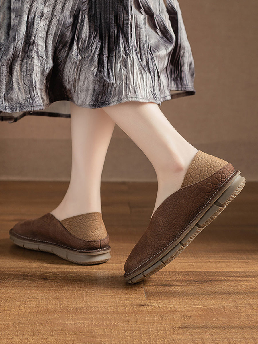 レディース 夏用 本革 スプライスフラットシューズ