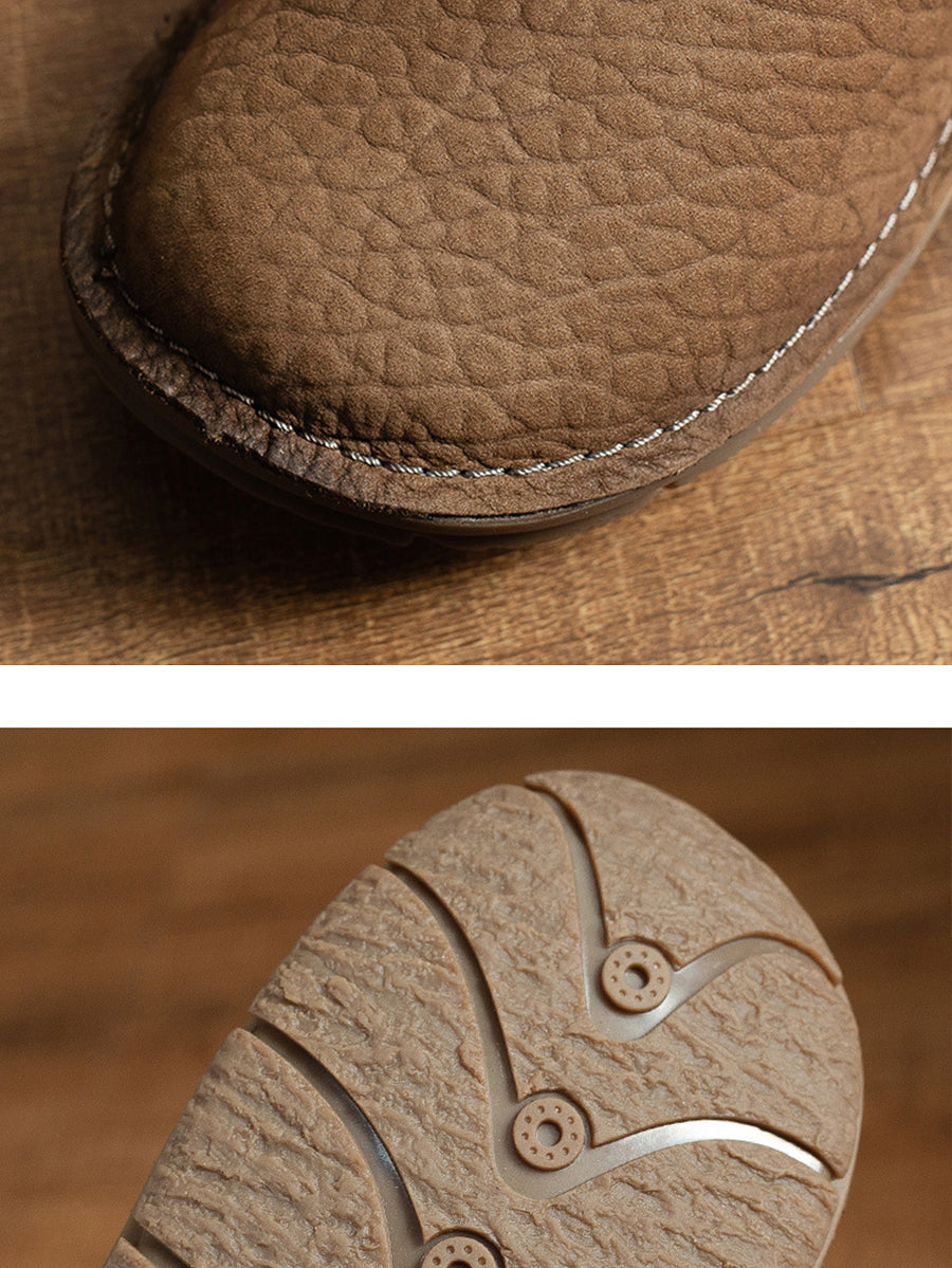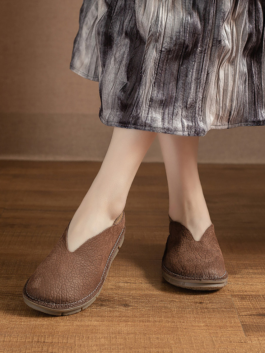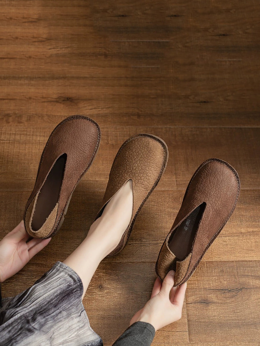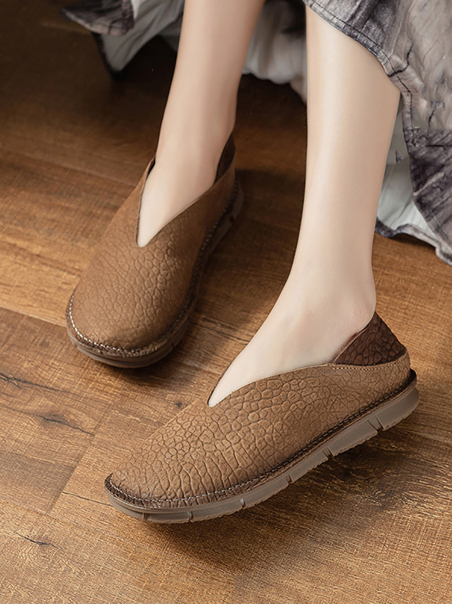 レディース 夏用 本革 スプライスフラットシューズ