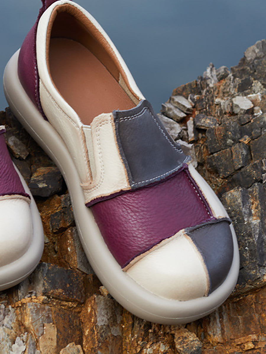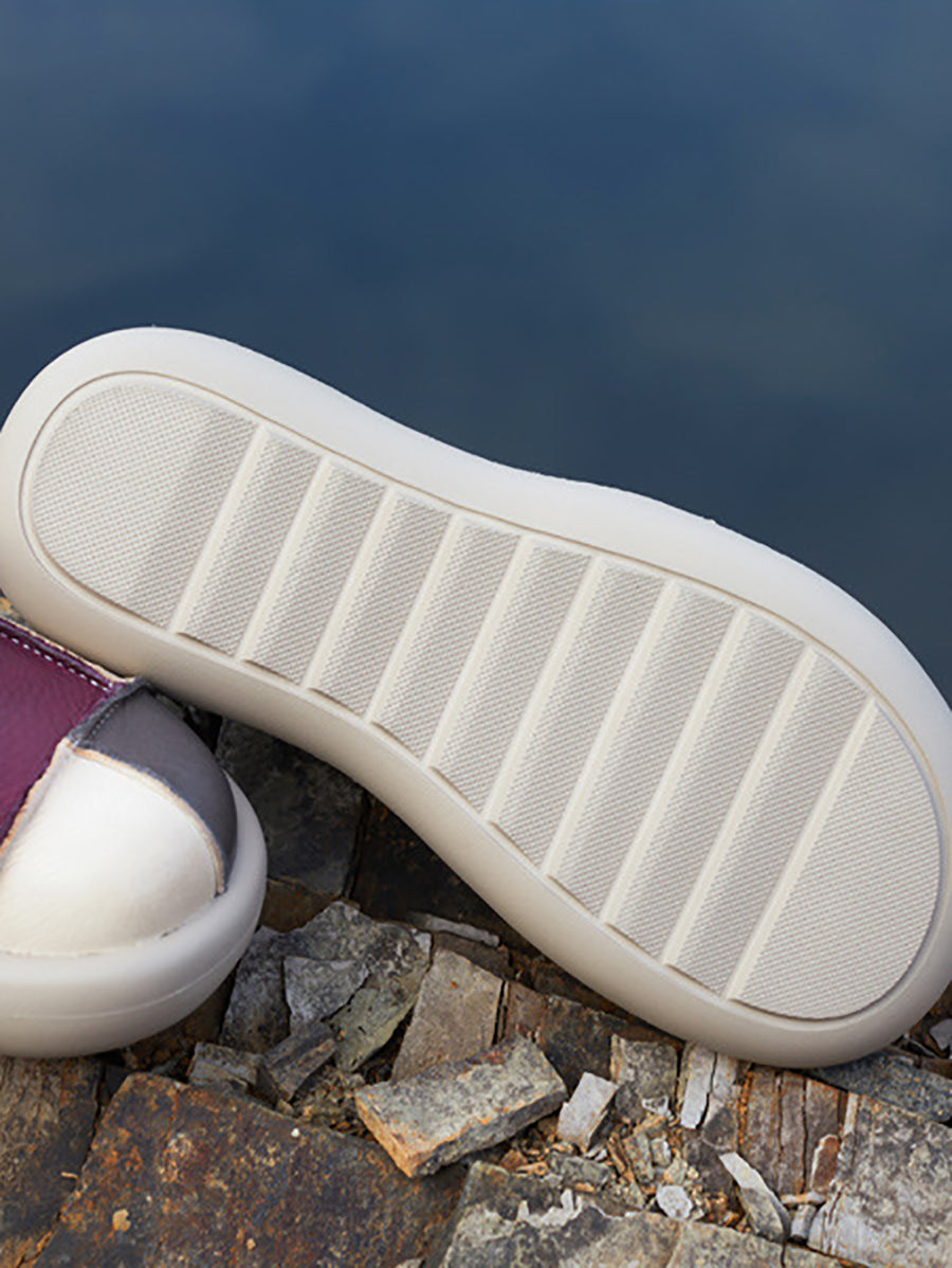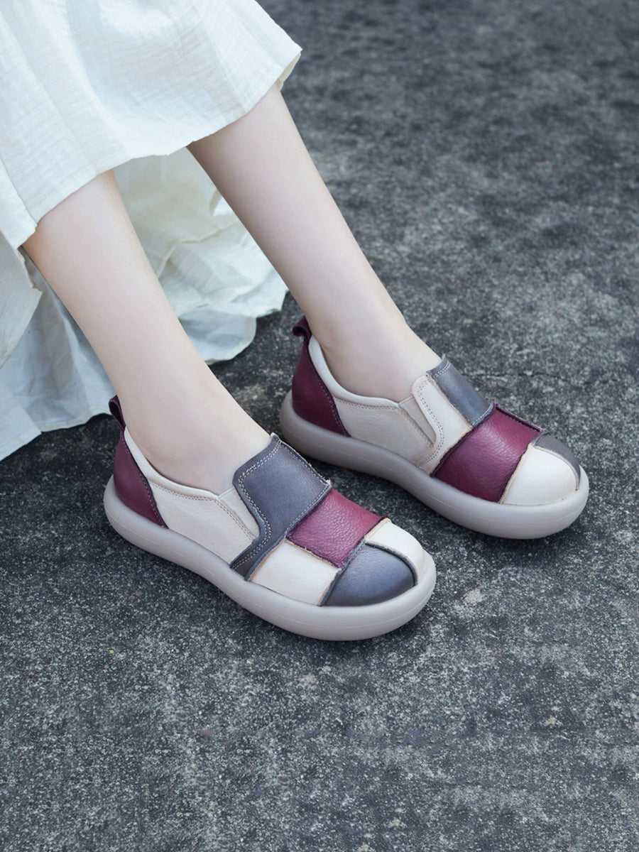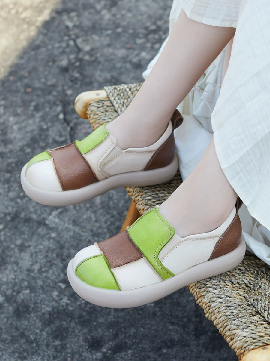 レディース 夏用 レザー パッチワーク フラットシューズ