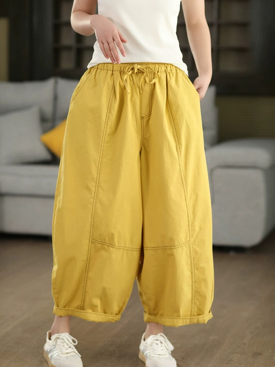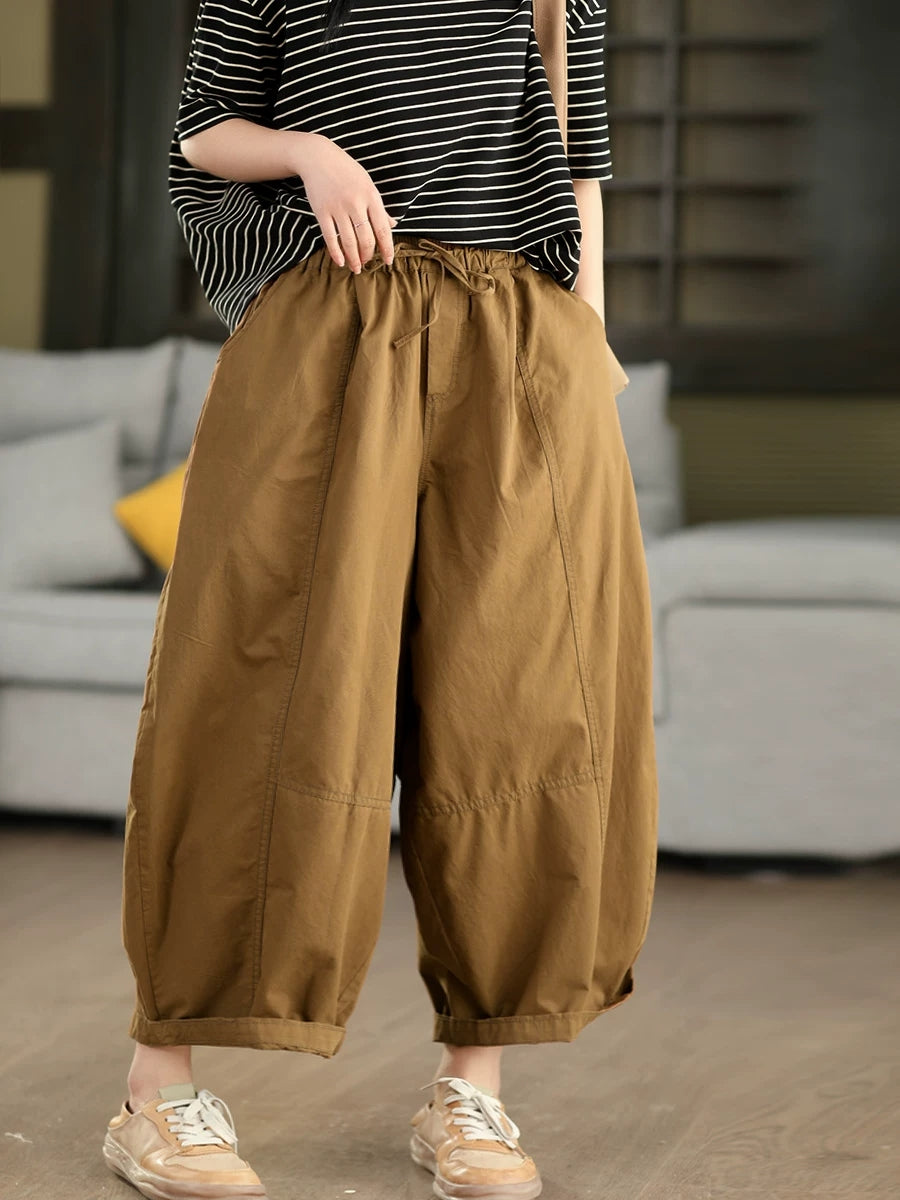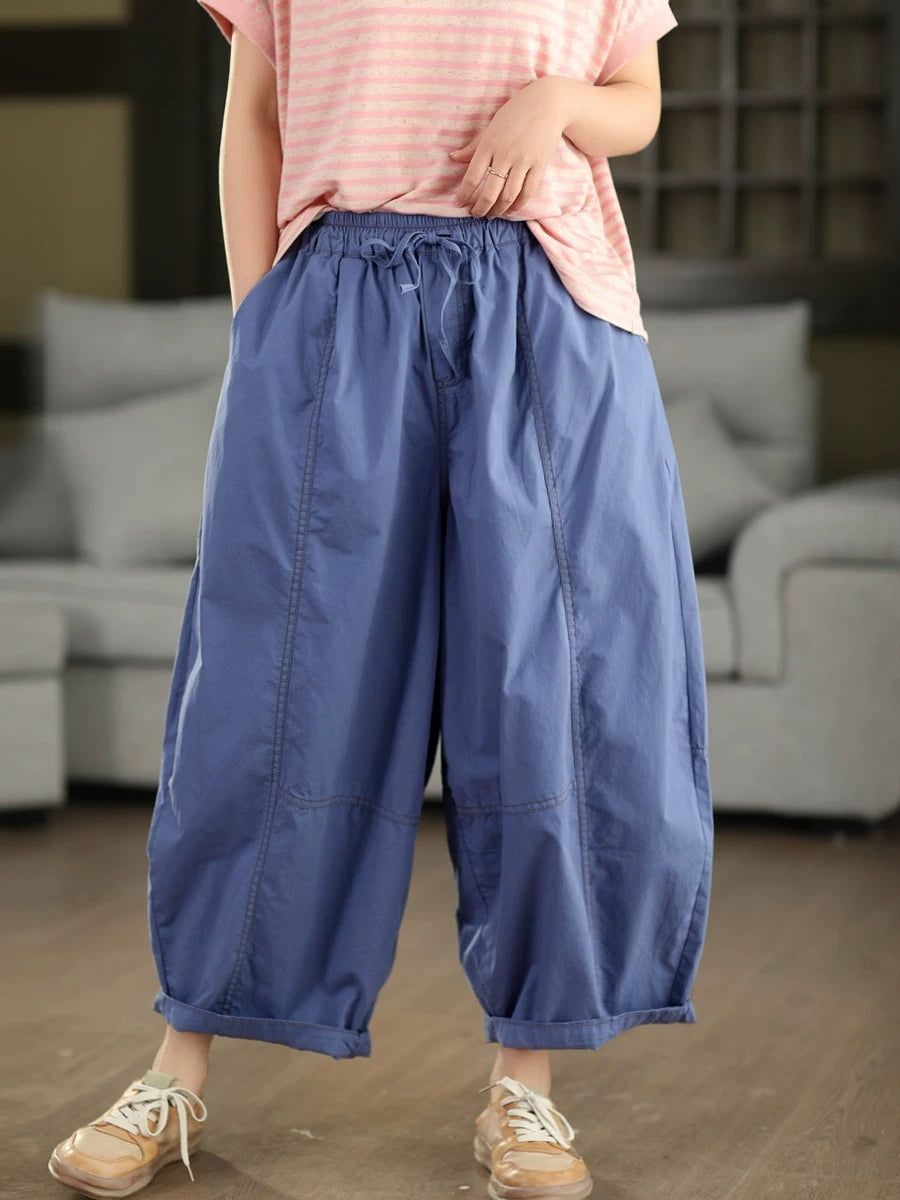 レディース 夏用 無地 100%コットン ハーレムパンツ