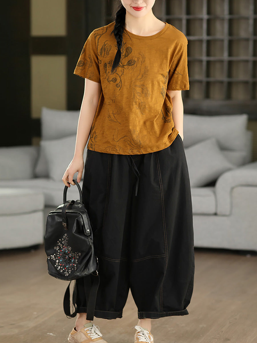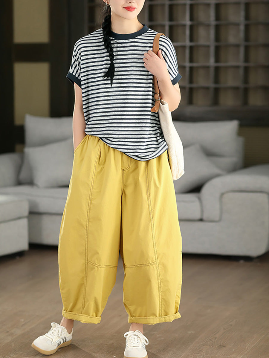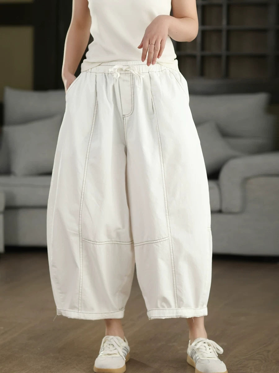 レディース 夏用 無地 100%コットン ハーレムパンツ