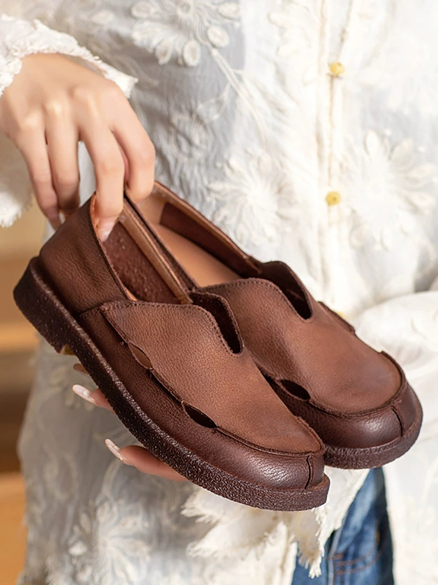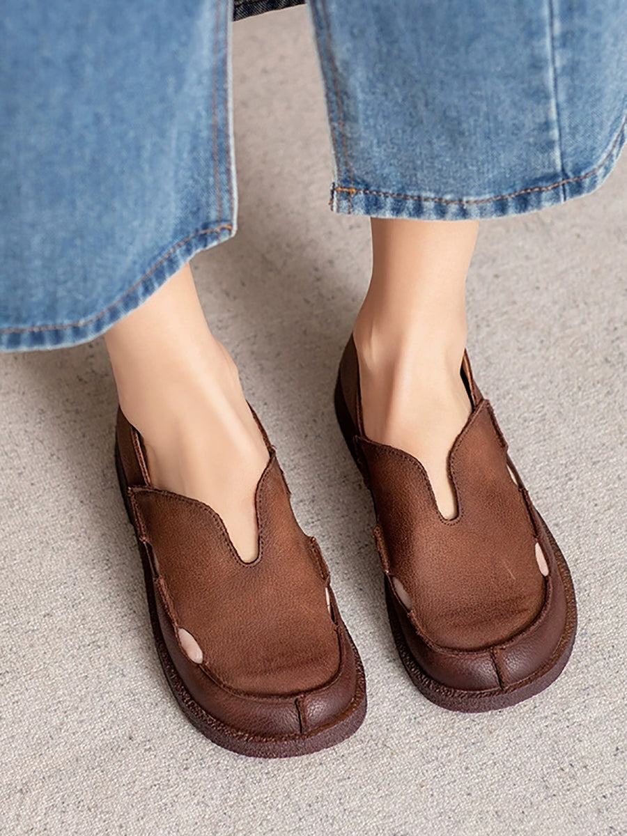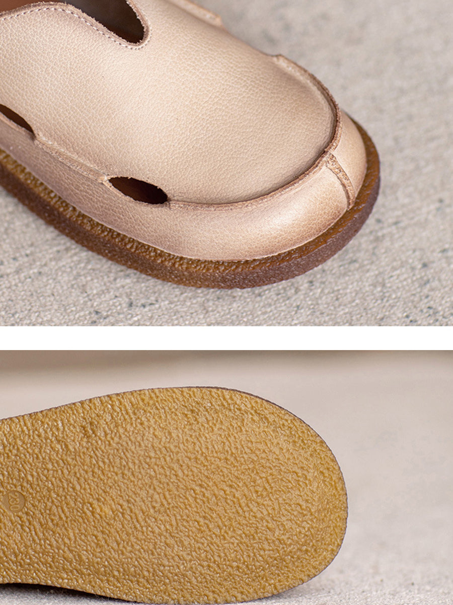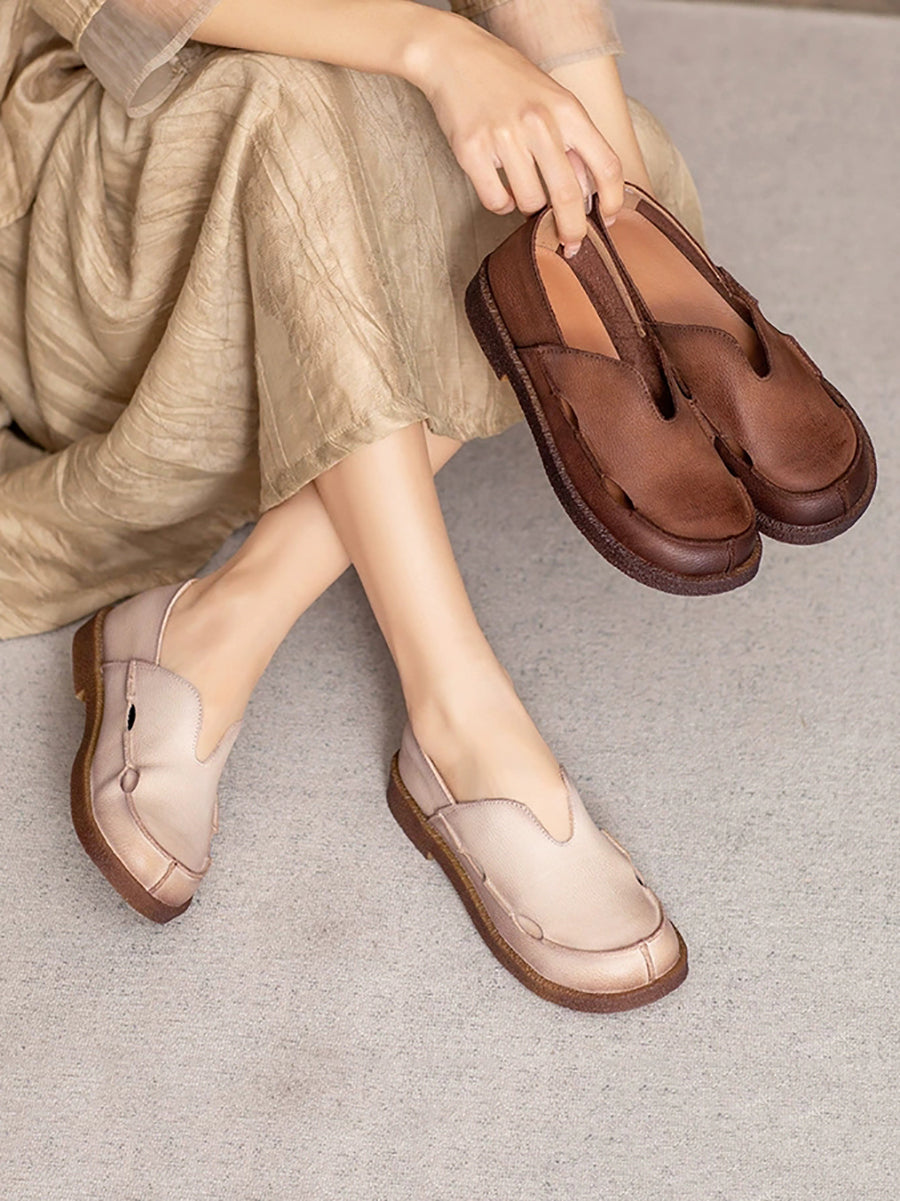 レディース サマー ピュアカラー 本革 フラットシューズ
