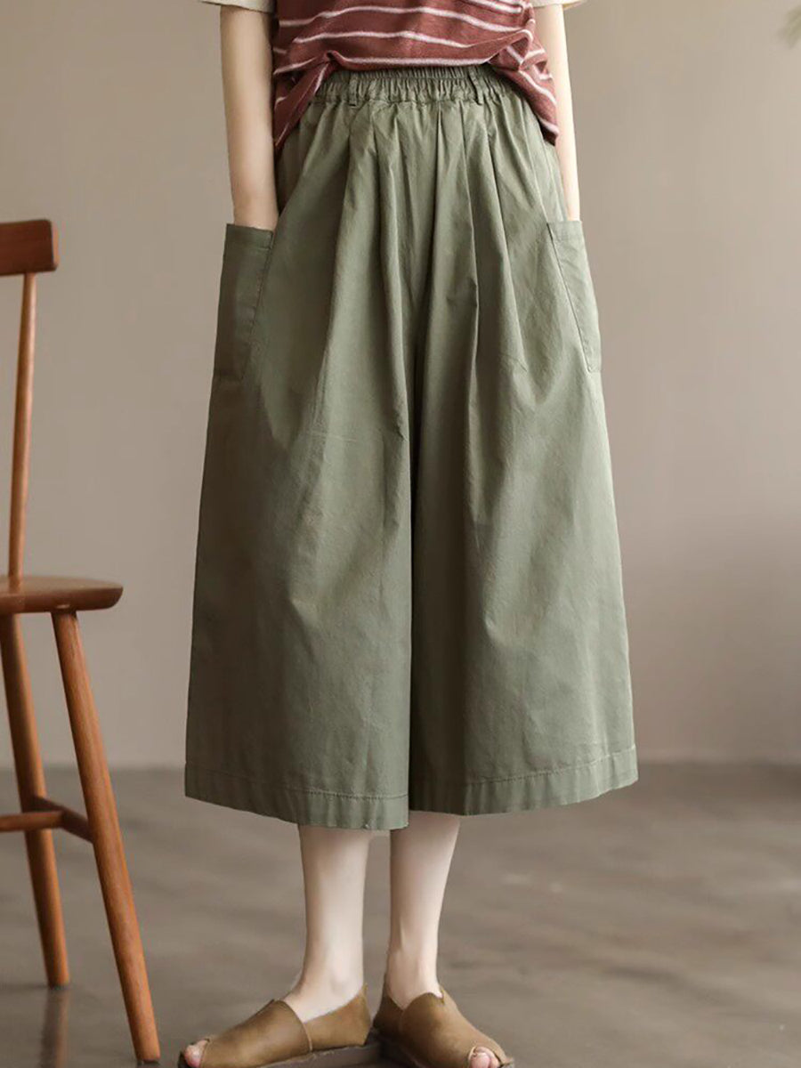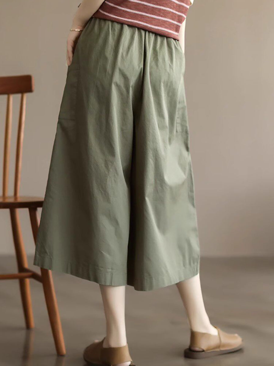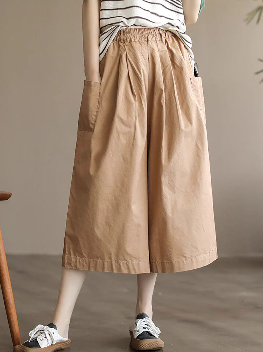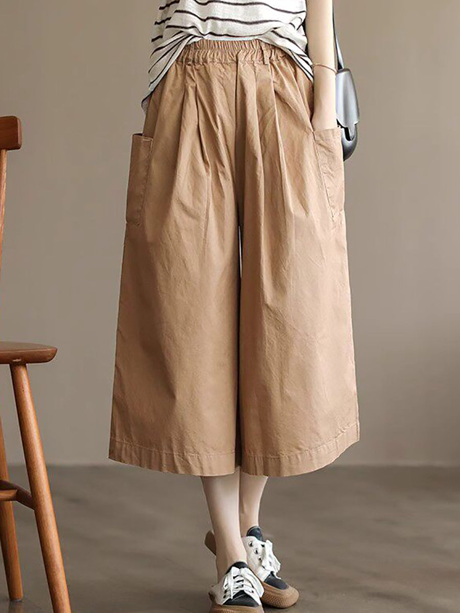 レディース 夏用 無地 ワイドレッグ カプリパンツ