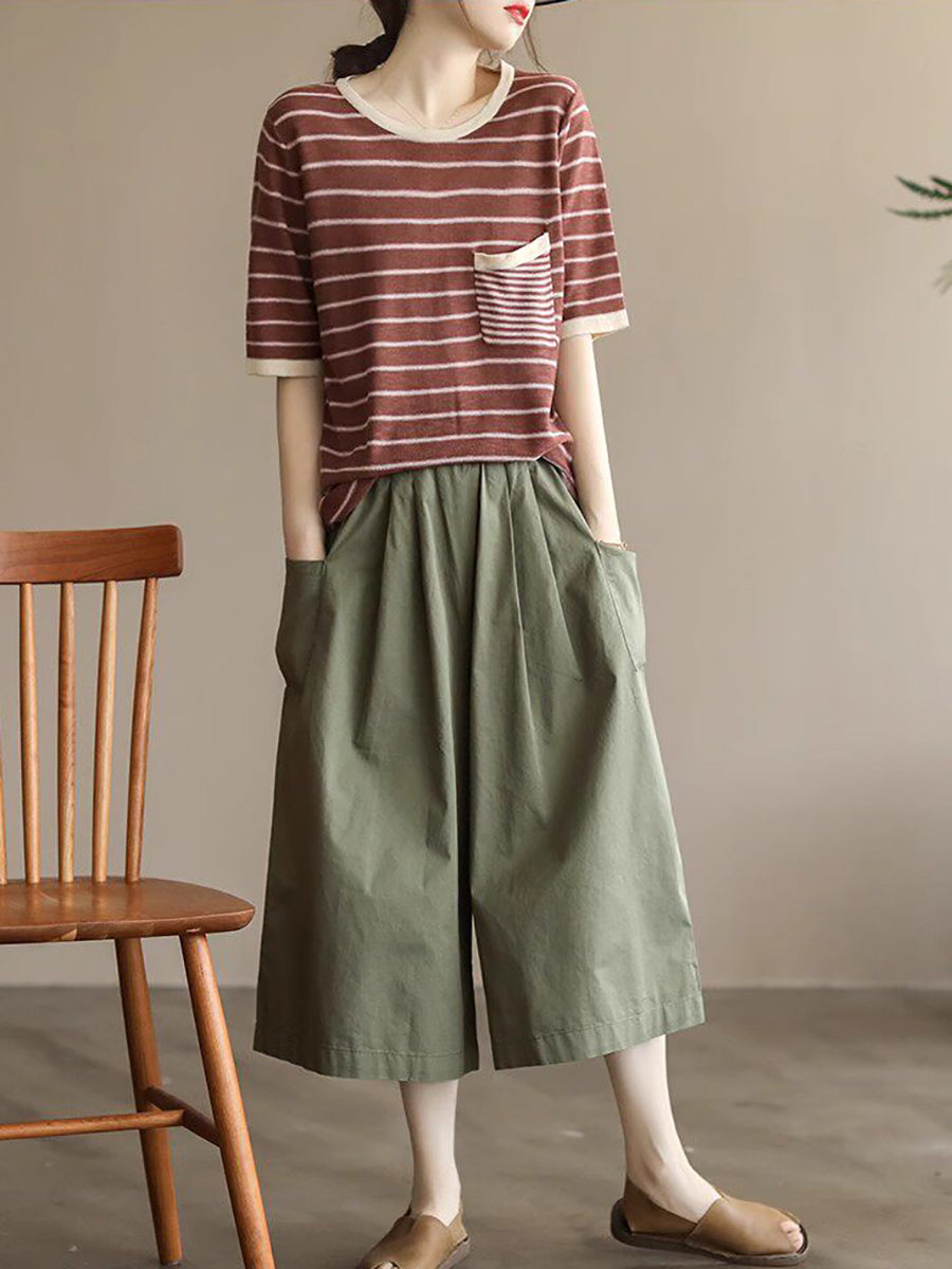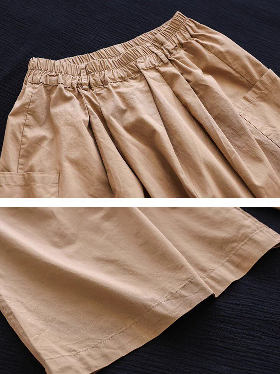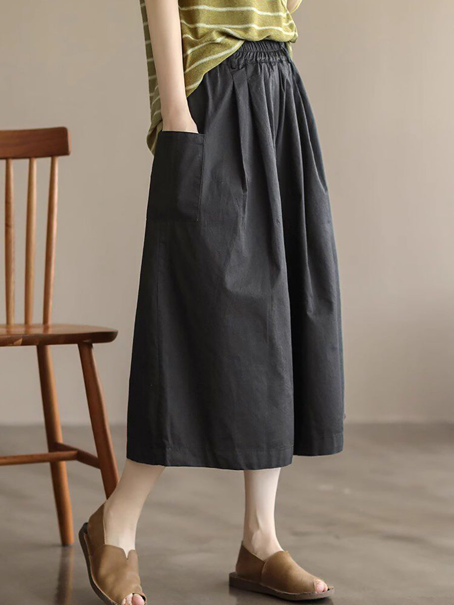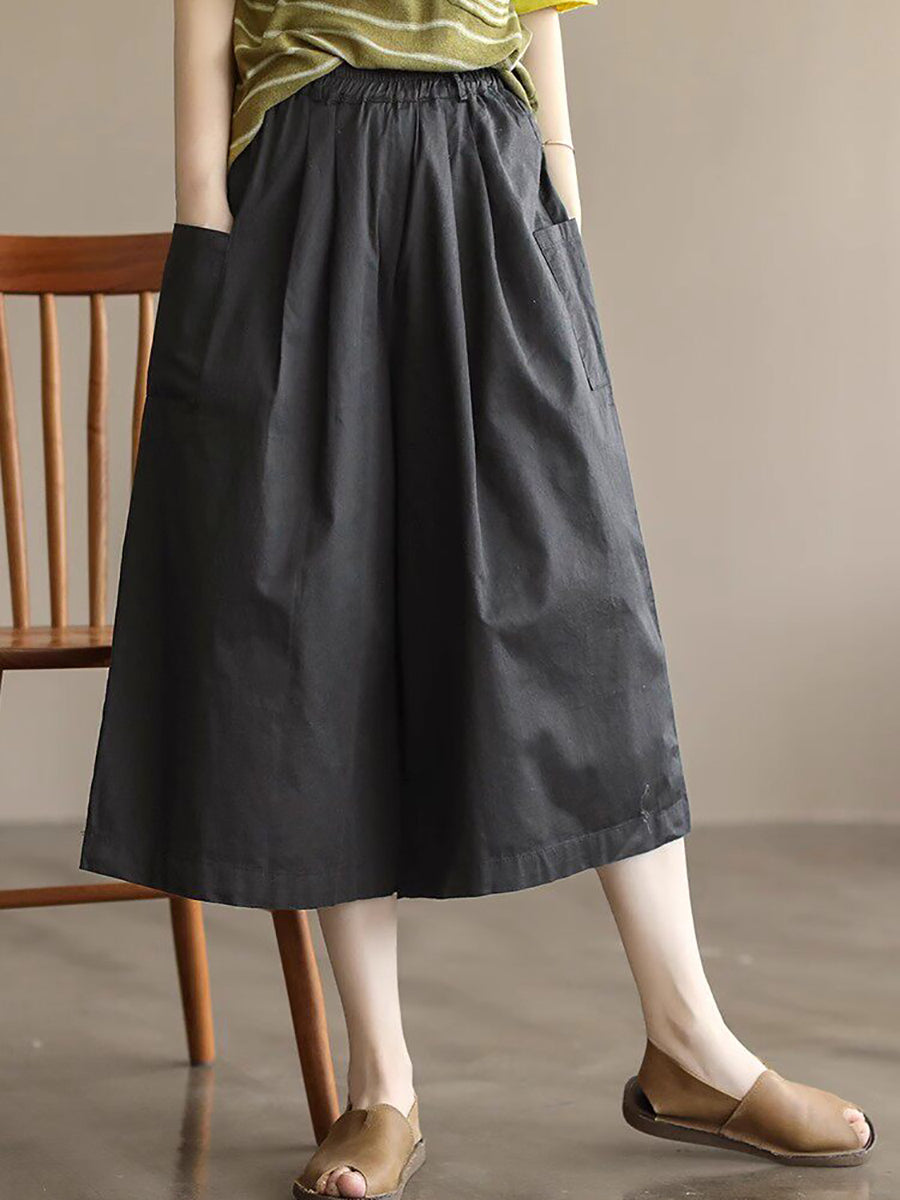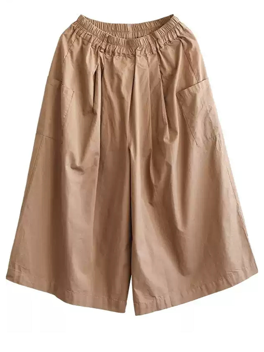 レディース 夏用 無地 ワイドレッグ カプリパンツ