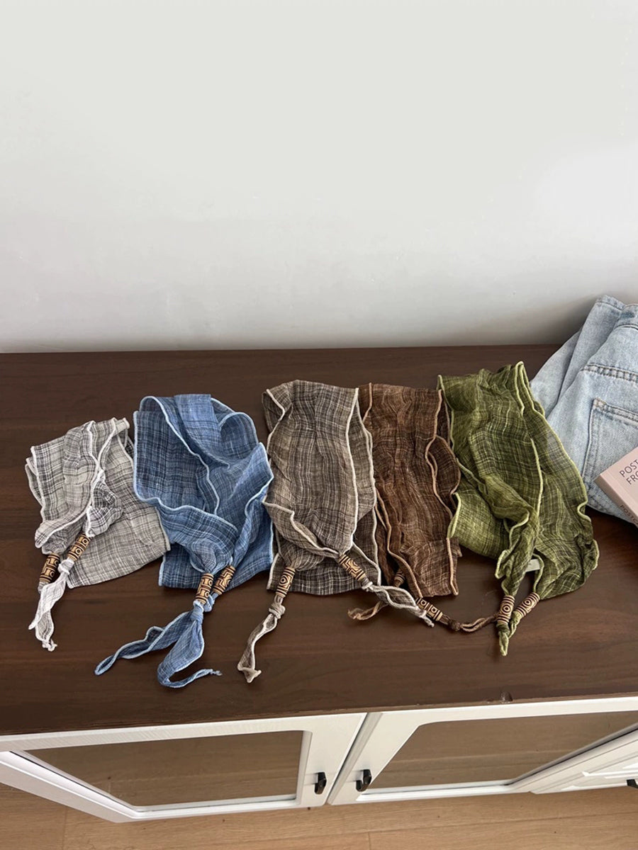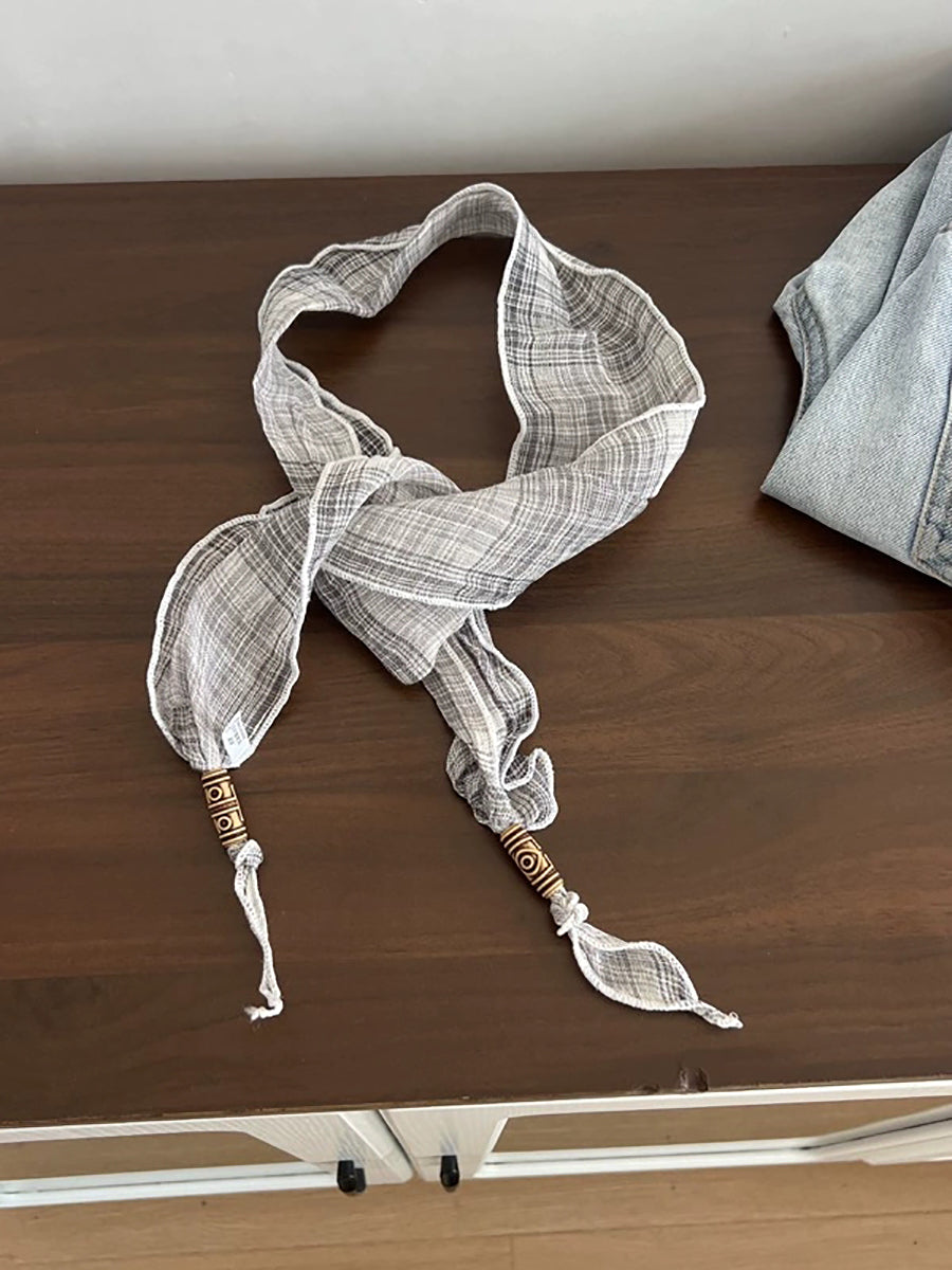レディース 夏 レトロ チェック柄 ヘアバンド スカーフ