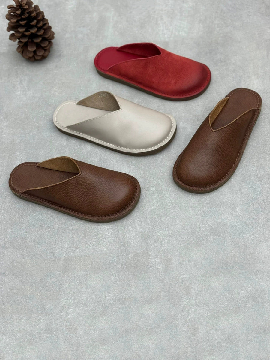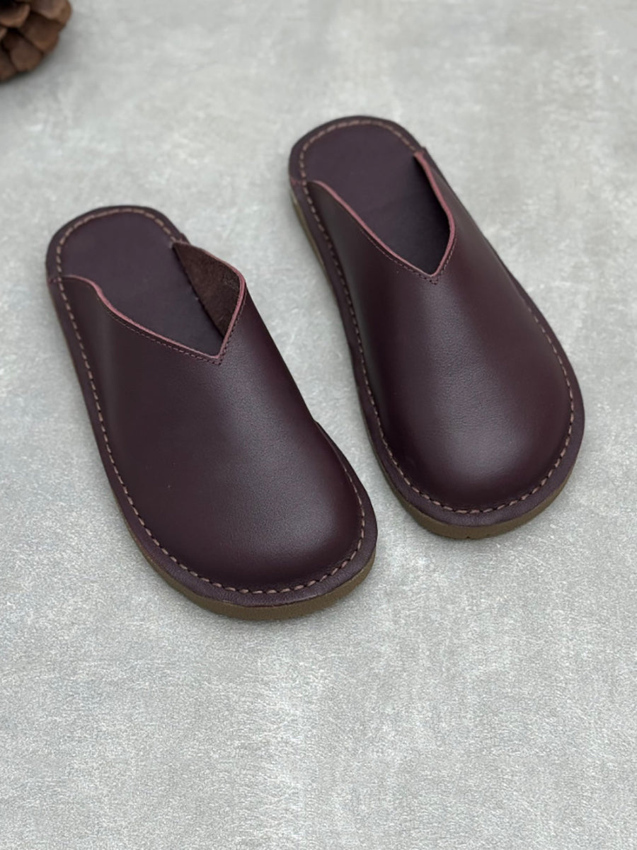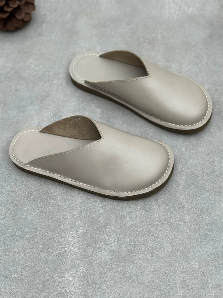 レディース 夏用 ソフト本革 フラットスリッパ