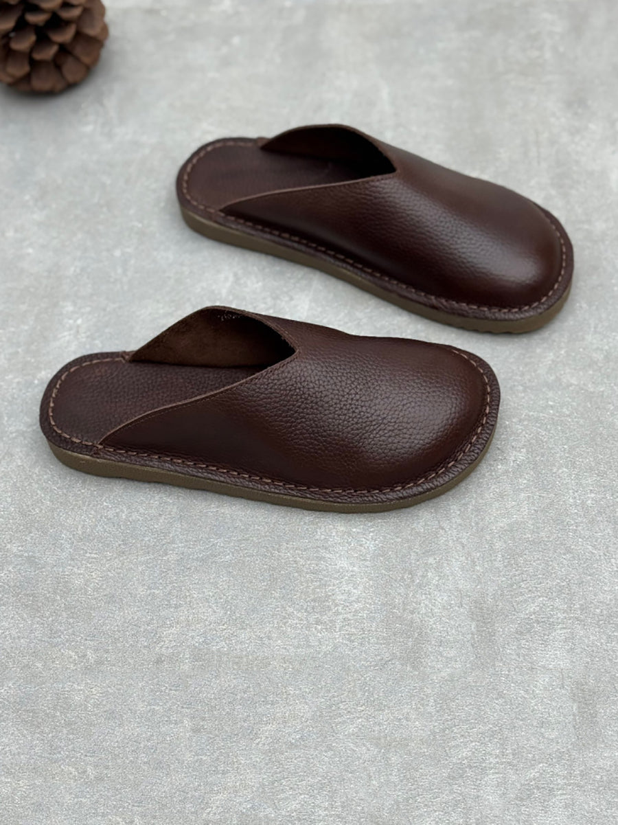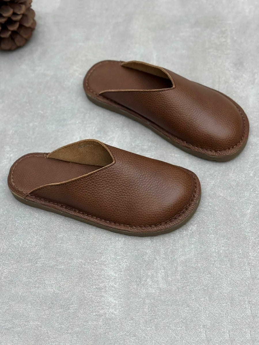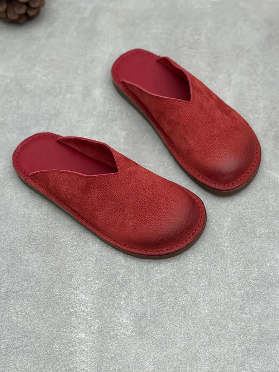 レディース 夏用 ソフト本革 フラットスリッパ