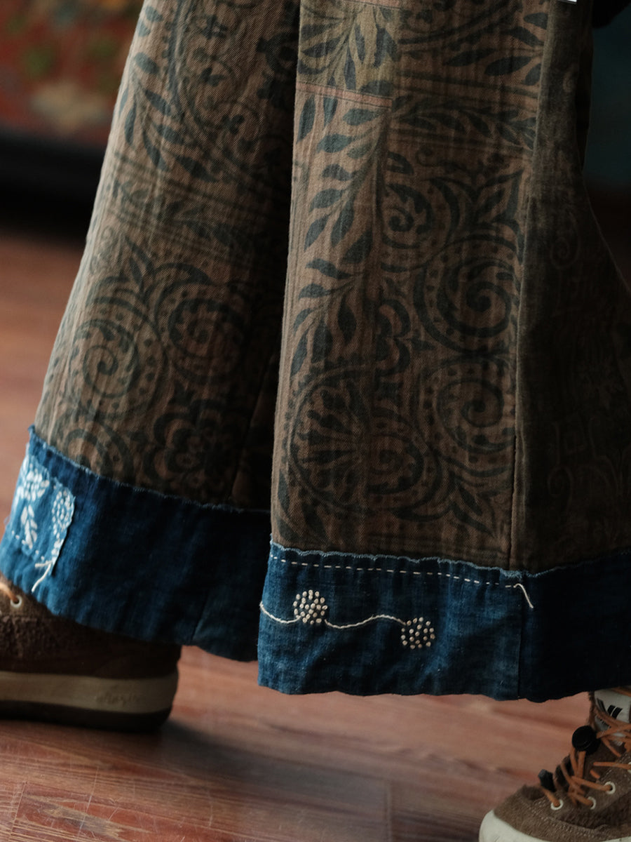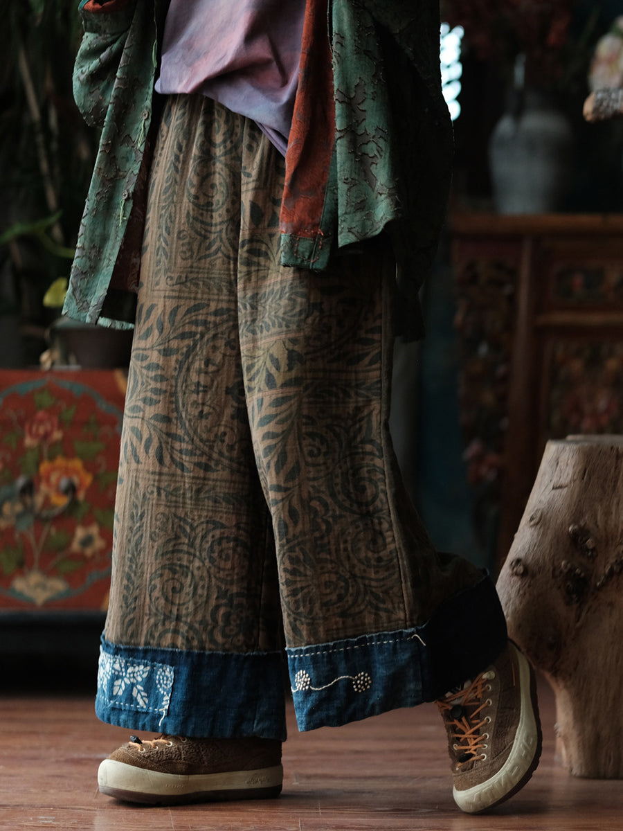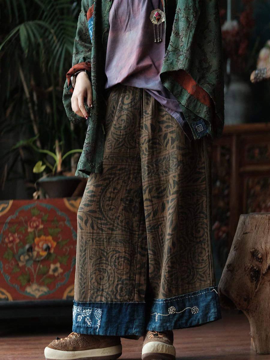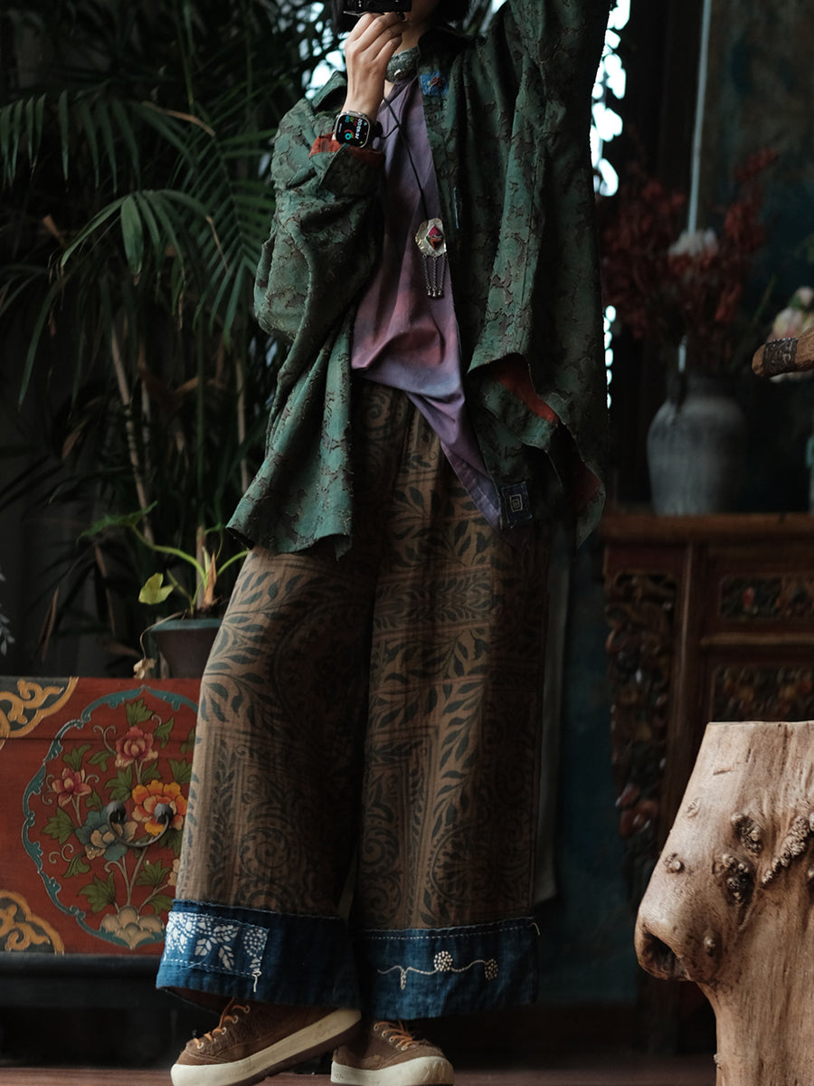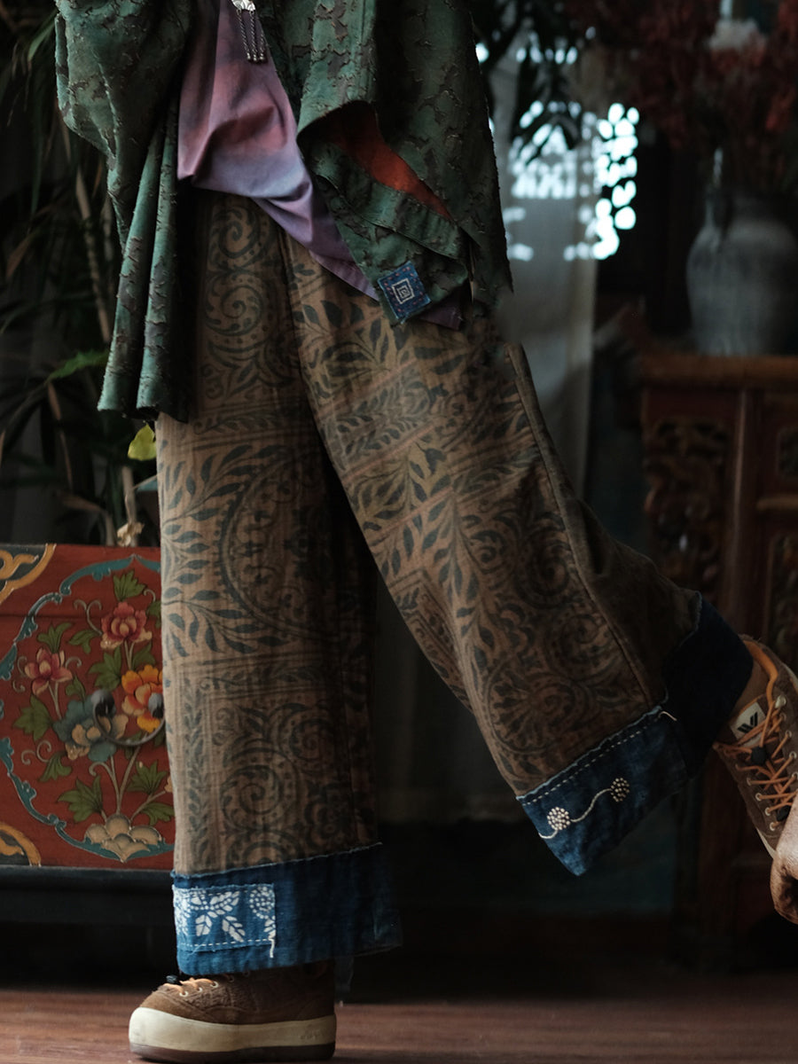 レディース 夏物 ヴィンテージ デニム スプライス ワイドレッグパンツ