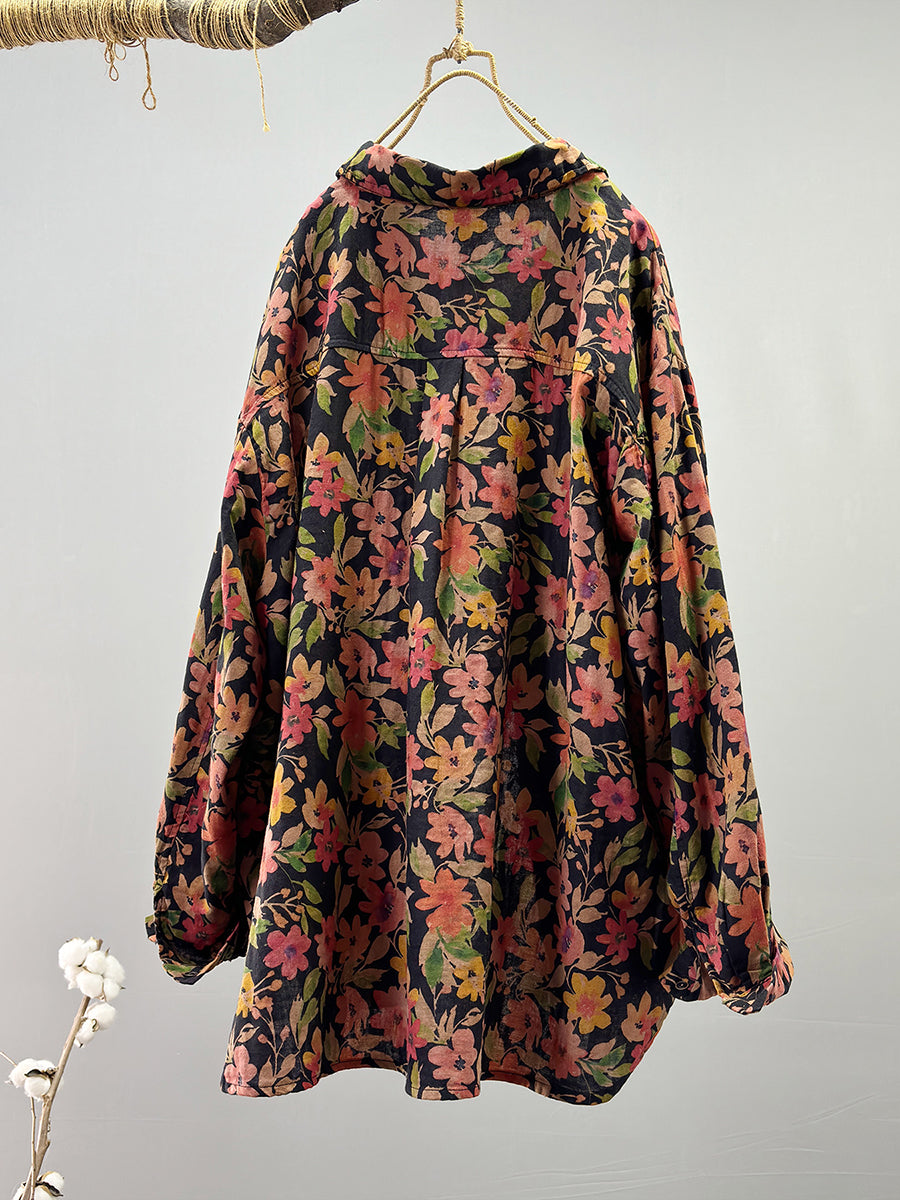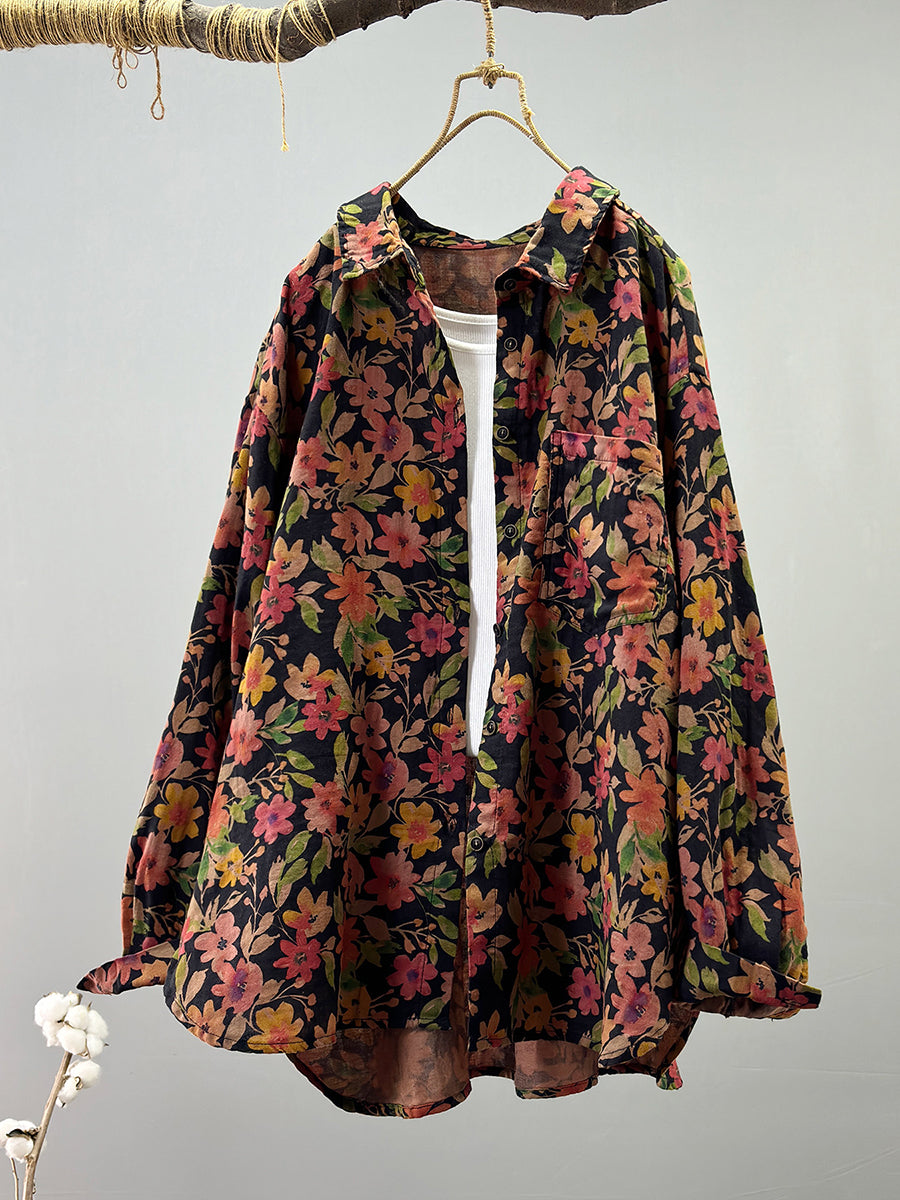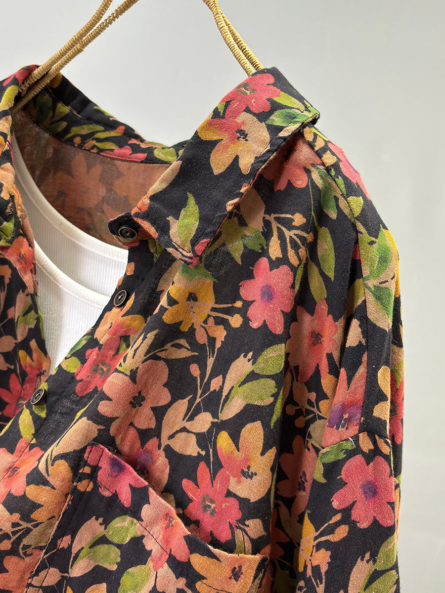 レディース サマー ヴィンテージフラワー 100%コットンシャツ