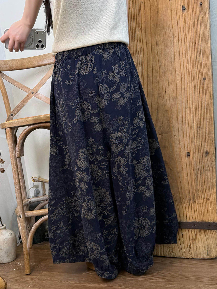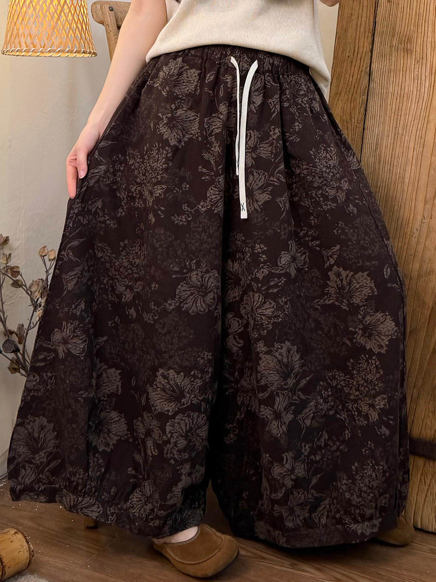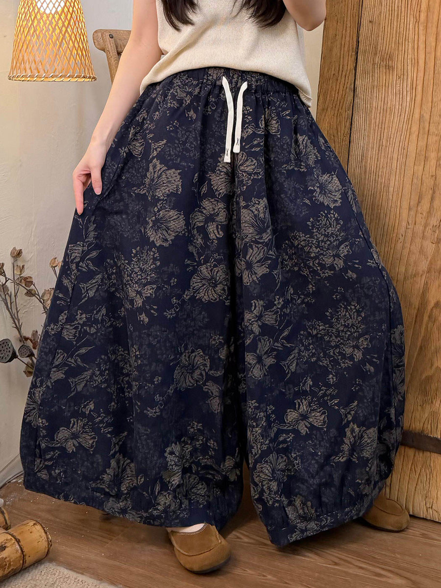 レディース 夏用 ヴィンテージ 花柄 ワイドレッグパンツ