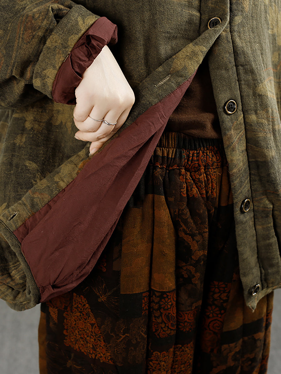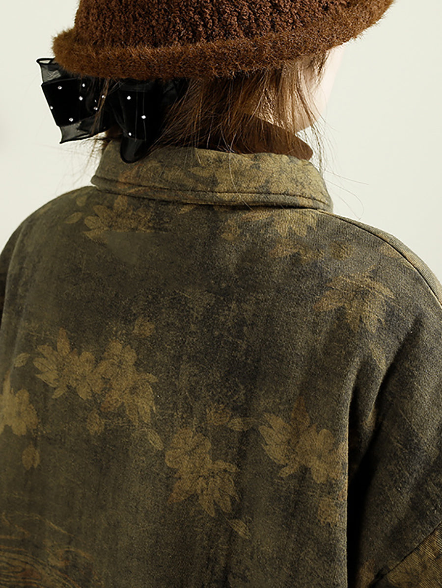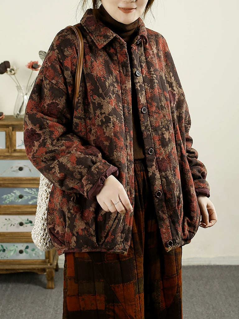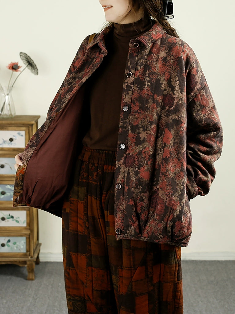 レディース ヴィンテージフラワー ターンダウンカラー 100%コットン パッド入りコート