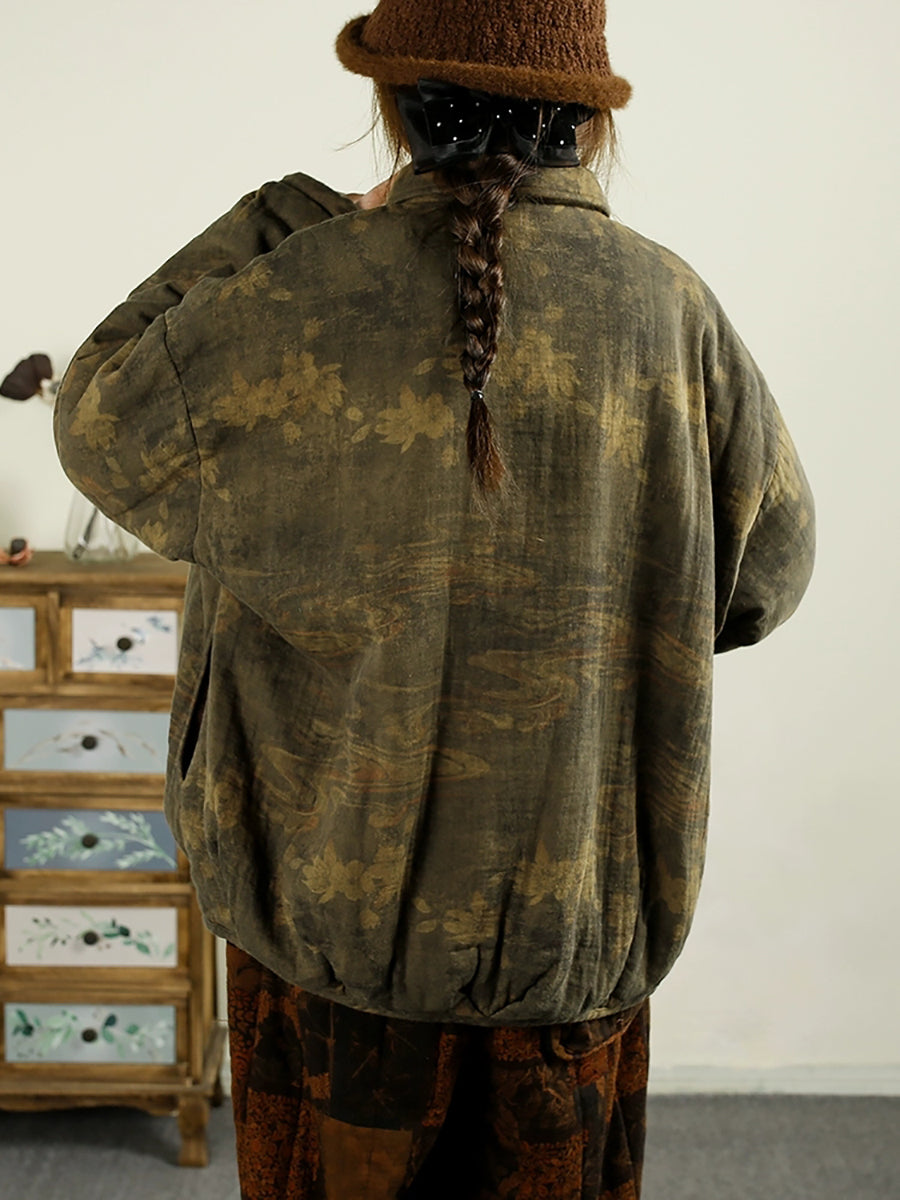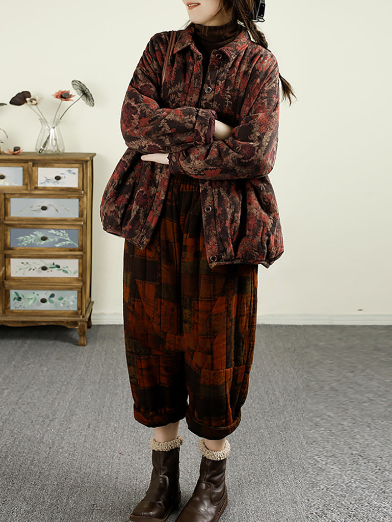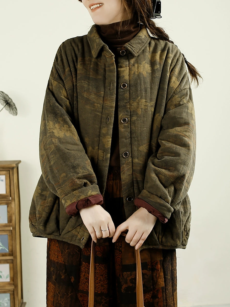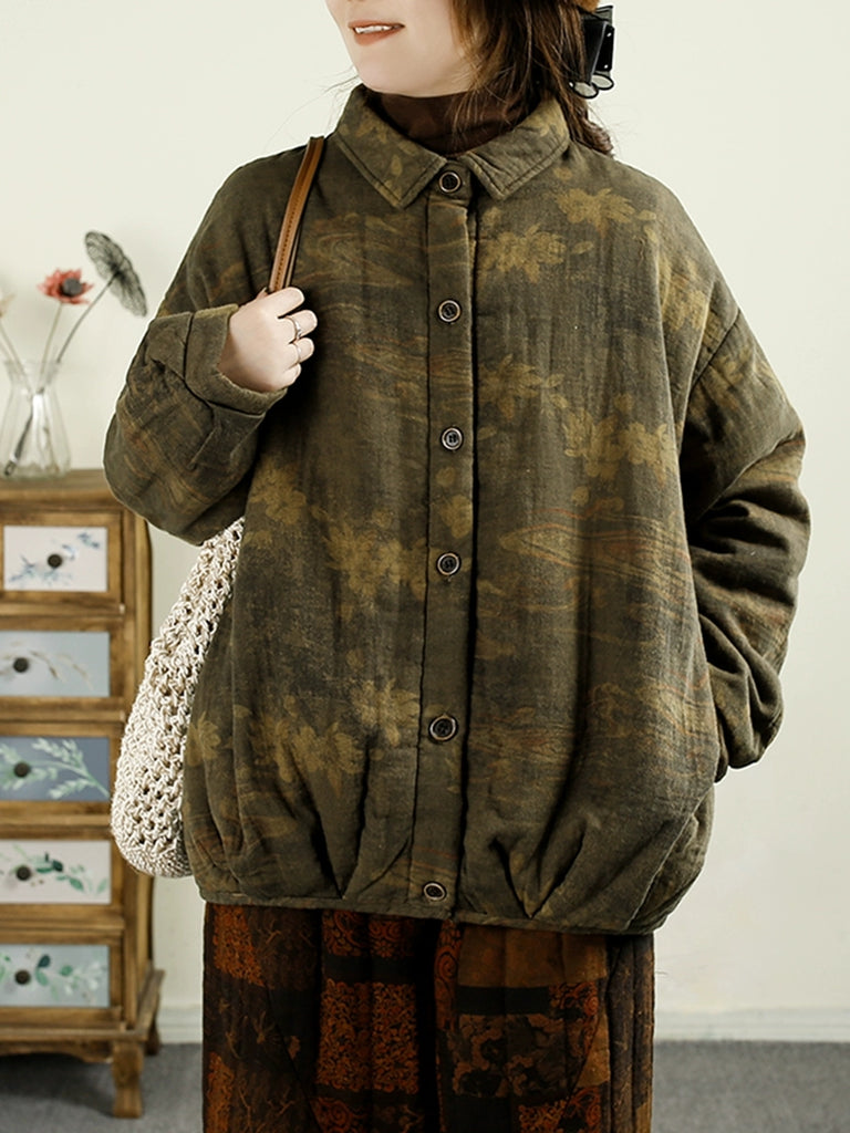 レディース ヴィンテージフラワー ターンダウンカラー 100%コットン パッド入りコート