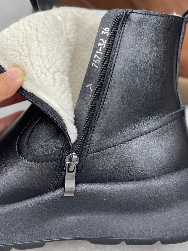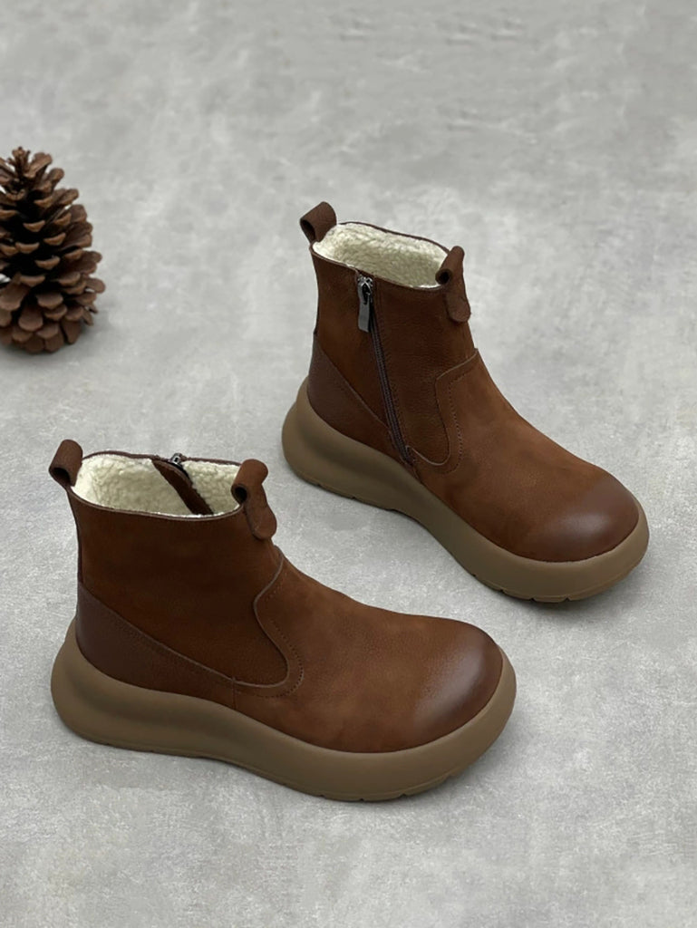 レディース ヴィンテージ 本革 フリース裏地 プラットフォームブーツ