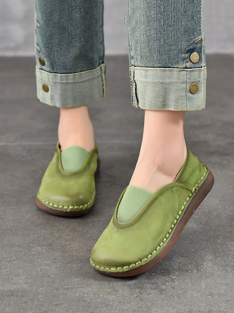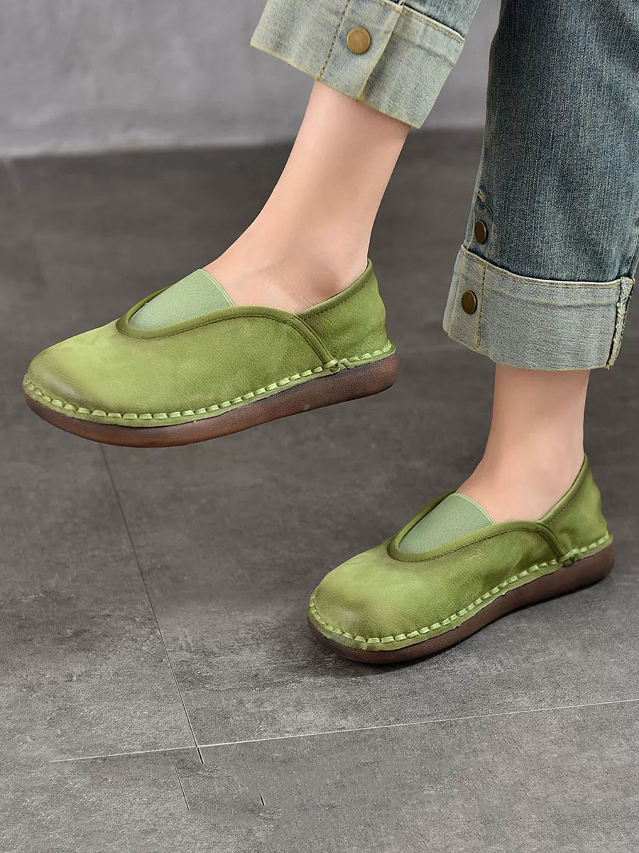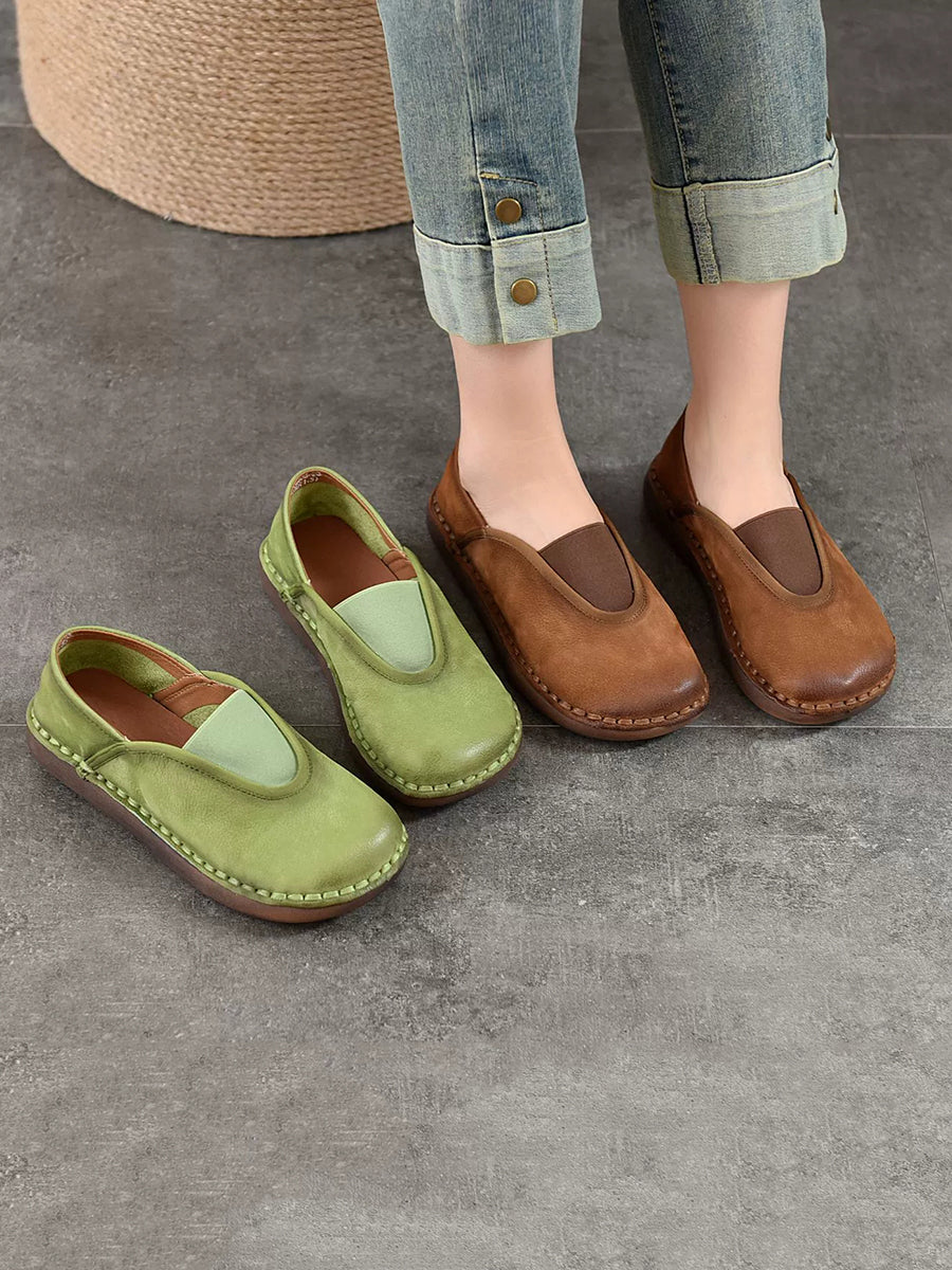 レディース ヴィンテージ 本革 スプライス フラットシューズ