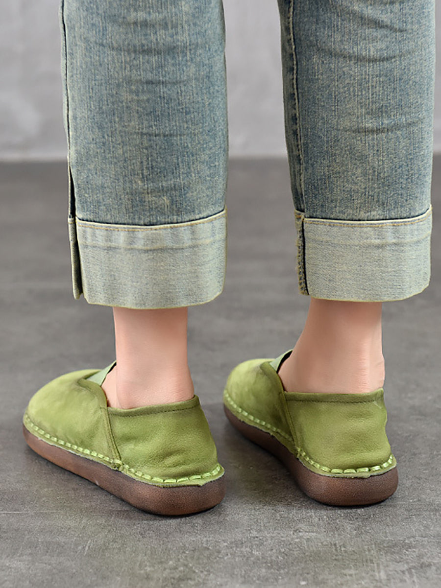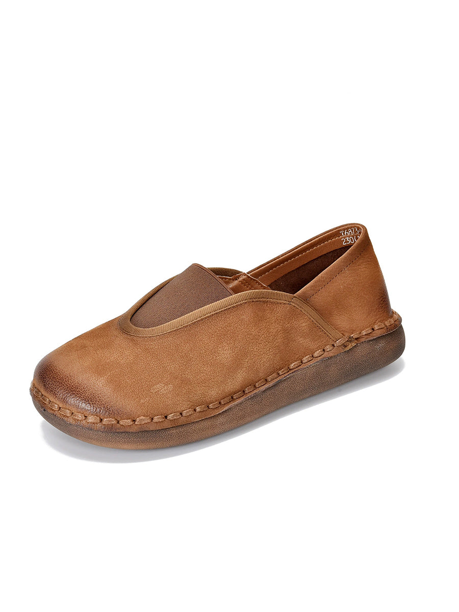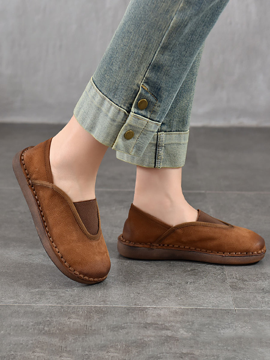 レディース ヴィンテージ 本革 スプライス フラットシューズ