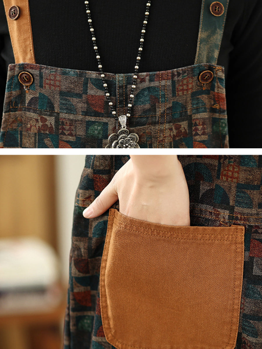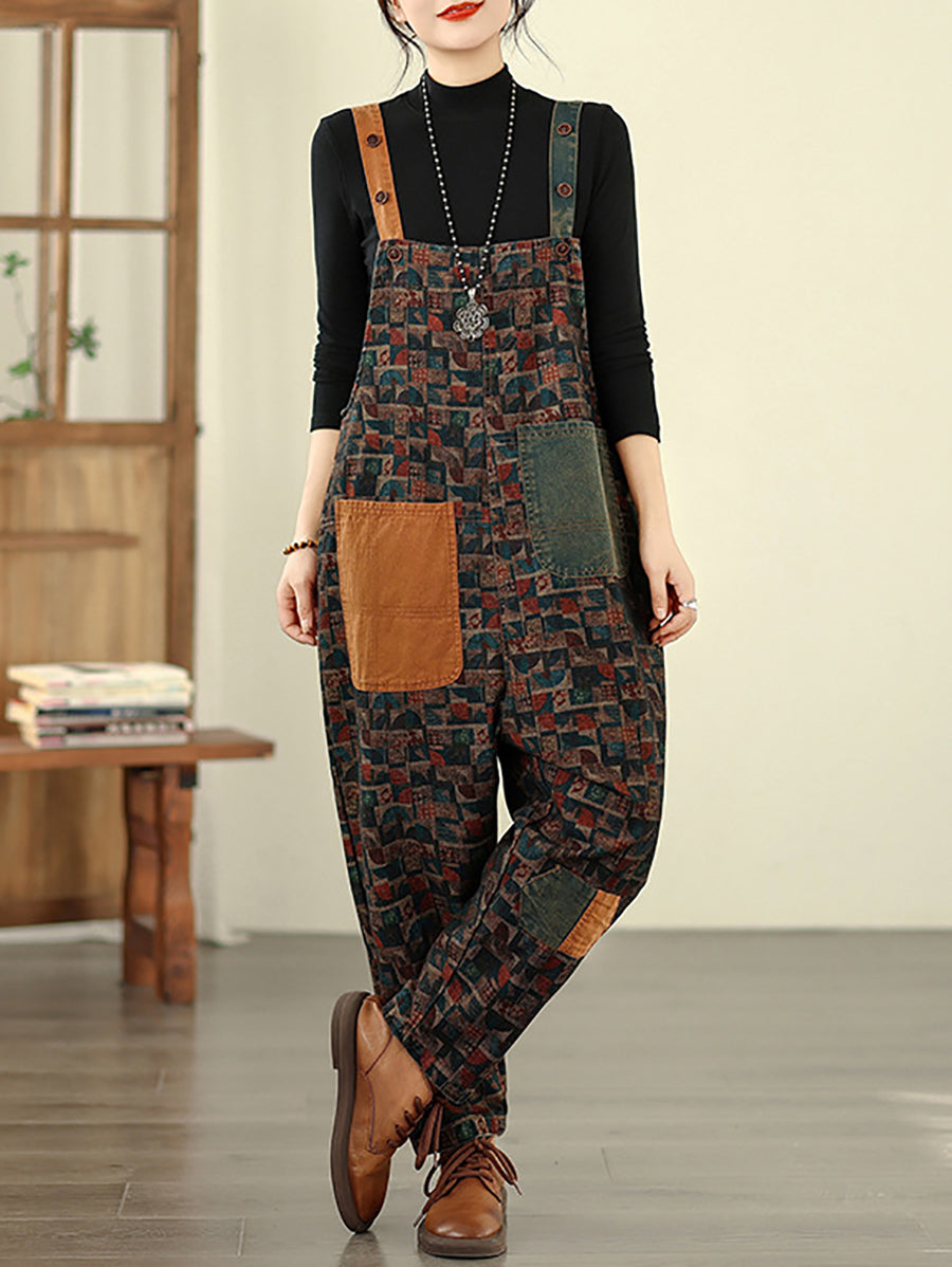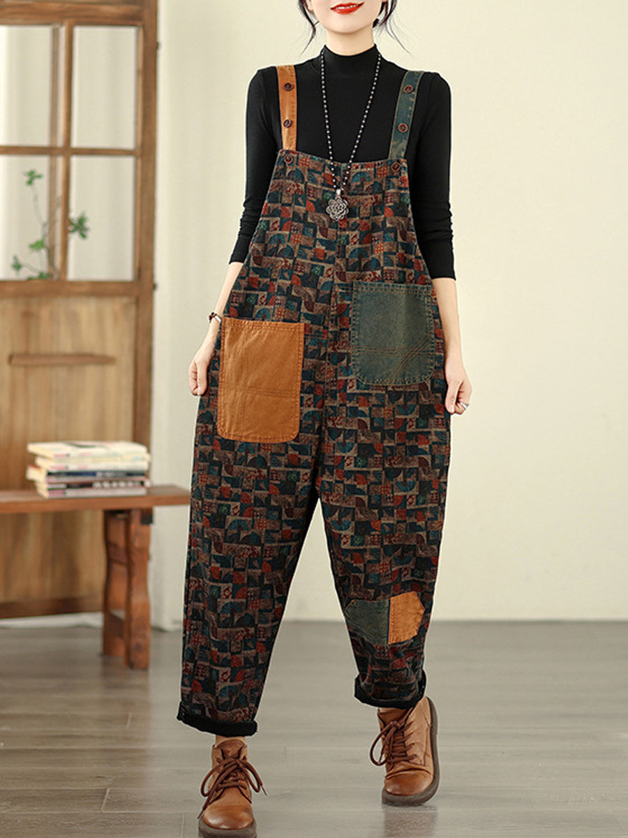レディース ヴィンテージ パッチワーク コットン ルーズデニム ジャンプスーツ