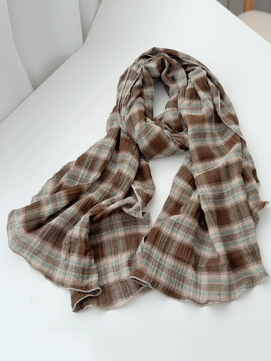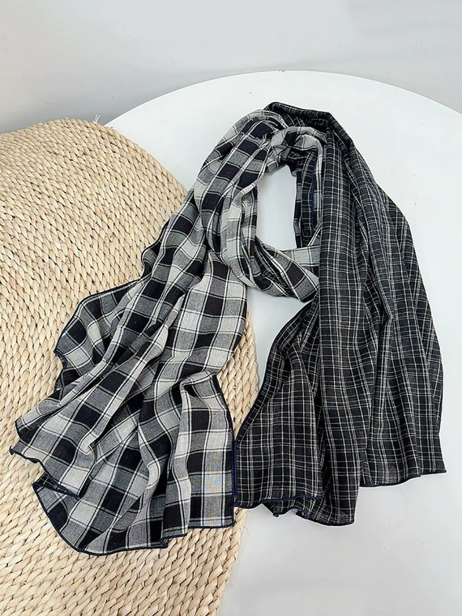 レディース ヴィンテージ チェック柄 スプライス ショール スカーフ
