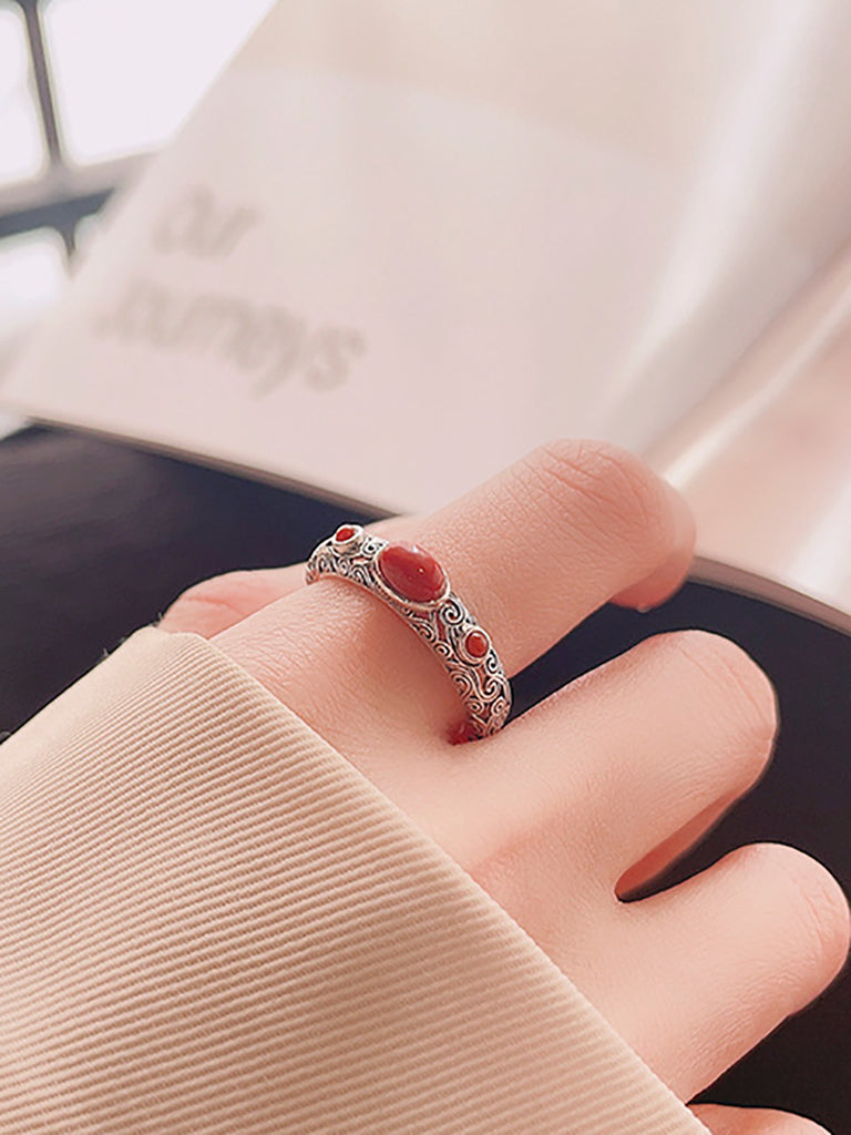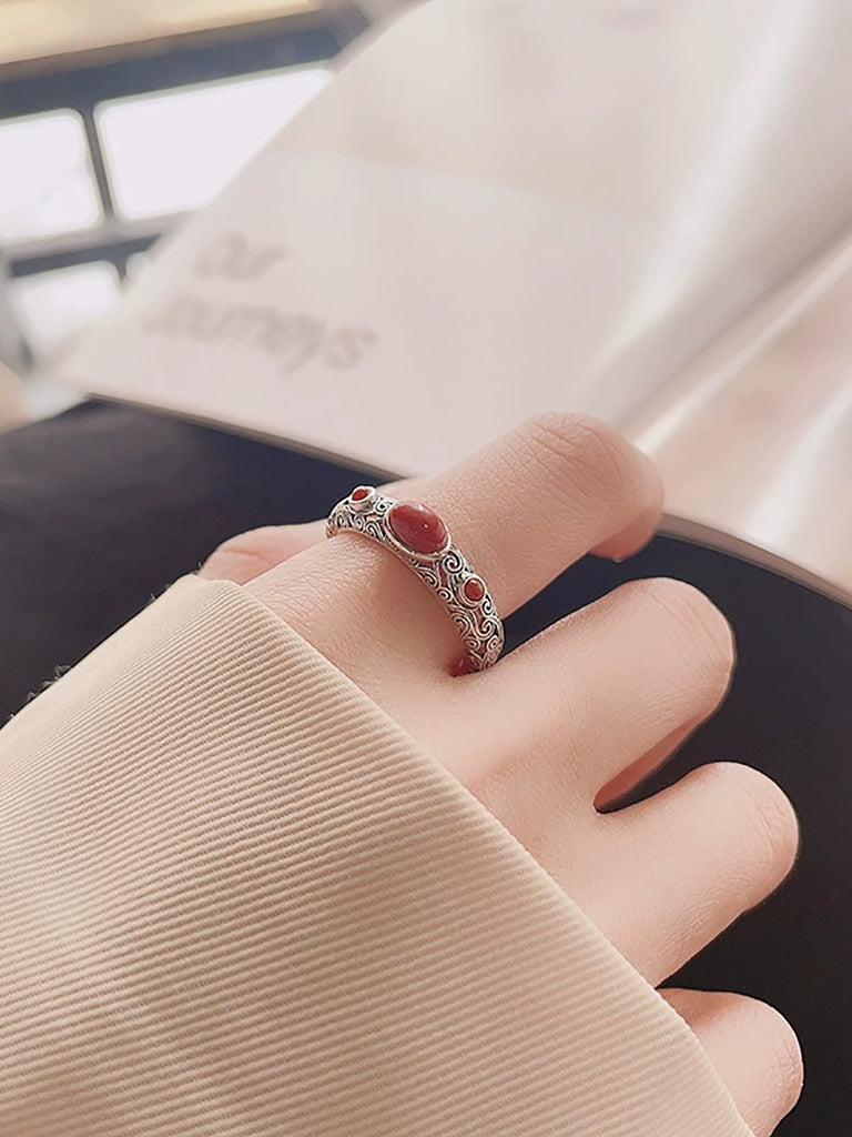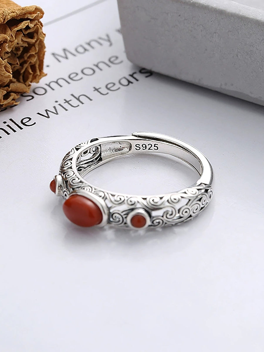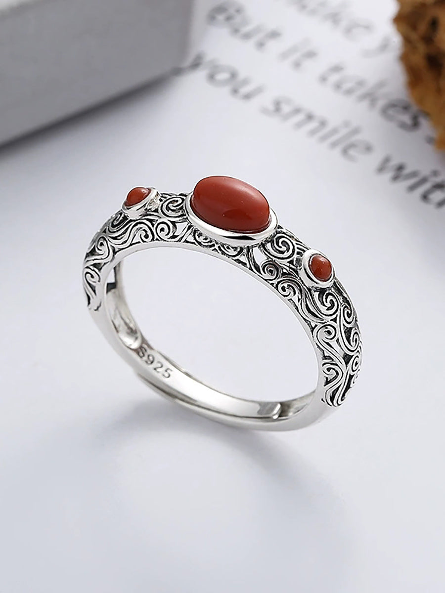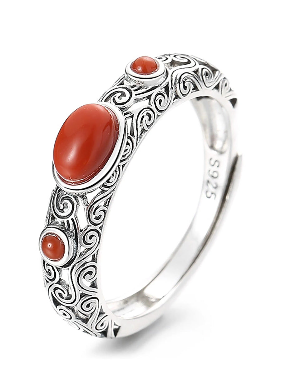 レディース ヴィンテージ S925シルバー レッドアゲート 調節可能リング